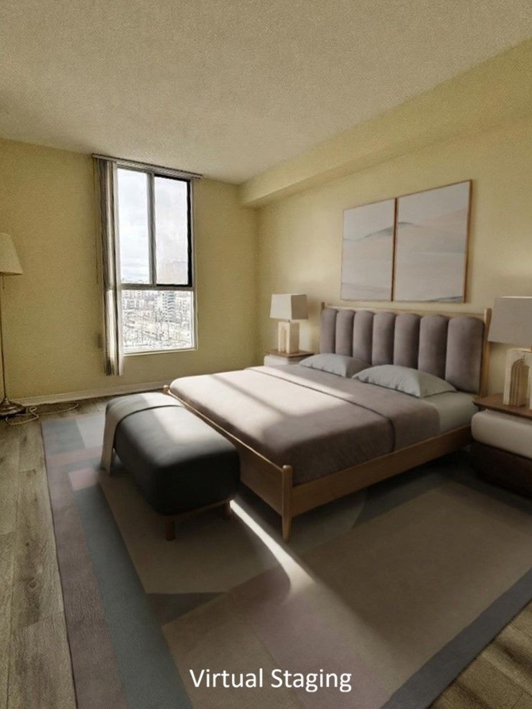 Newly renovated condo featuring unobstructed, breathtaking easterly views of the toronto skyline and lake ontario. The entire home is freshly painted and upgraded with premium vinyl flooring throughout. Enjoy a modern kitchen with new lower cabinets and counters, complemented by updated appliances. The bathroom has been fully refreshed with a new vanity, new toilet, and new tub & enclosure. Convenient ensuite of high-end washer and dryer (3 year new). Offering approximately 900 sq. Ft. Of living space, this home includes 2 bedrooms plus a versatile sunroom/den. Steps to cooksville go station and the upcoming hazel mccallion lrt. Close to major highway 403 & qew. Situated in a well-maintained building with a safe & friendly community of young families and professionals. This property delivers exceptional value for size and lifestyle near square one shopping centre and other city centre amenities and attractions.