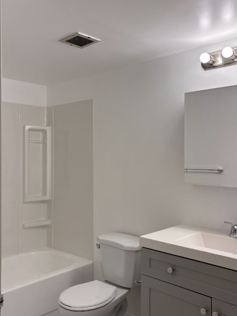 • Spacious bathroom with new fixtures, tub, and enclosure.