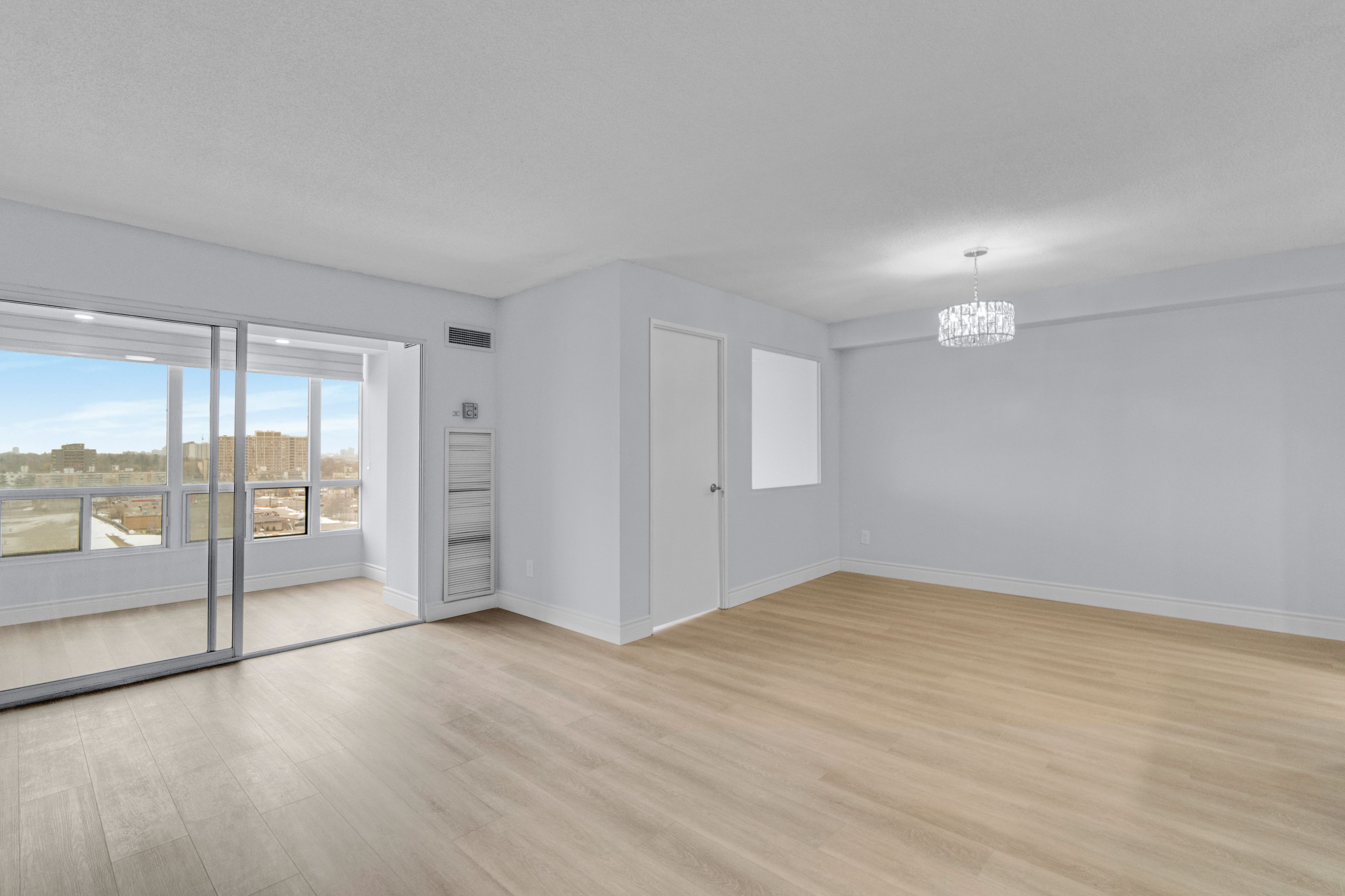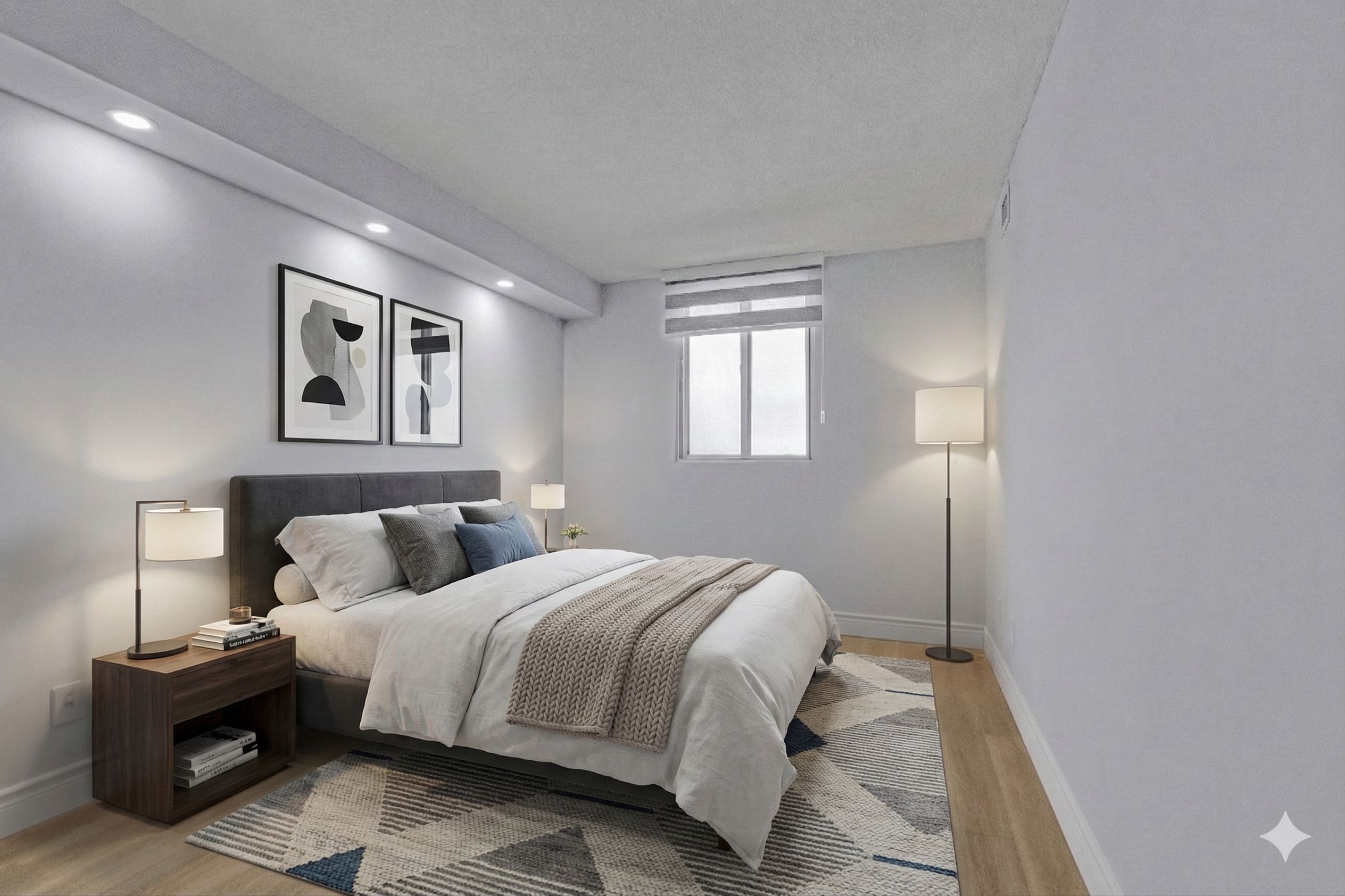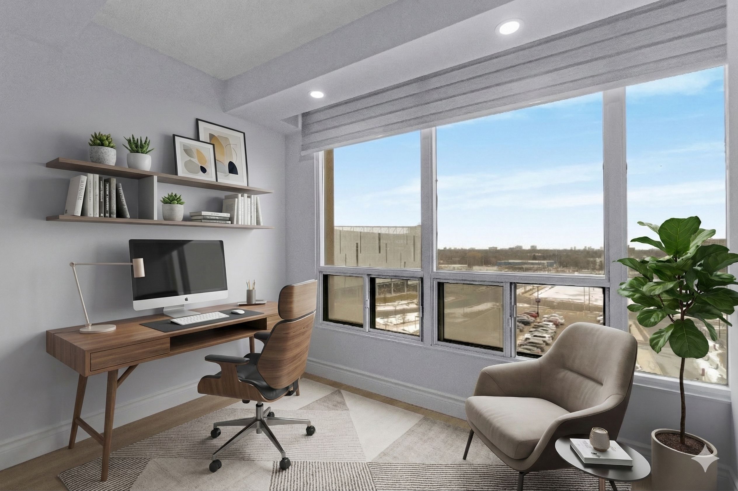 • Bright open-concept living area with large windows for natural light.
