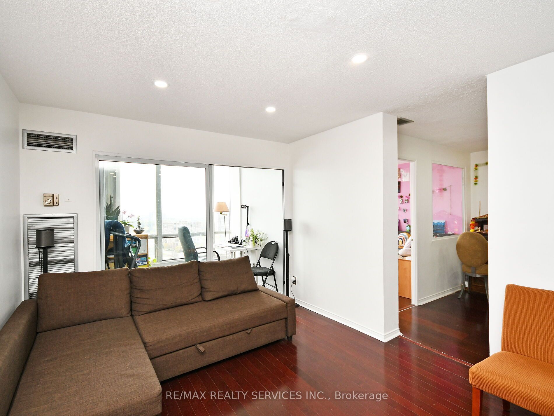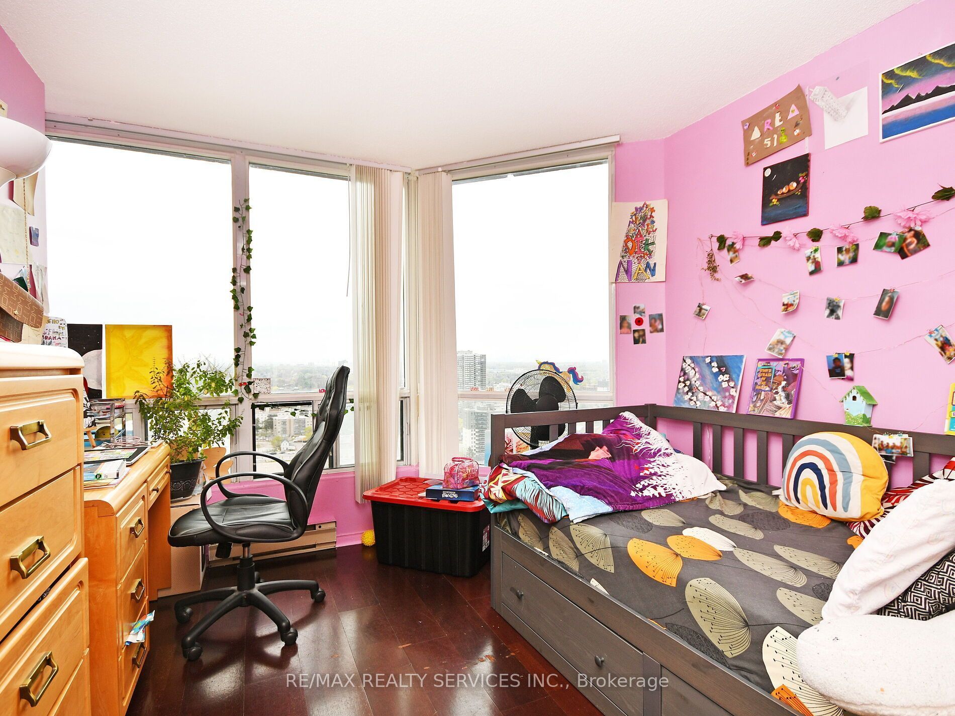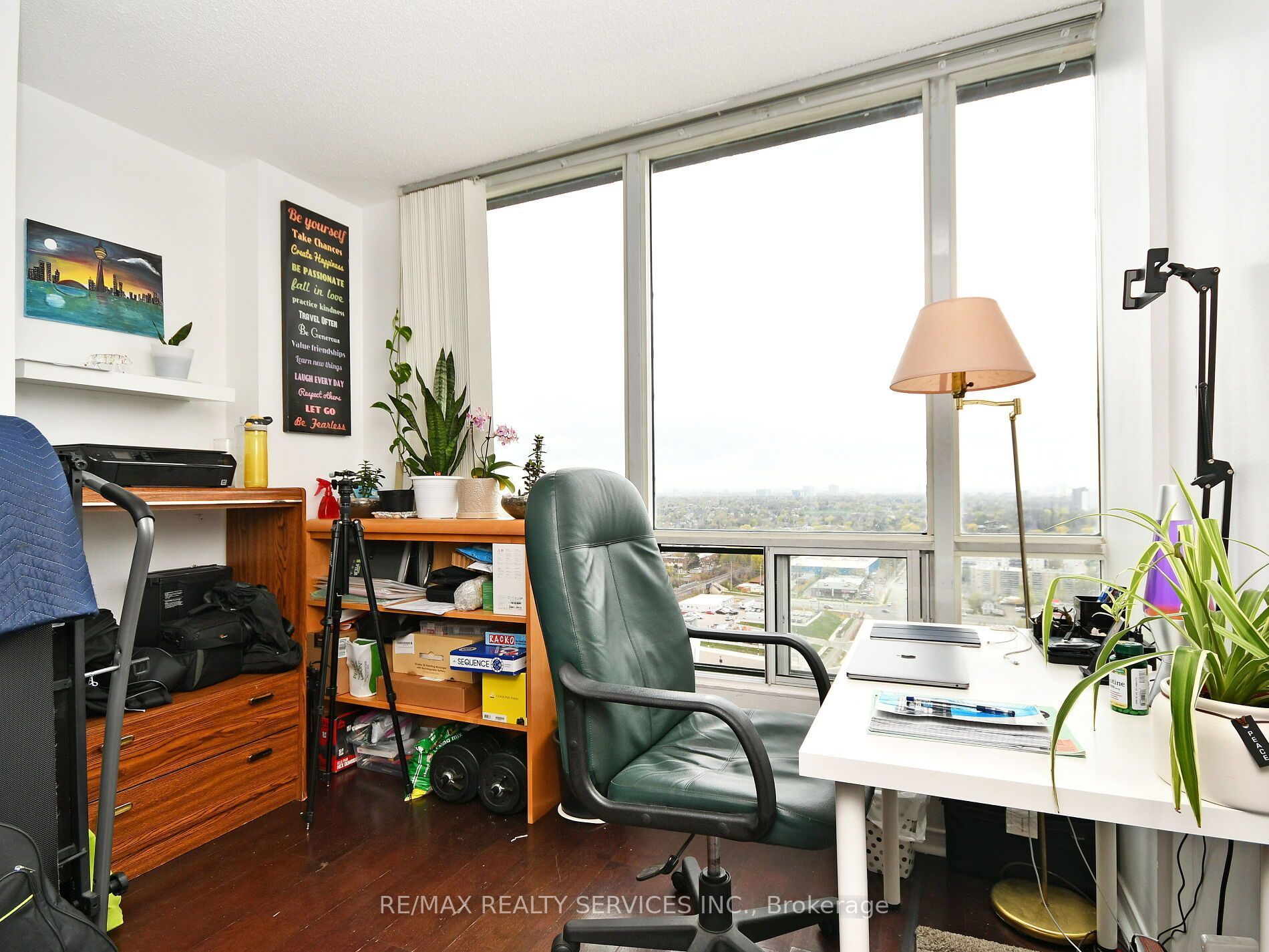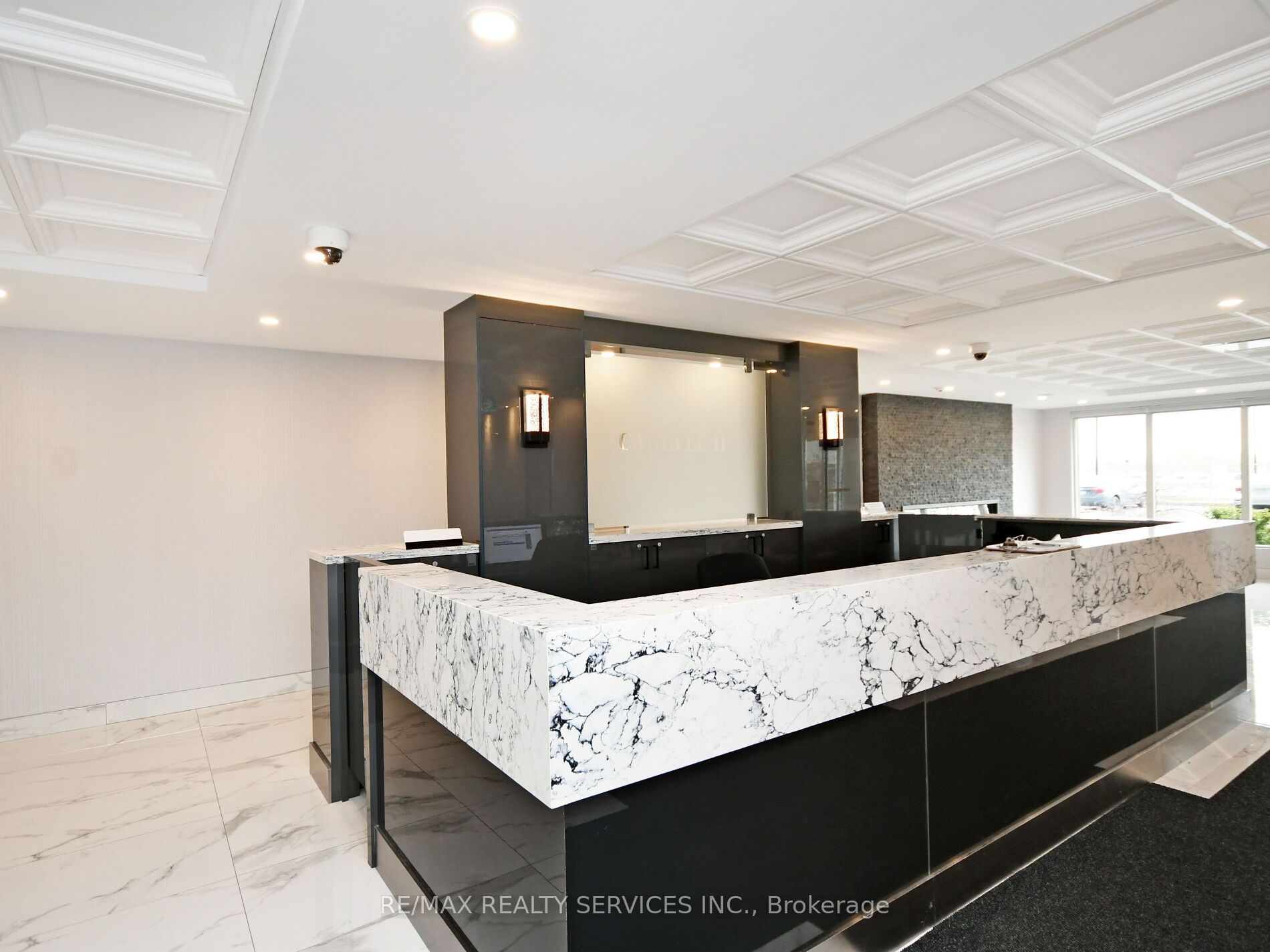 Pride of ownership, a stunning view of toronto skyline, cn tower & lake ontario from your penthouse. Located steps away from cooksville go station. This unit is fully renovated, huge living area w/ pot lights & stunning kitchen w/ quartz countertops & ss appliances and separate dining area . Primary bedroom leads with huge size walk-in closet and laminate flooring. Huge size den used as second bedroom. Laundry room has huge storage. 1 parking spot owned