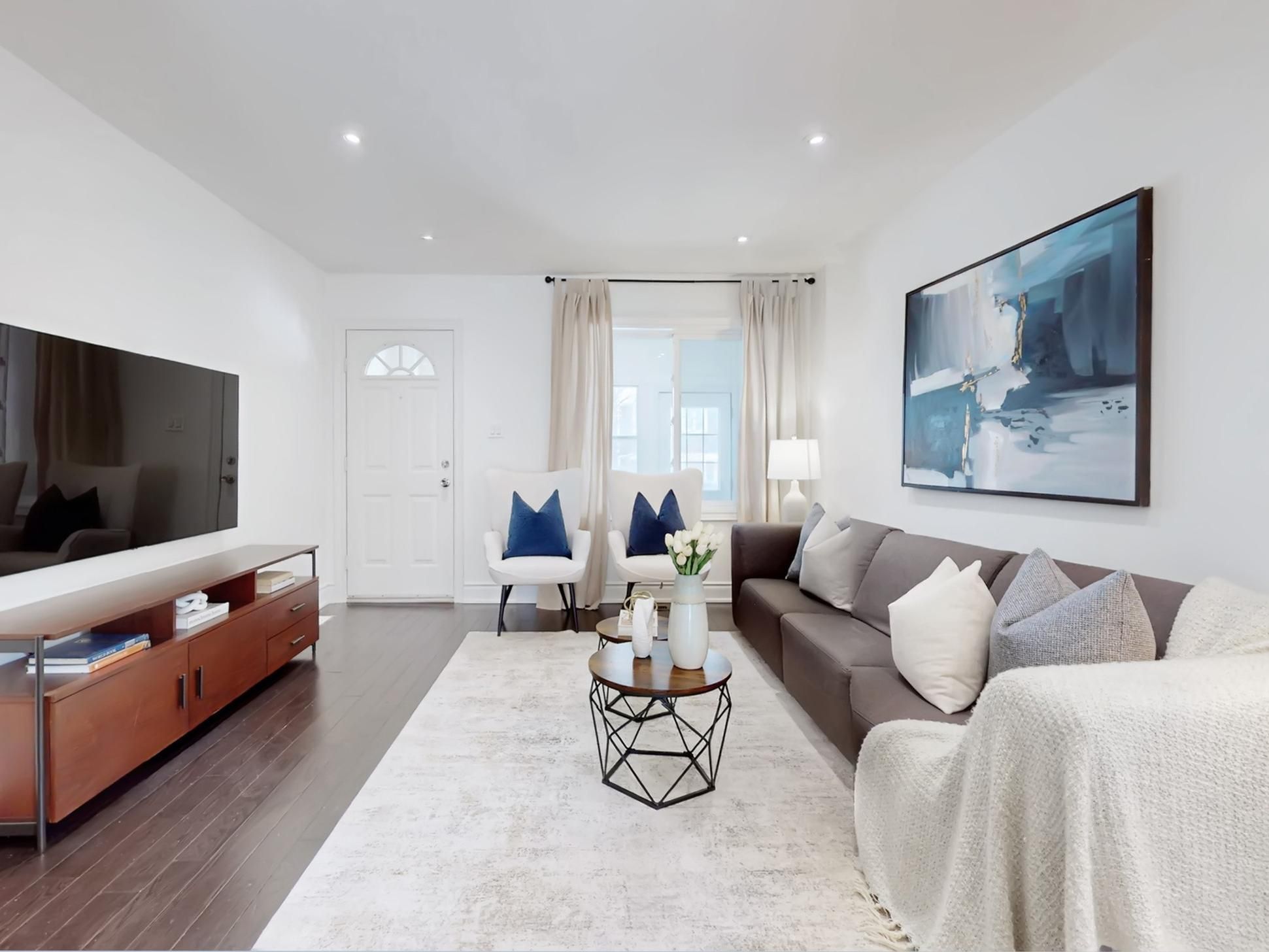 An exceptional, fully renovated leslieville residence offering a rare blend of space, style, and functionality. Located in one of toronto's most coveted neighbourhoods, this home stands out with 3 full bathrooms, private parking, and a thoughtfully designed layout ideal for modern living. The main floor is expansive, airy, and beautifully connected, featuring a generous living and dining area enhanced by pot lights and seamless flow-perfect for entertaining and everyday life. The sleek, modern kitchen anchors the space with quality finishes, ample counter space for the chef in you! A walkout leads to a private back deck, while a main floor powder room and oversized foyer add convenience and valuable extra space rarely found. Upstairs, 3 well-appointed bedrooms each offer closet space, including a warm and inviting primary retreat with custom built-in storage. Rarely offered 3 renovated bathrooms throughout the home elevate both comfort and design. The fully finished basement with high ceilings delivers an impressive recreation room and a 3-piece bathroom-ideal for hosting, relaxing, or flexible living options. Steps to parks, trails, acclaimed restaurants, cafés, and local shops, with effortless access to transit and major routes, this home delivers refined leslieville living with nothing left to do but move in.