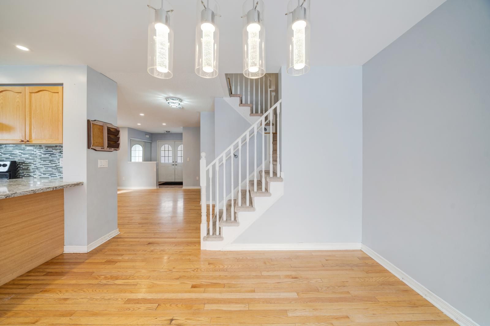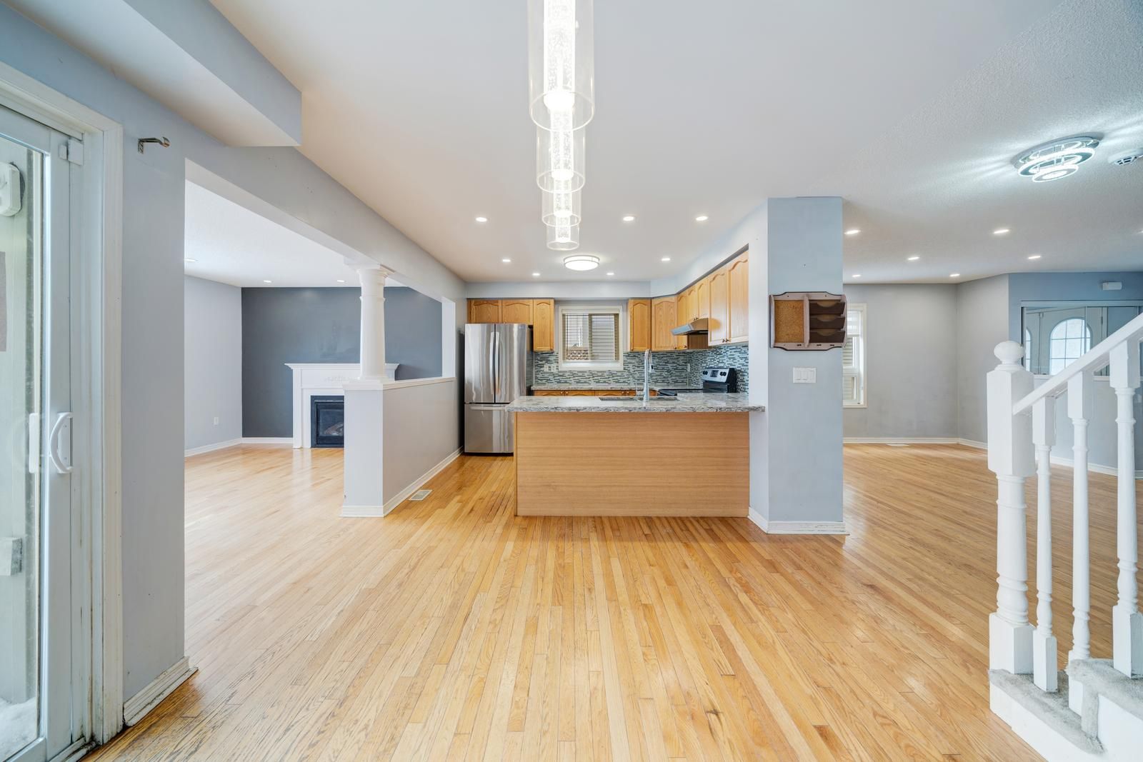 • Open-concept main level with hardwood floors and spacious kitchen.