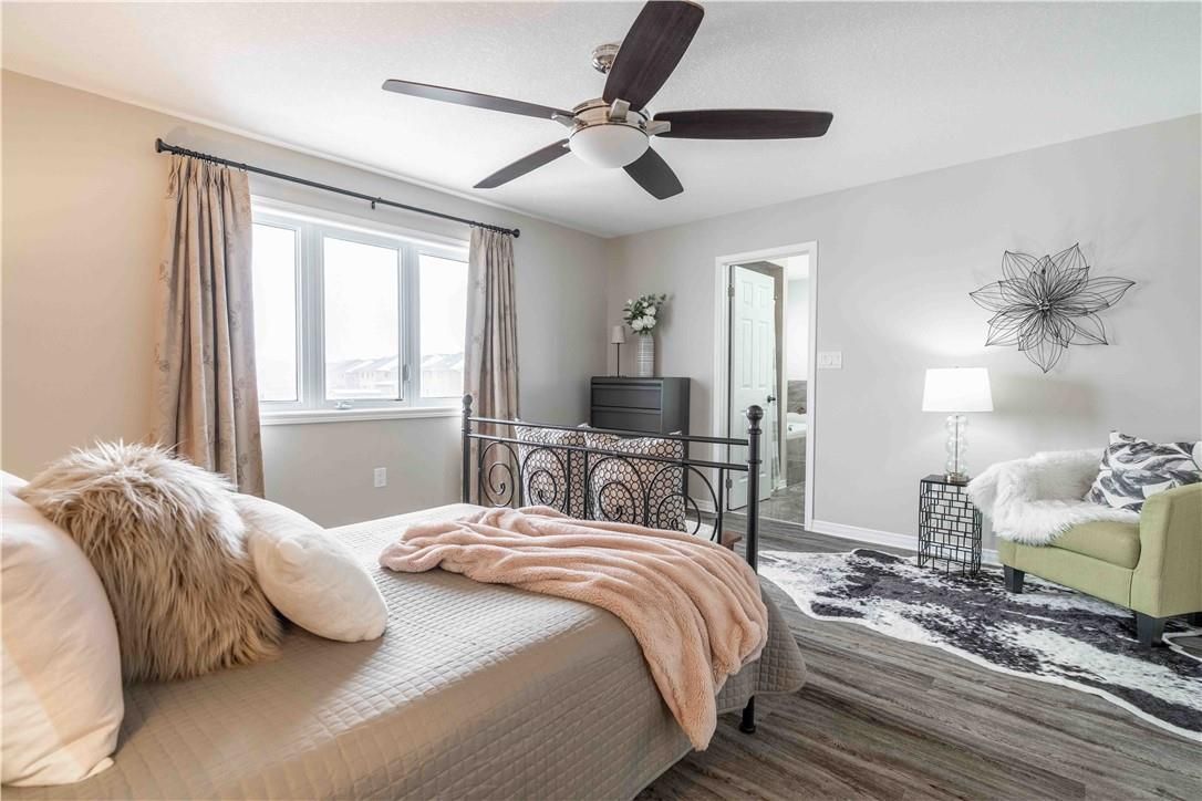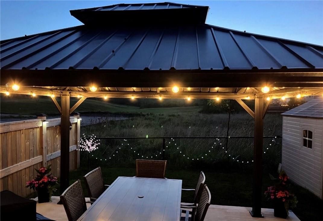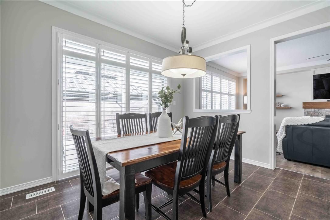 Welcome to 115 larry crescent, beautifully located just steps from the lovely grand river and seneca park. The newer community of "avalon" provides conveniences and service for families in a sought-after rural setting. This impressive all-brick home is situated on a generous 37 ft lot, with excellent curb appeal, fully fenced back yard, double drive and double garage. You are invited to enjoy the well-maintained home at the covered front porch- a great place to enjoy a peaceful morning coffee or a sip at end of day! The spacious entrance of this 4 bedroom, 3 bath home escorts you into the foyer and then the open concept main level. Note the gas fireplace, the extensive use of crown moulding, the large windows and oversized patio doors to let the sunshine stream in. Features include: central peninsula, oversized pantry, stainless appliances, quartz countertops, built-in otr micro-oven, ample cabinetry all in eat-in-kitchen, special central planning centre which could easily be home office or home-work centre, custom wooden california shutters throughout main level, inside access to garage. Upper level boasts brand new carpet on staircase and in 3 of 4 bedrooms; ideally located laundry and 2 full baths. Primary bedroom is oversized with 4 piece ensuite bath featuring soothing spa tub with separate shower. 3 other bedrooms share the primary 4-pc bath. Basement is partially finished awaiting your designer touches. Fenced private backyard is provides a poured concrete patio complete with gazebo and also a handy garden shed. Back-flow valve, hard-wired co detectors.