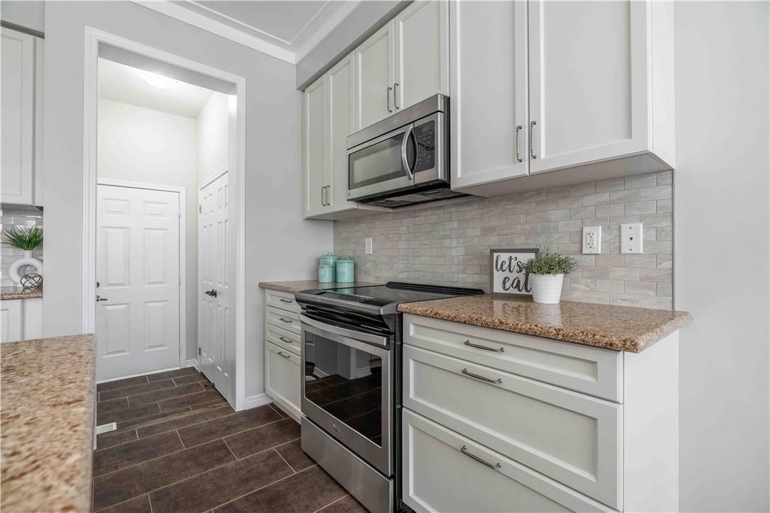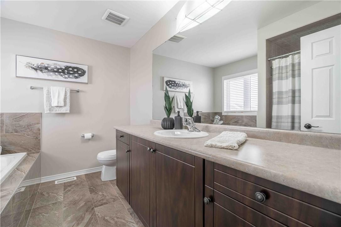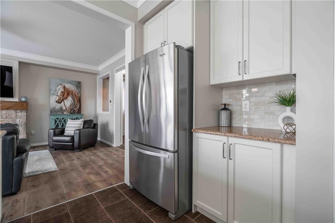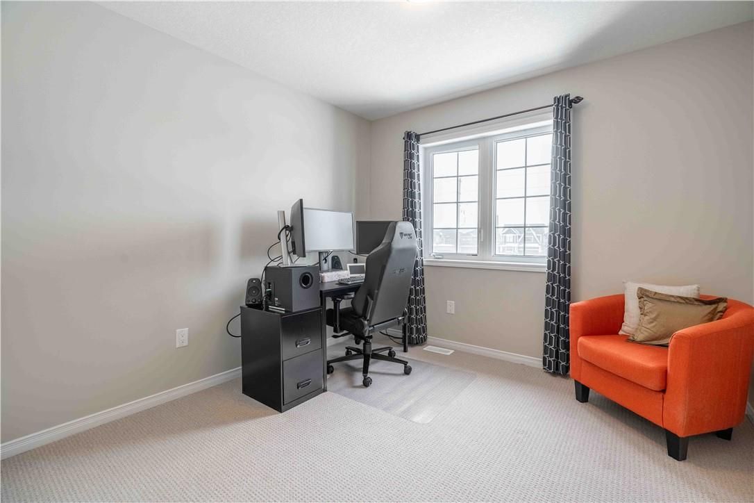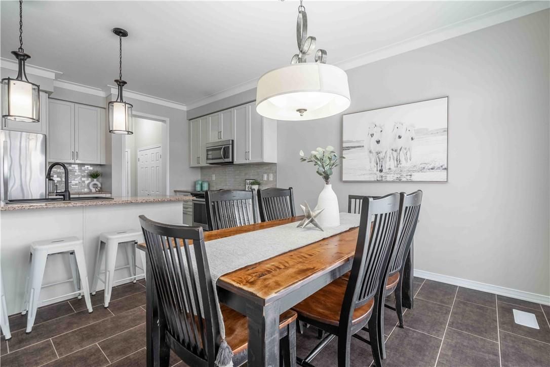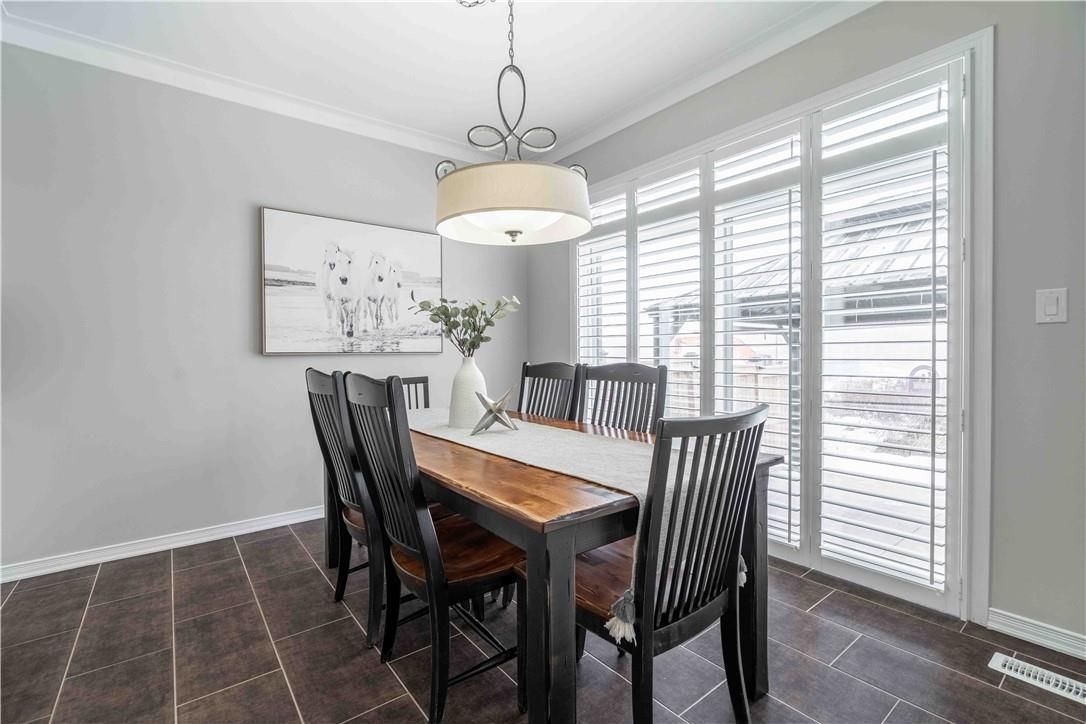 Welcome to 115 larry crescent, beautifully located just steps from the lovely grand river and seneca park. The newer community of "avalon" provides conveniences and service for families in a sought-after rural setting. This impressive all-brick home is situated on a generous 37 ft lot, with excellent curb appeal, fully fenced back yard, double drive and double garage. You are invited to enjoy the well-maintained home at the covered front porch- a great place to enjoy a peaceful morning coffee or a sip at end of day! The spacious entrance of this 4 bedroom, 3 bath home escorts you into the foyer and then the open concept main level. Note the gas fireplace, the extensive use of crown moulding, the large windows and oversized patio doors to let the sunshine stream in. Features include: central peninsula in kitchen, stainless appliances, quartz countertops, built-in otr micro-oven, ample cabinetry, special central planning center which could easily be home office or home-work center, inside access to garage. Newly carpeted staircase to upper level with 4 spacious bedrooms, ideally located laundry (with brand new dryer installed feb 2026) and 2 full baths. Primary bedroom is oversized with 4 piece ensuite bath featuring spa tub/separate shower. 3 other bedrooms share the primary 4-pc bath. Basement is partially finished awaiting your designer touches. Fenced private backyard is provides a poured concrete patio complete with gazebo and also a handy garden shed. Make this your next home!