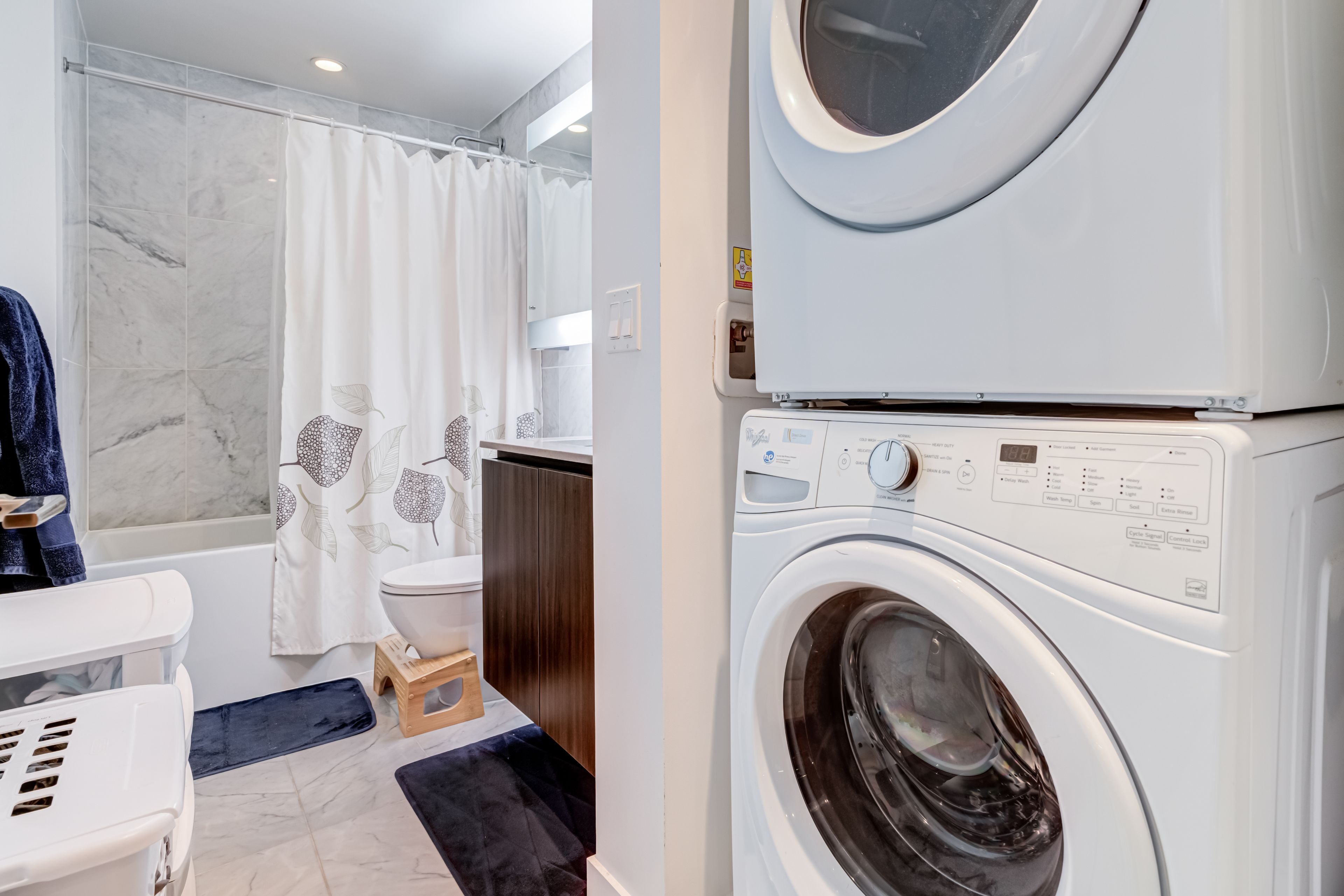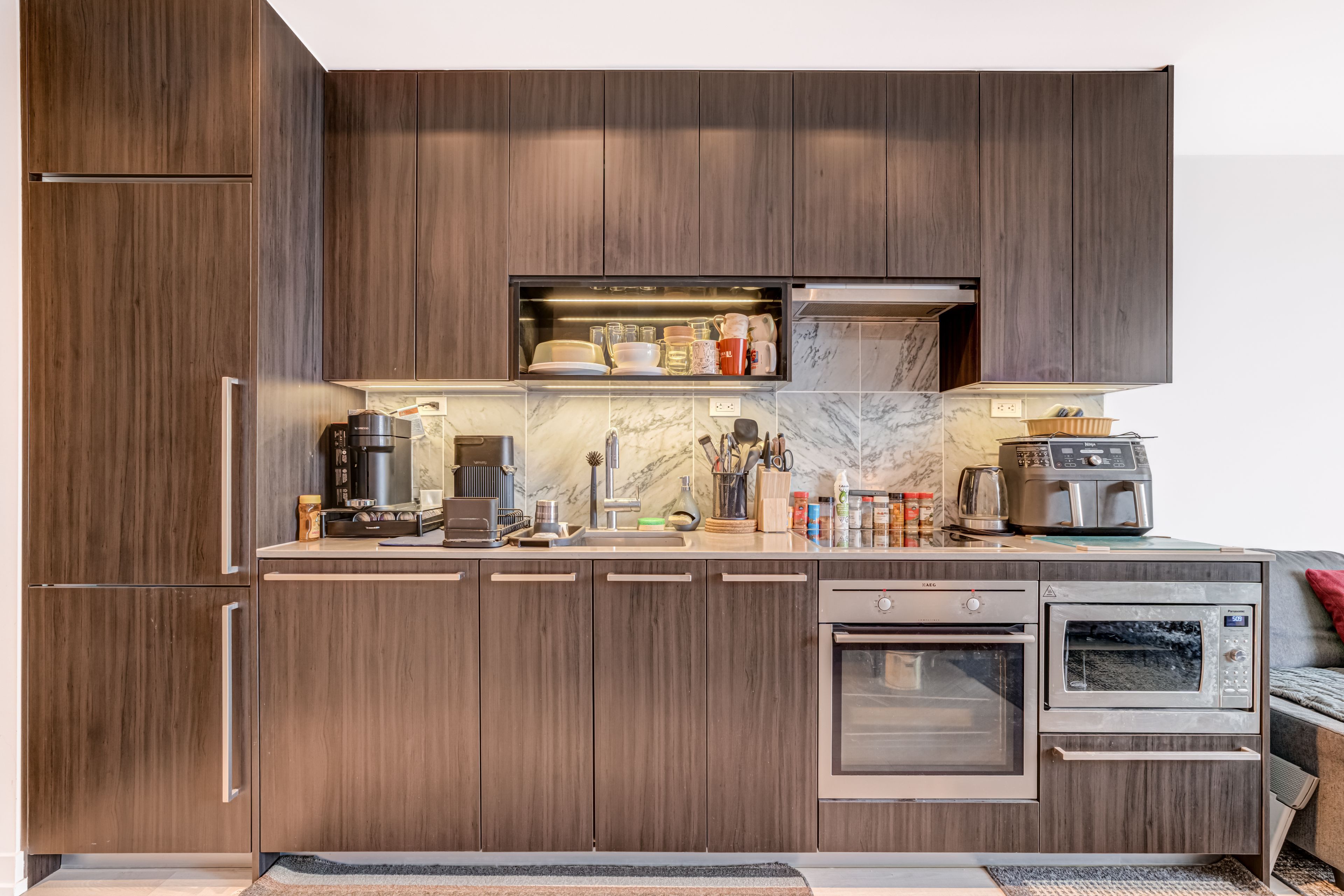 • Sleek kitchen with stainless steel appliances and quartz countertops for easy living.