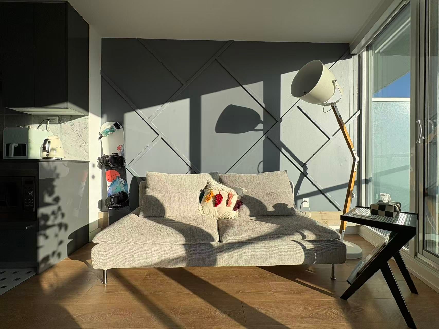 • Open-concept layout with elegant laminate flooring and spacious balcony.