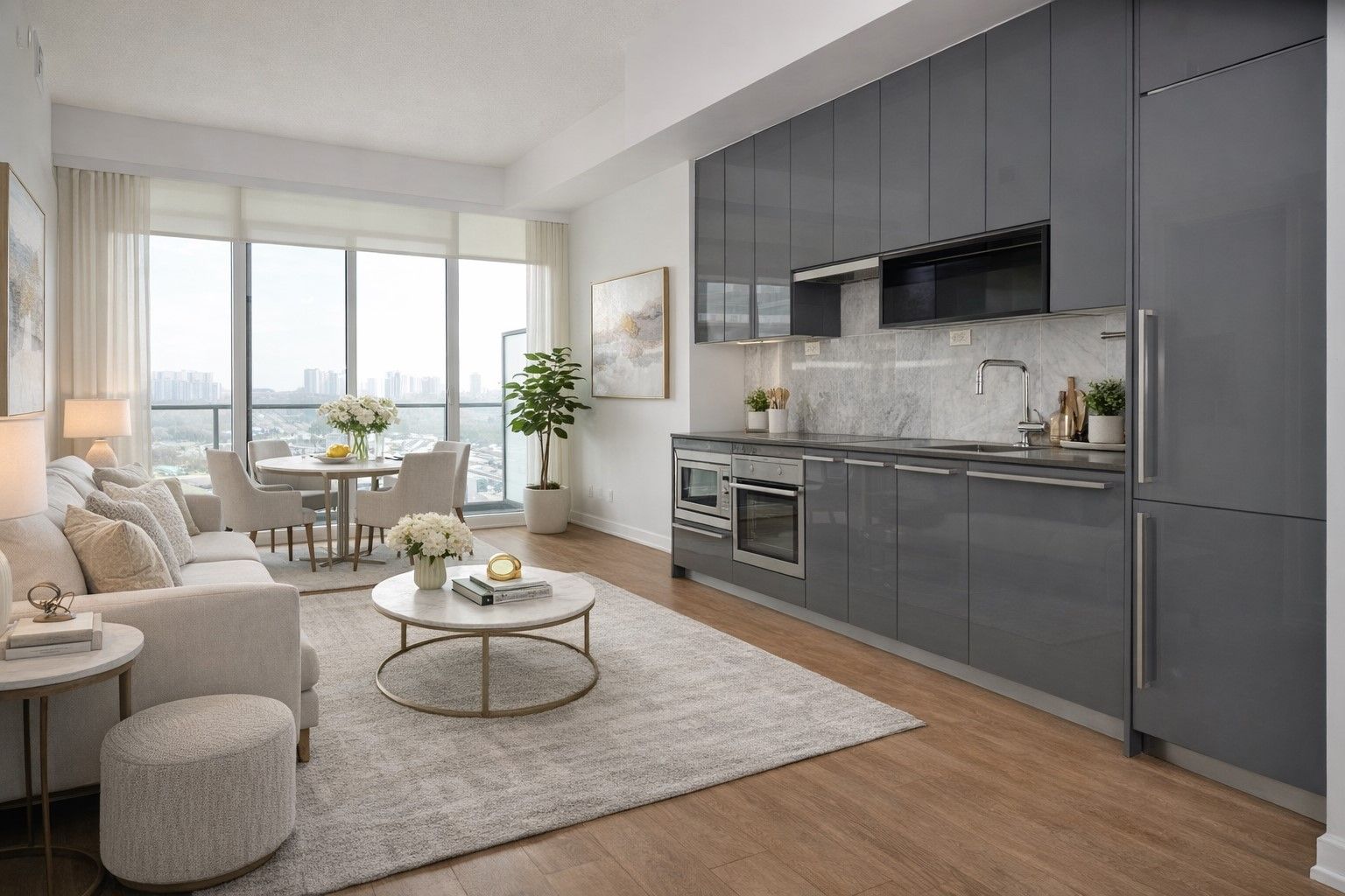 • Open concept layout with 9ft ceilings for a roomy feel.