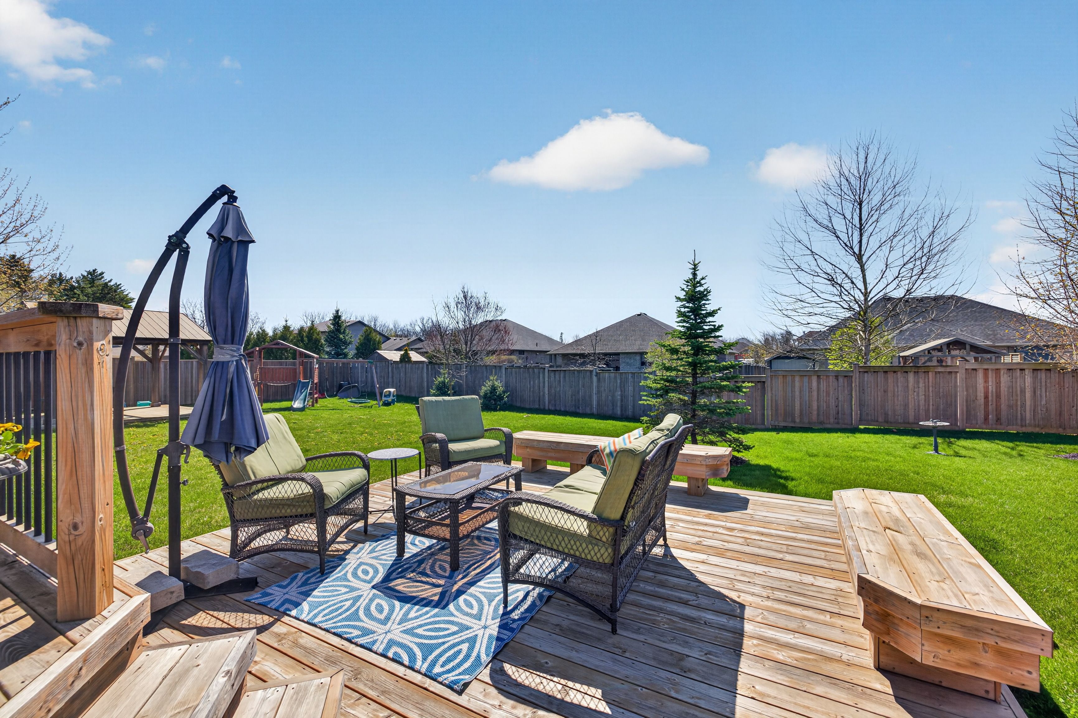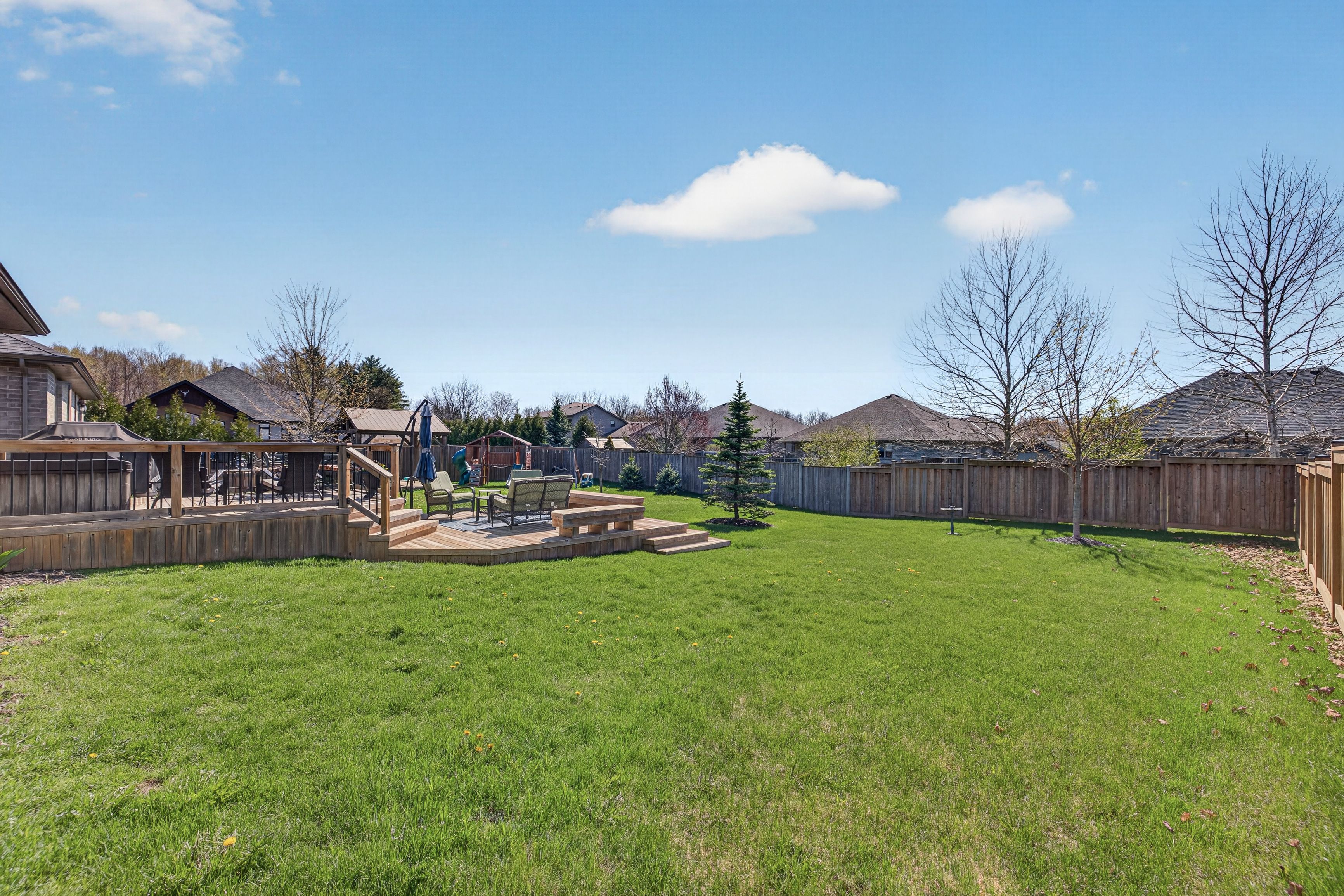 • Generous backyard with a two-tiered deck, perfect for outdoor gatherings.