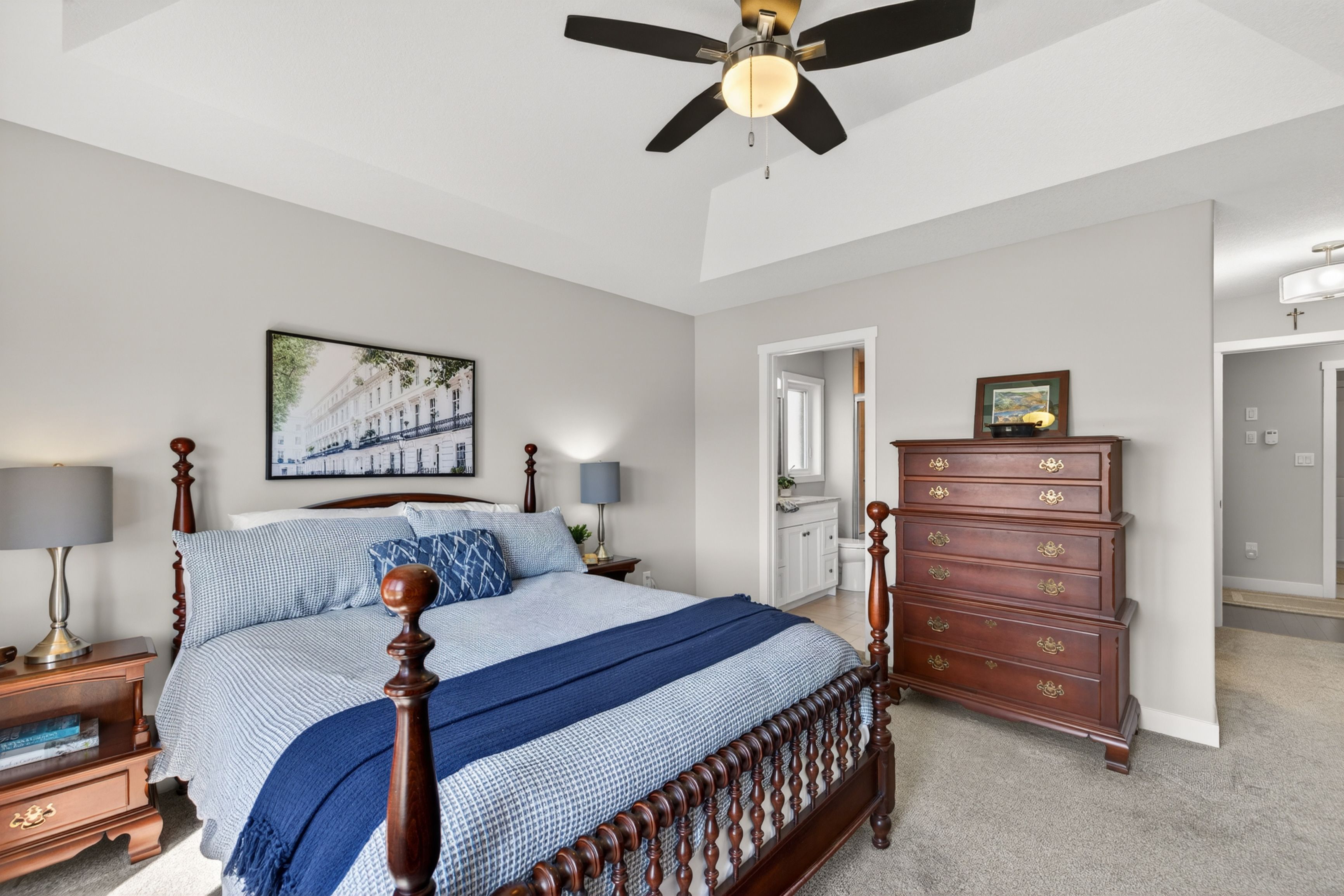 • Spacious primary retreat with walk-in closet and upgraded ensuite.