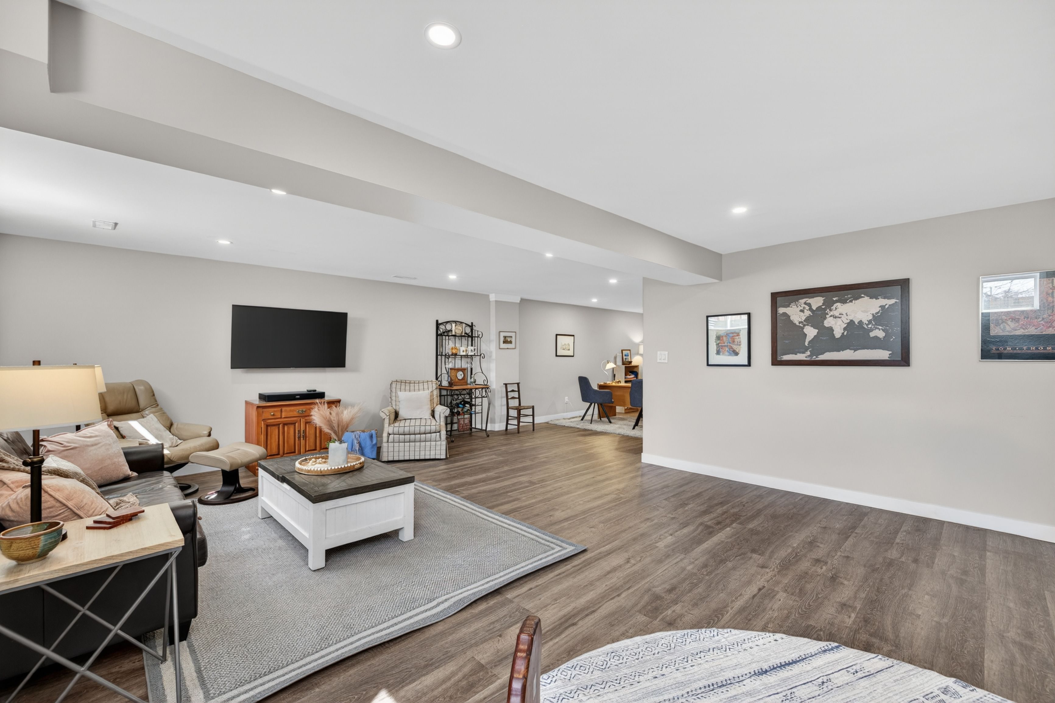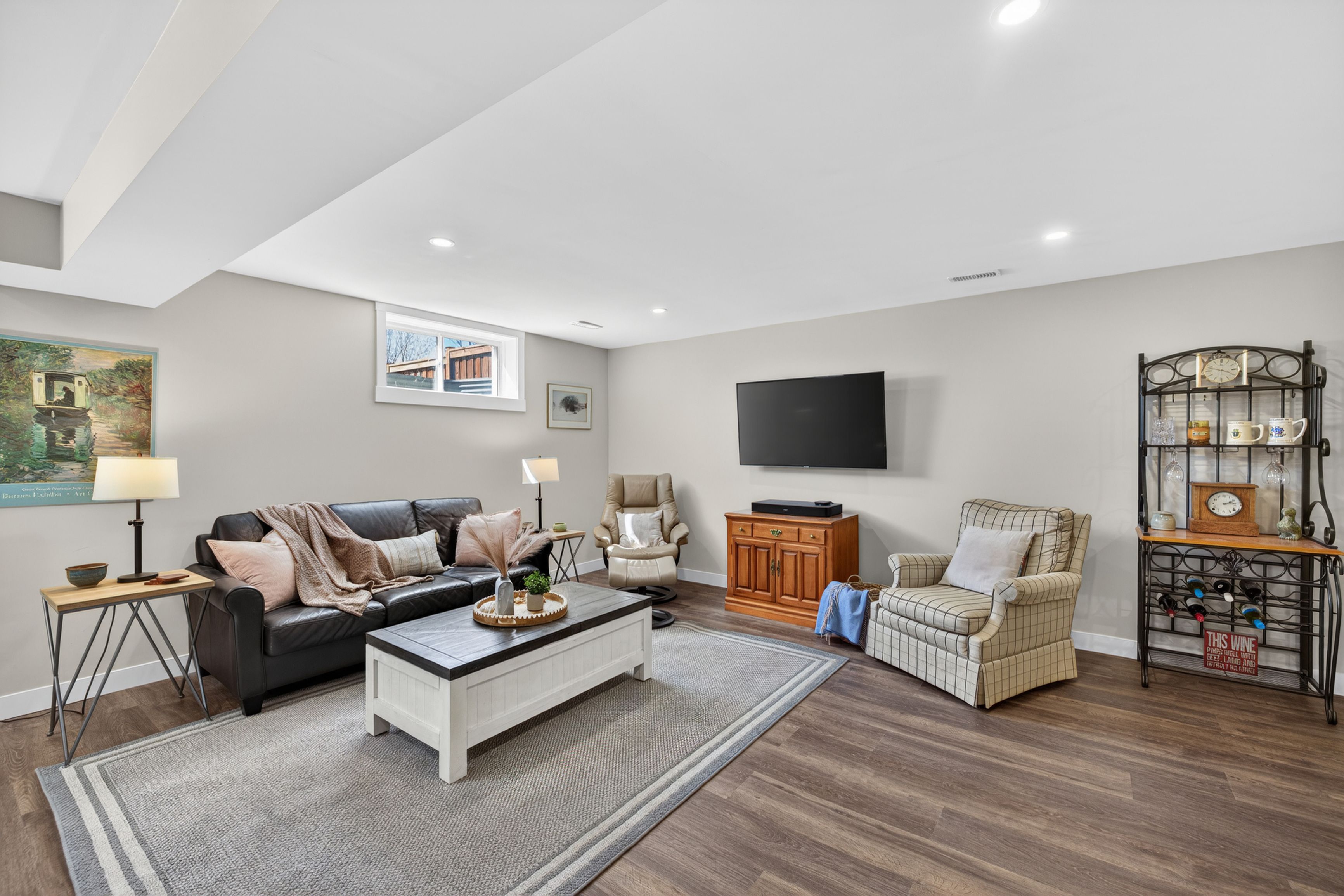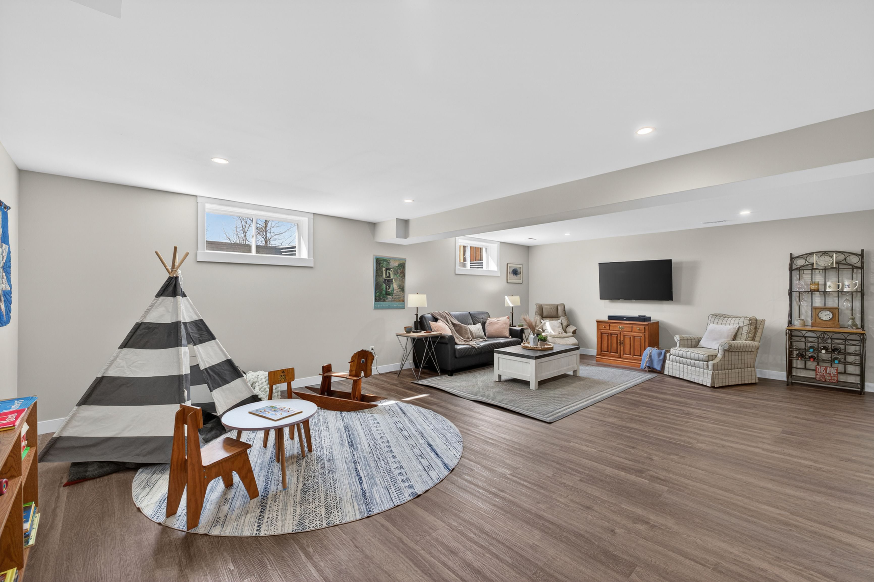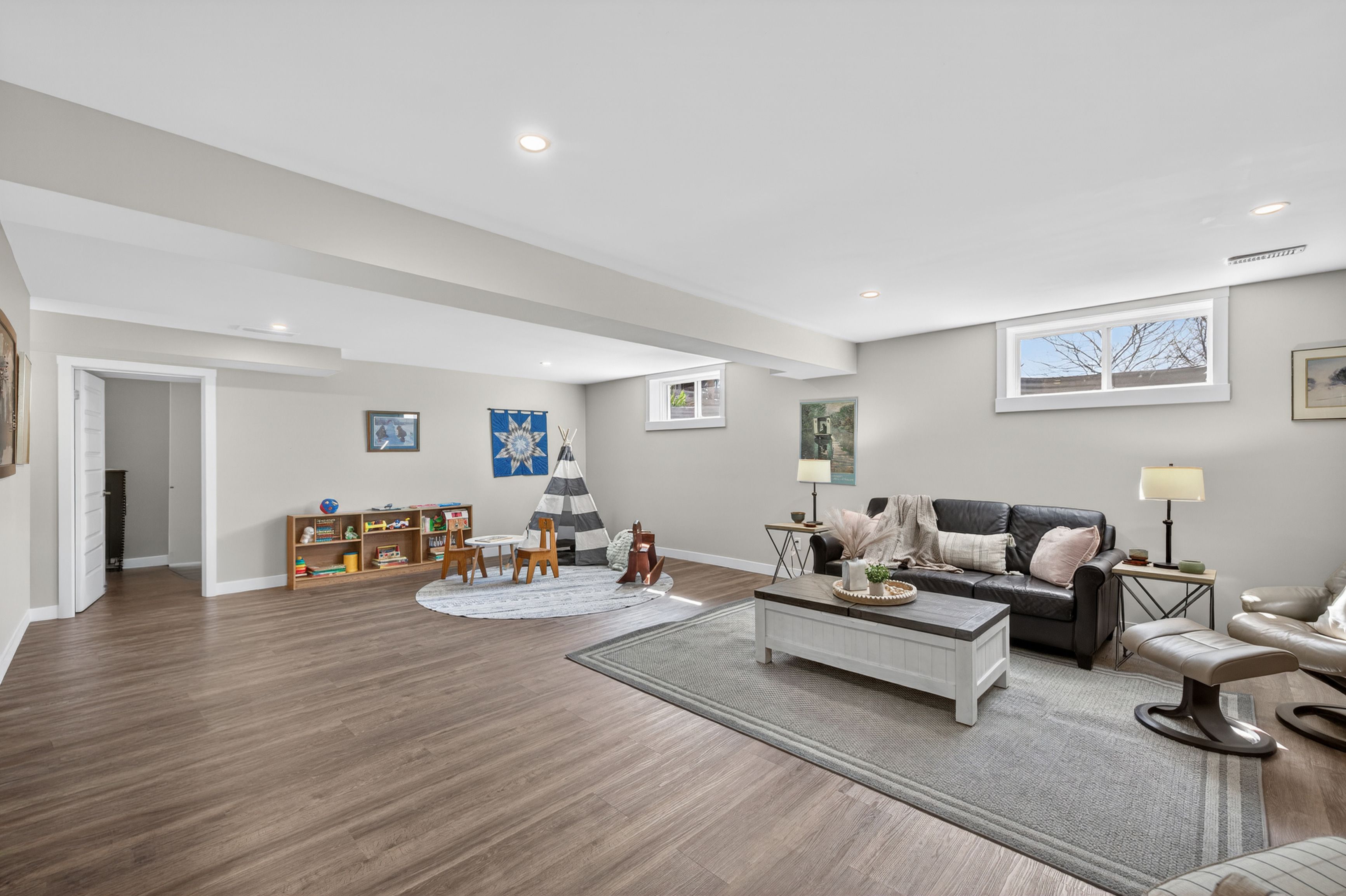• Fully finished lower level with recreation room, fourth bedroom, and office area.