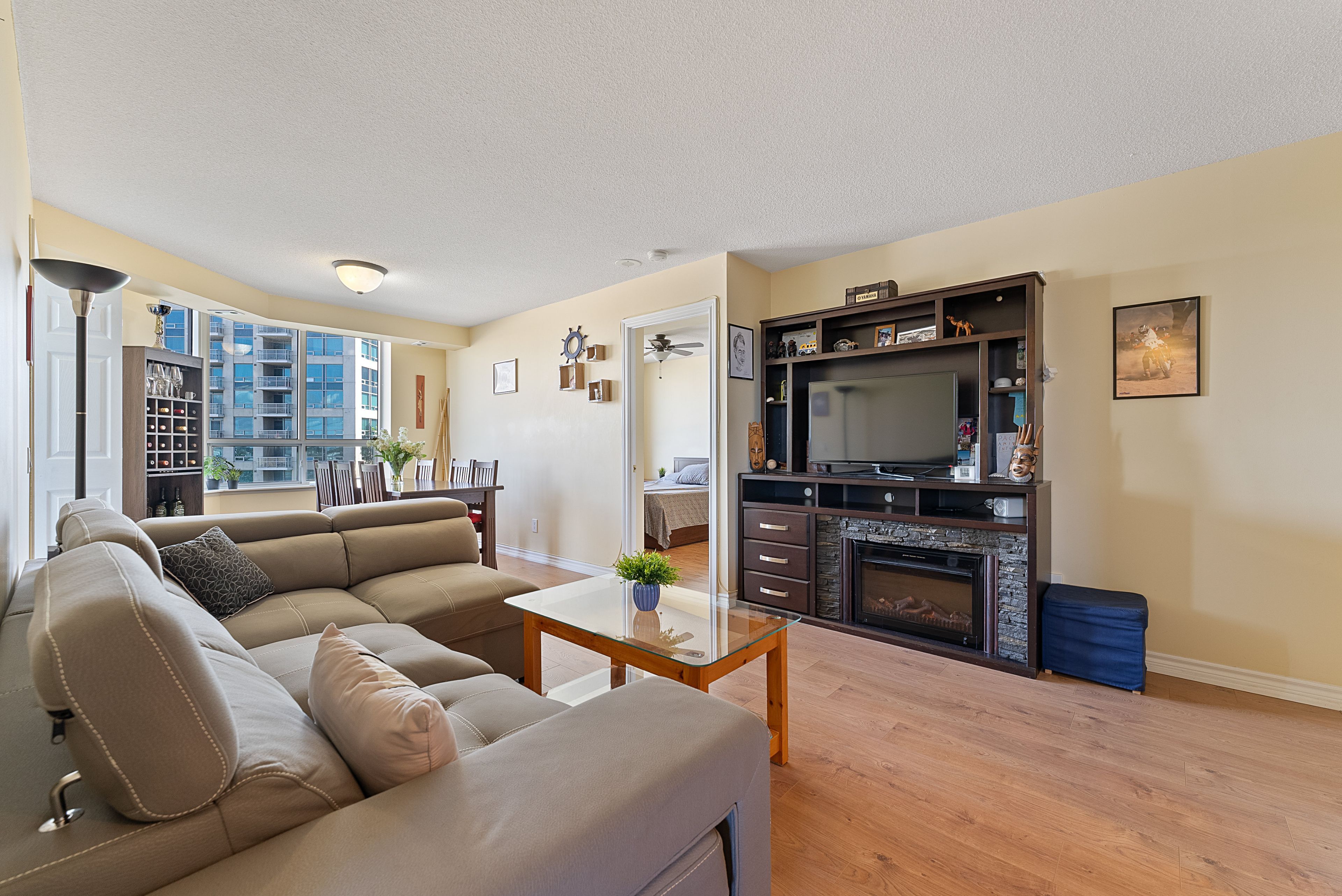 Excellent location with great transit options and a unit built for families! Tridel built large 3 bedroom plus den corner unit. , eat-in kitchen with wonderful view and lots of windows. Newer laminate floors throughout and modern bathrooms. Den is a great work from home space. Move-in ready. Lots of windows and natural light. Walk to scarborough town centre, city hall, ttc, subway, ymca & school and easy access to highway. Excellent property management. 24 hr gate house security, amenities including an indoor pool, hot tub, sauna, gym, party room, outdoor bbq area, and more. Simply for best value in this location.