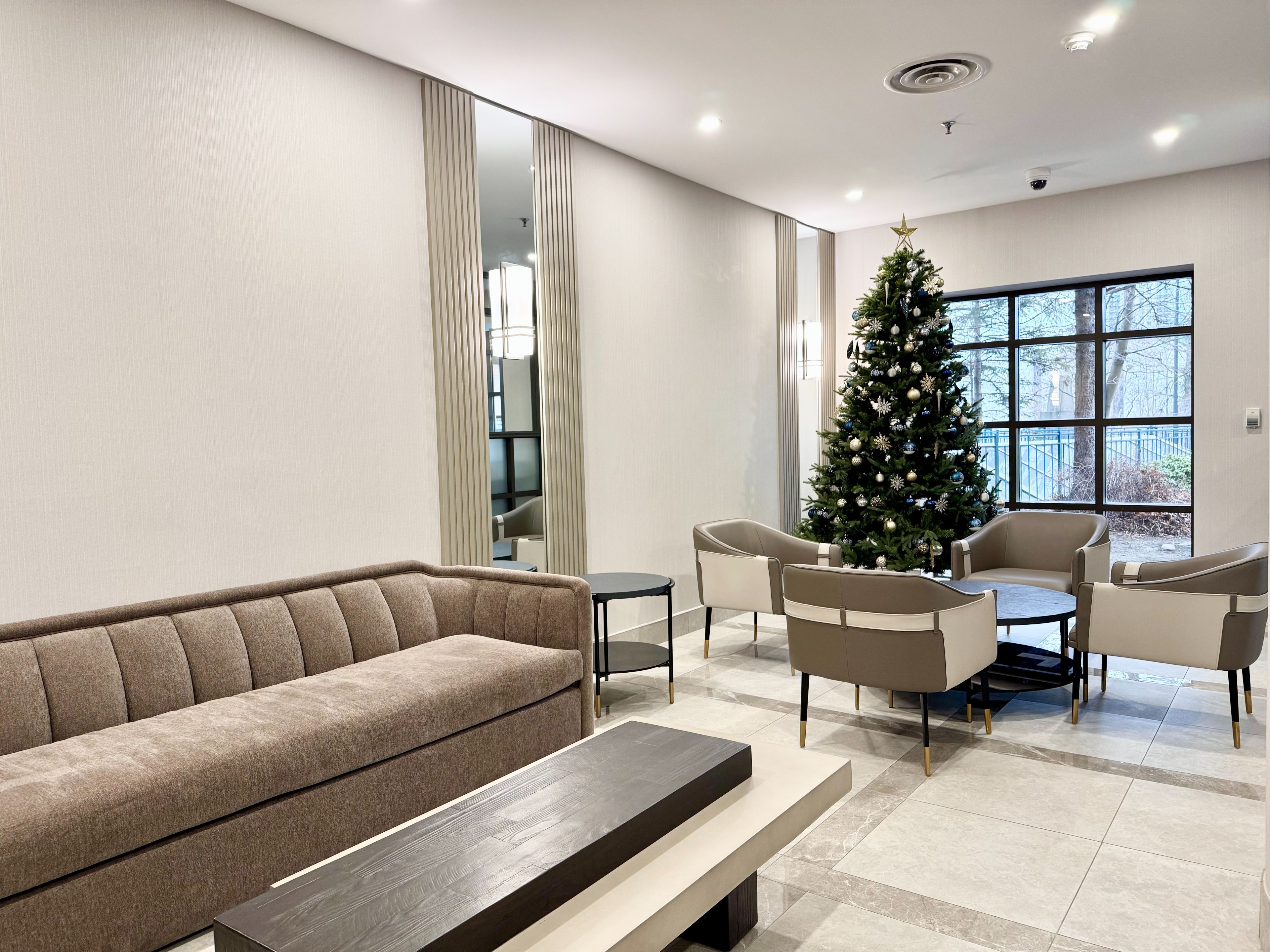 • Amenities include an indoor pool, hot tub, sauna, and gym.