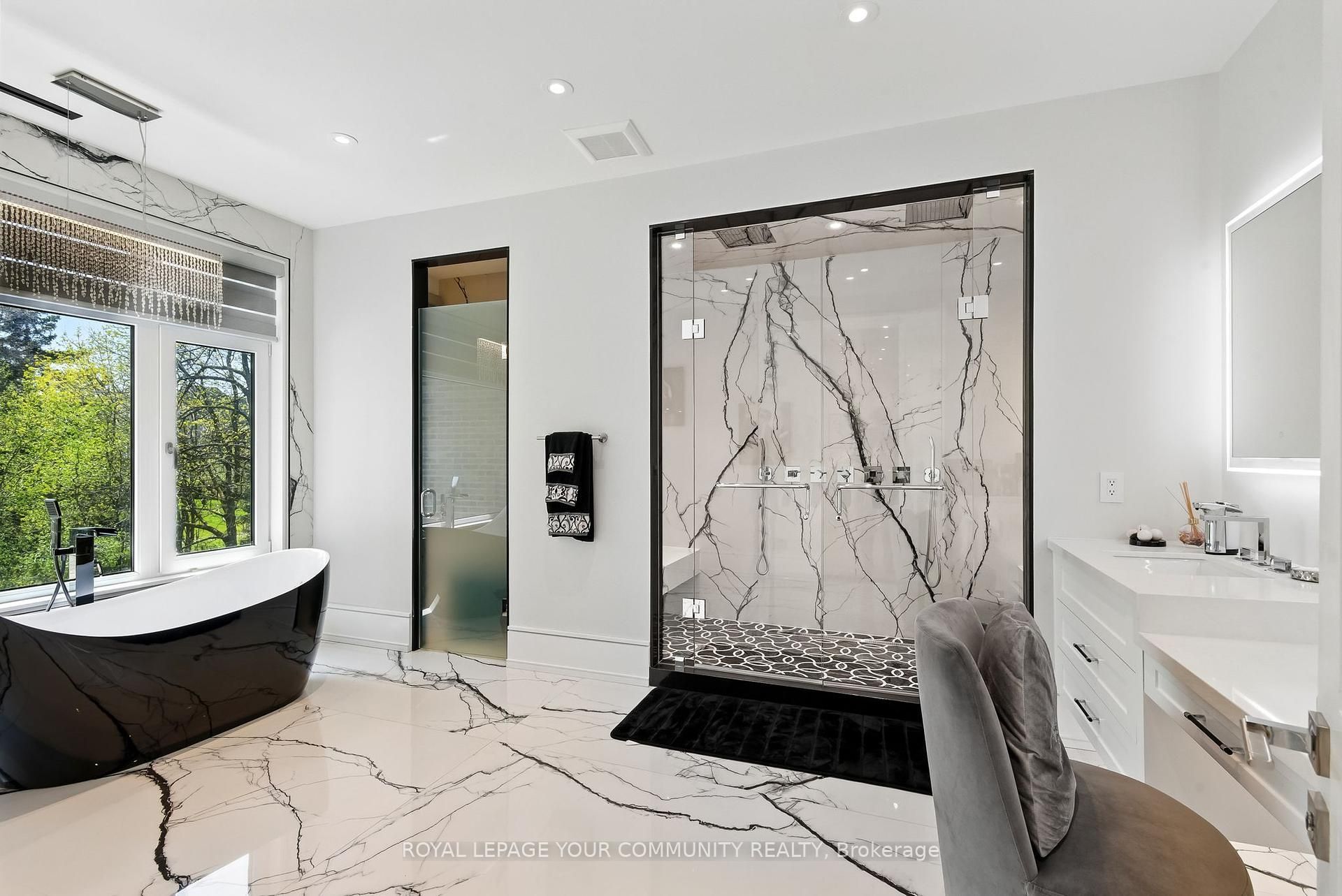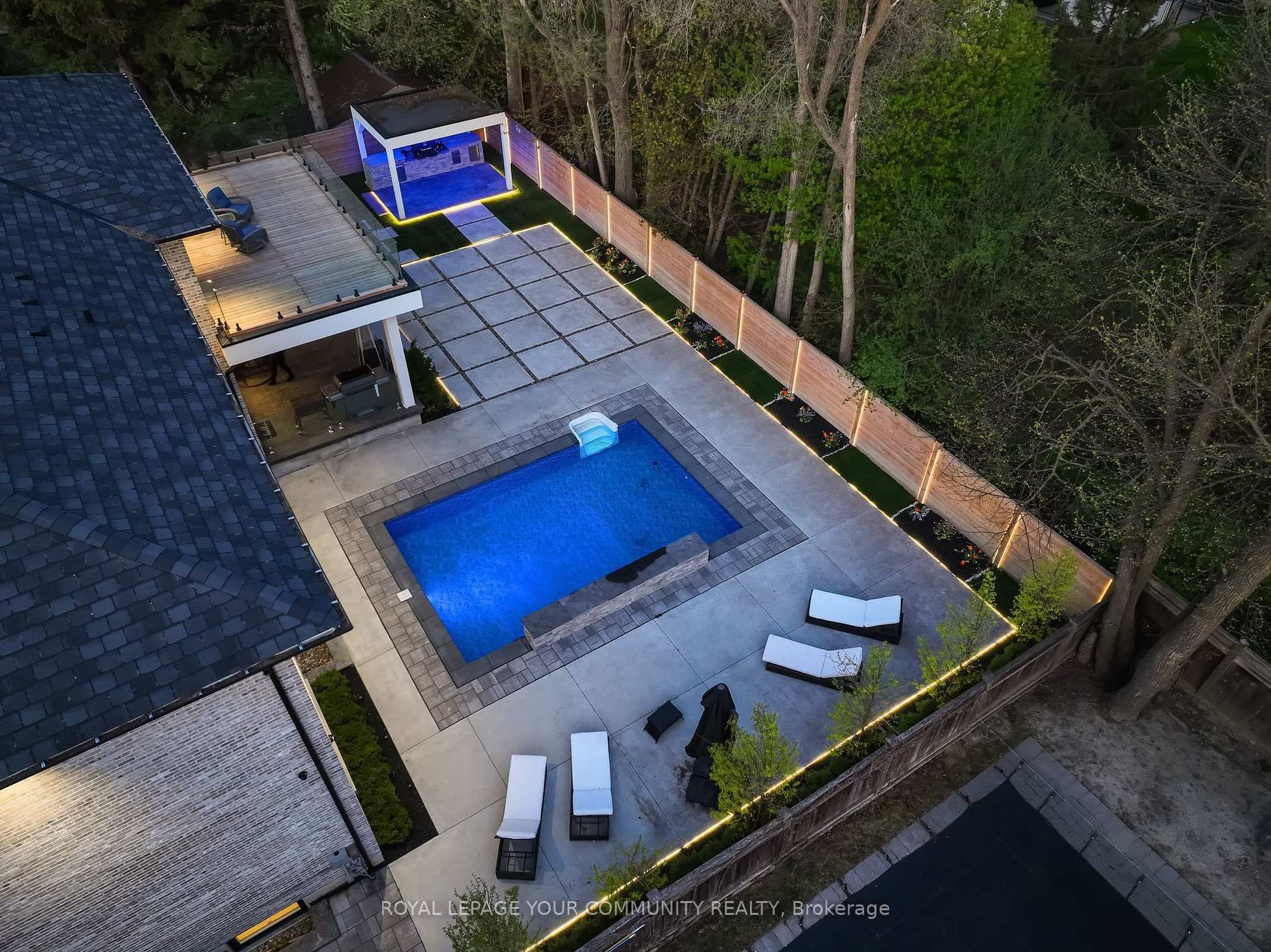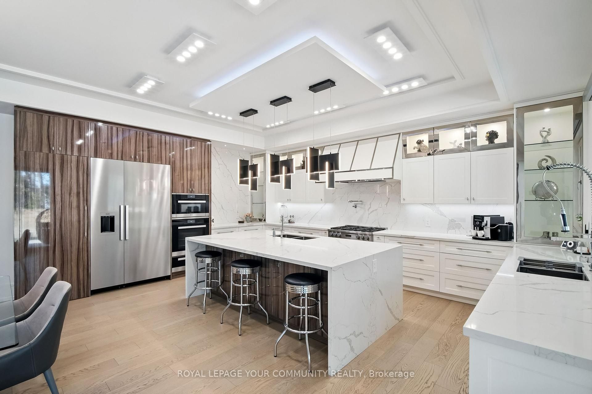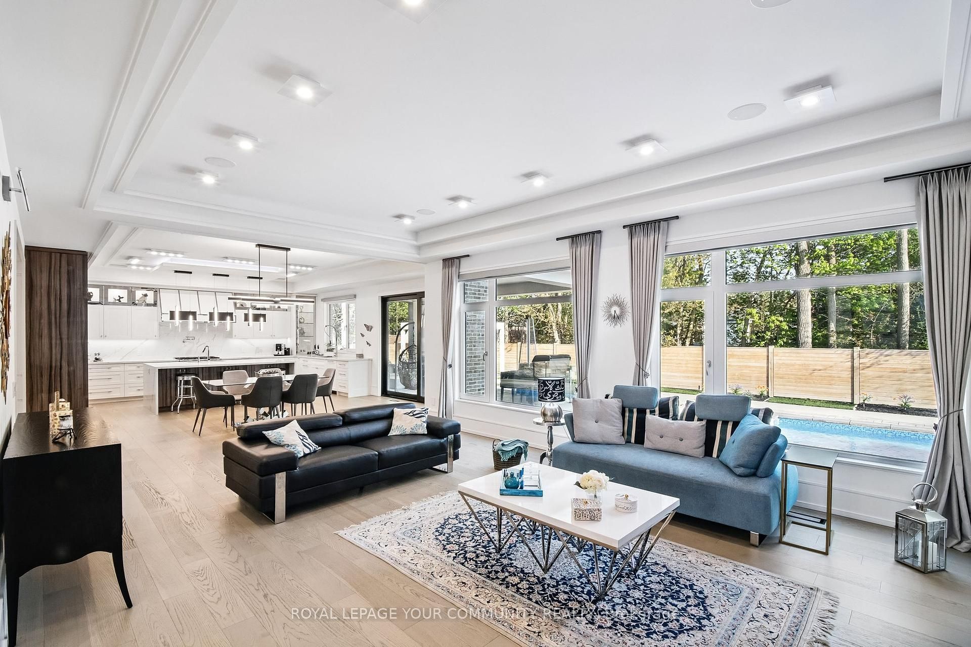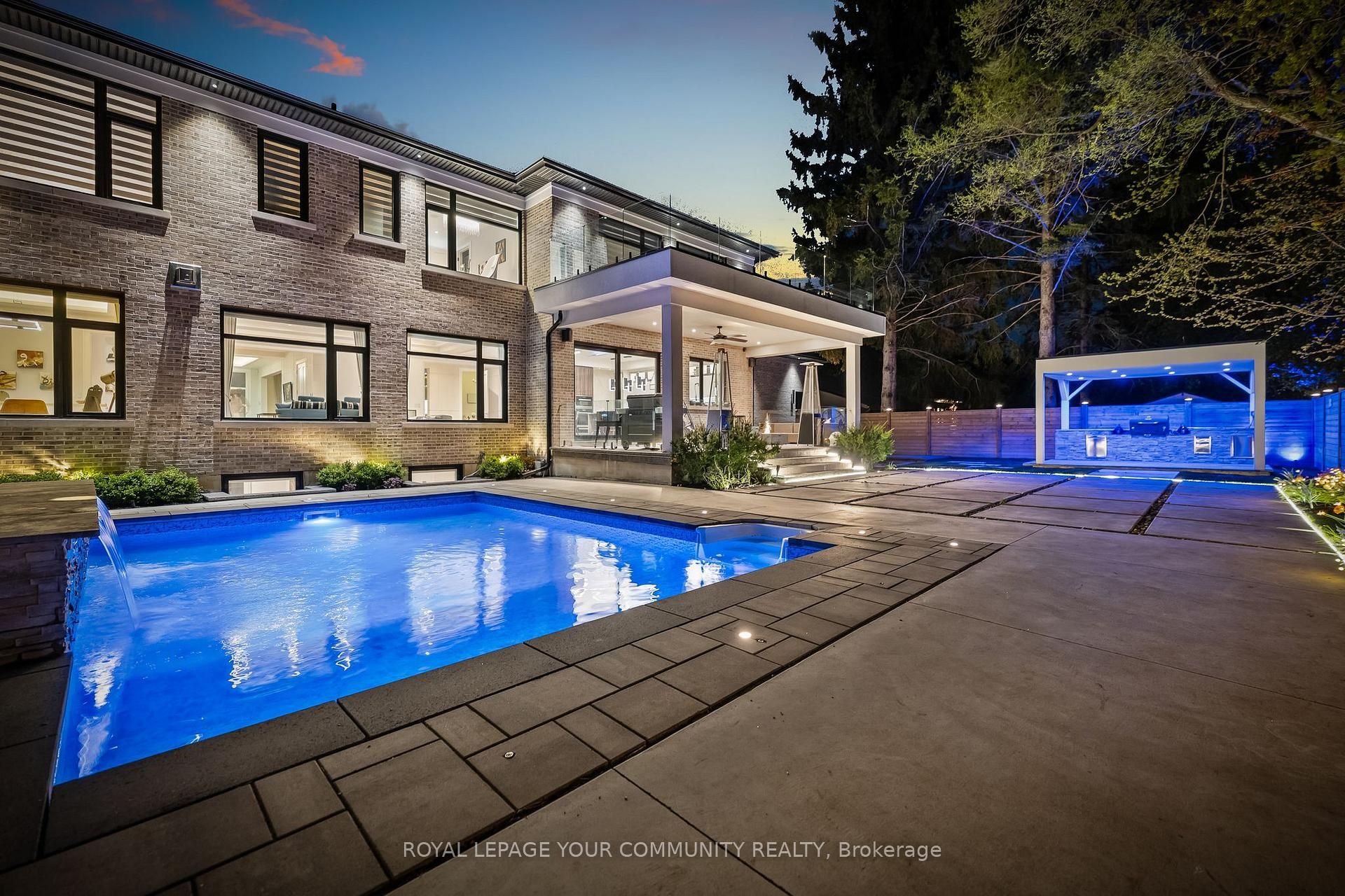 The harmonious twist of modern design & elegance is awe-inspiring. The layout is perfect! Dramatic finishes & details, from the modern steel staircase to the two story european-style windows. The ability to make modern feel warm is present as it is profound. Heated concrete drive-way. 4 car garage. Pool, cabana, hot tub, bbq station & intricate lighting features will "wow" you! Irrigation, surveillance & security systems. Smart home system to help navigate all 5858 sq. Ft. Above ground. In-wall speakers, electric window coverings & designers dream lighting fixtures + build in leds. Heated porcelain & wood floors open up to a massive kitchen adorned with miele appliances, centre island & a hidden massive pantry. Glass bolstered railings guide you up to 5 bedrooms each featuring their own private ensuite & walk in closet. The primary bedroom boasts a massive spa worthy ensuite & private terrace overlooking the entertainers dream pool area. Mature trees surround you in privacy! The lower level features 2 additional bedrooms, a gym with juice bar & a theatre room! Walk up from lower level to back yard. Minutes to shopping, parks, schools & public transportation. The perfect family home, custom built for the most driven, who deserve to spoil themselves. A family location in beautiful king city!