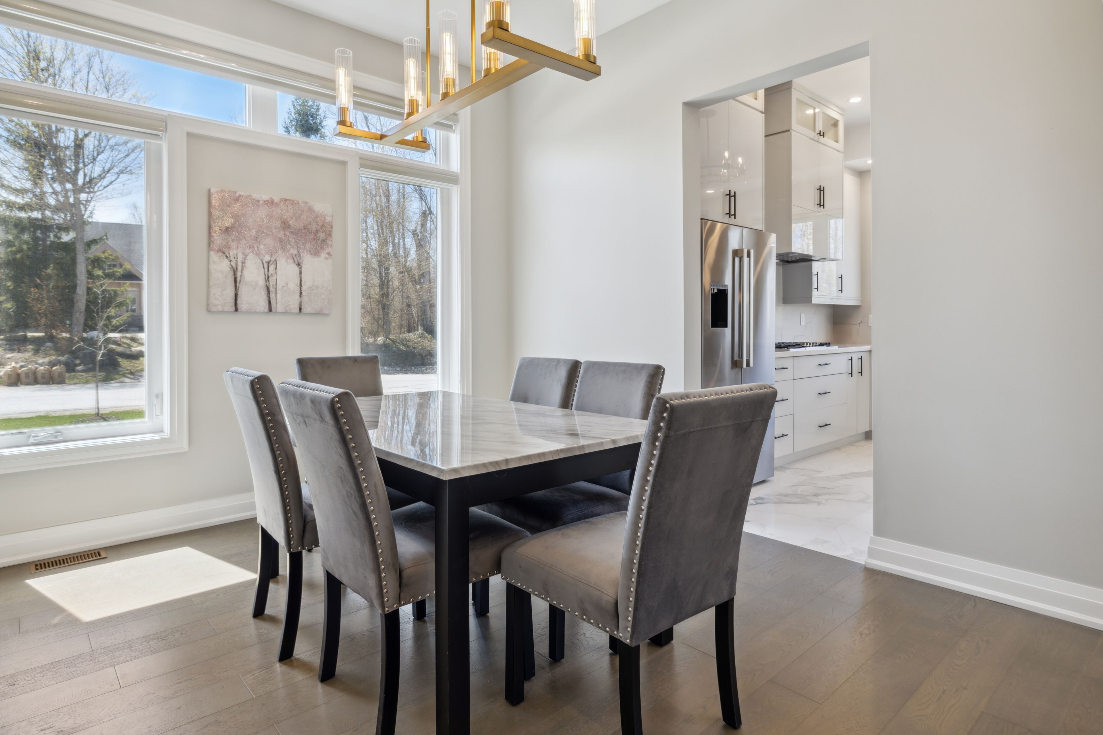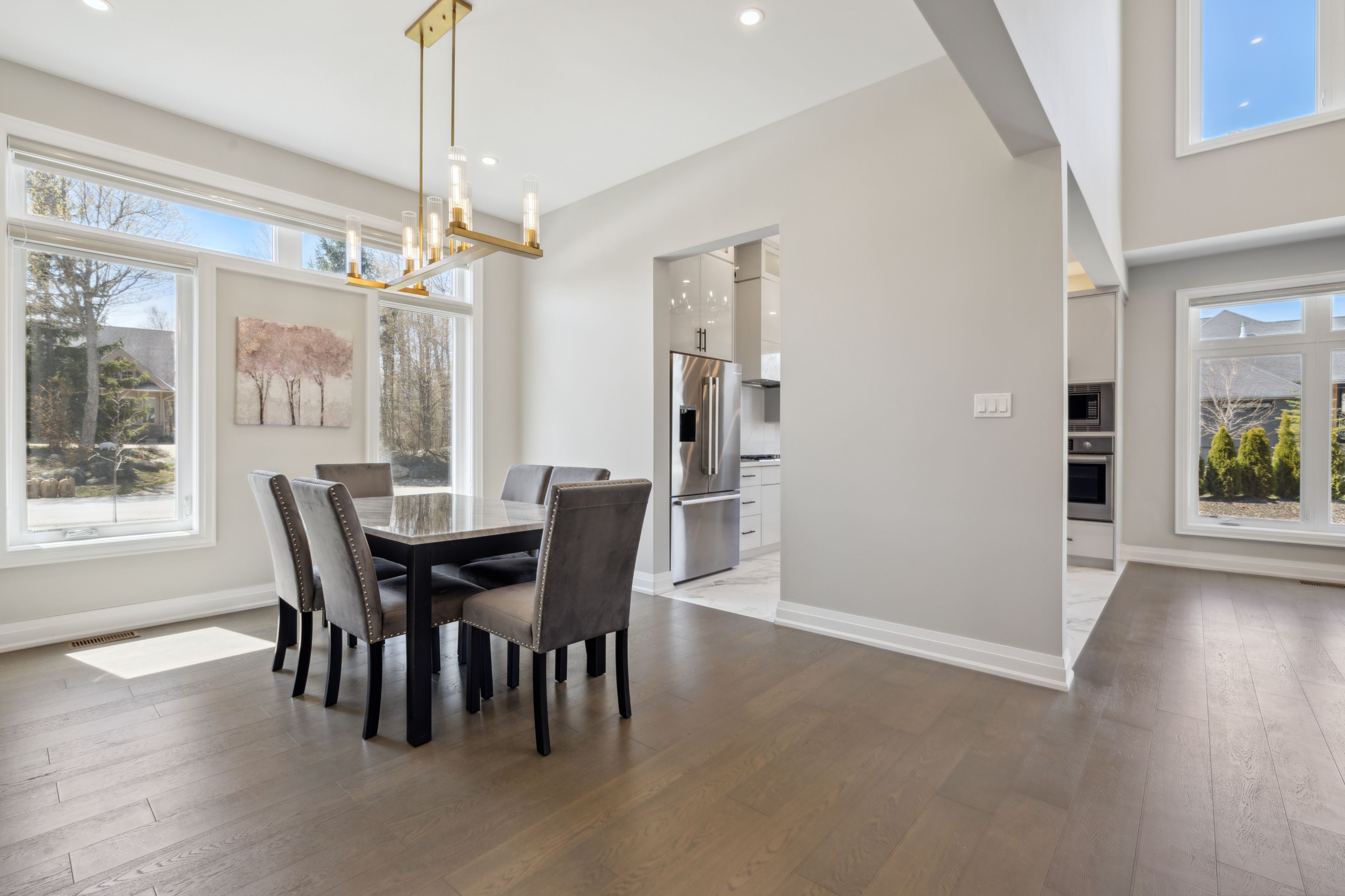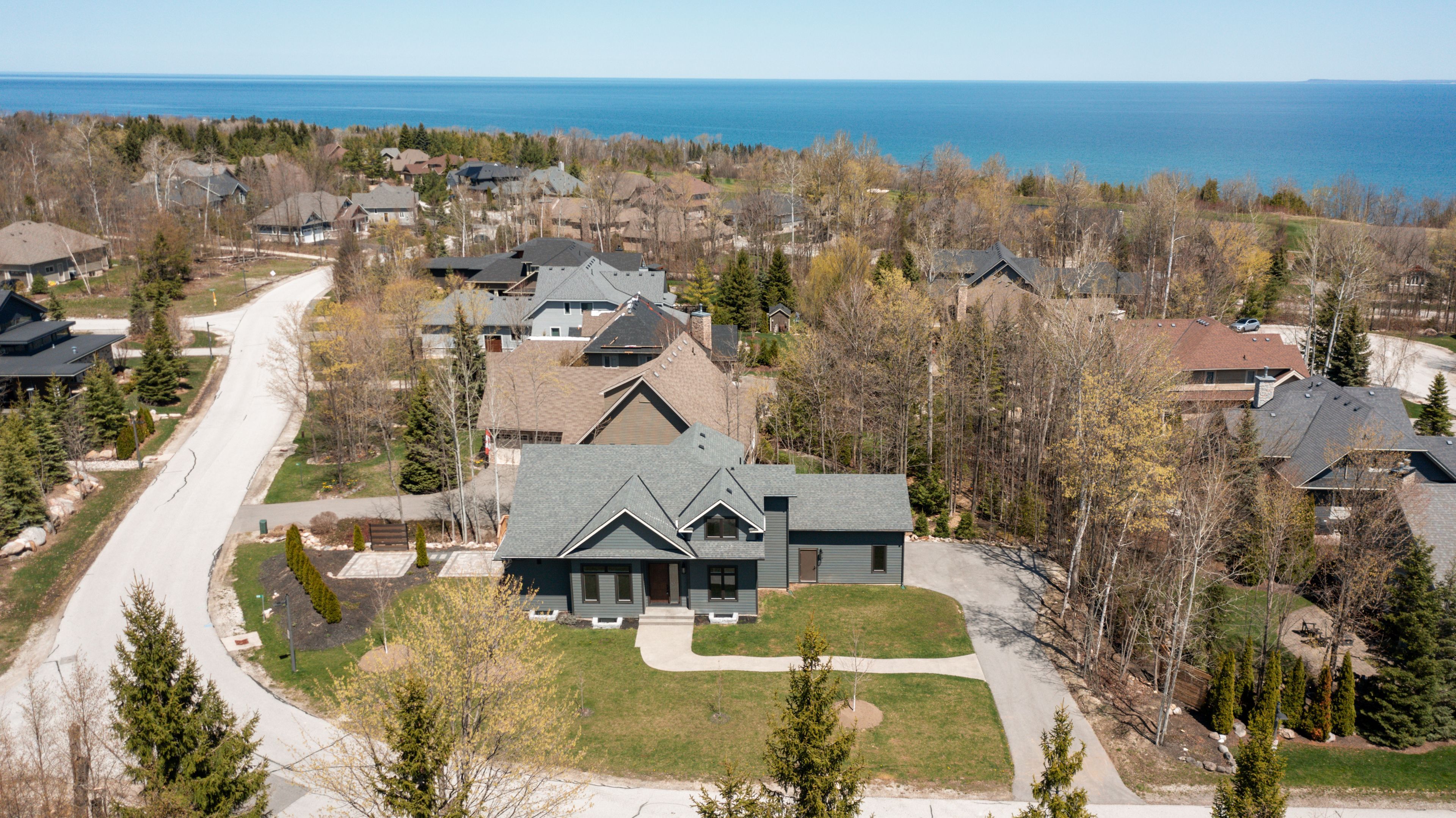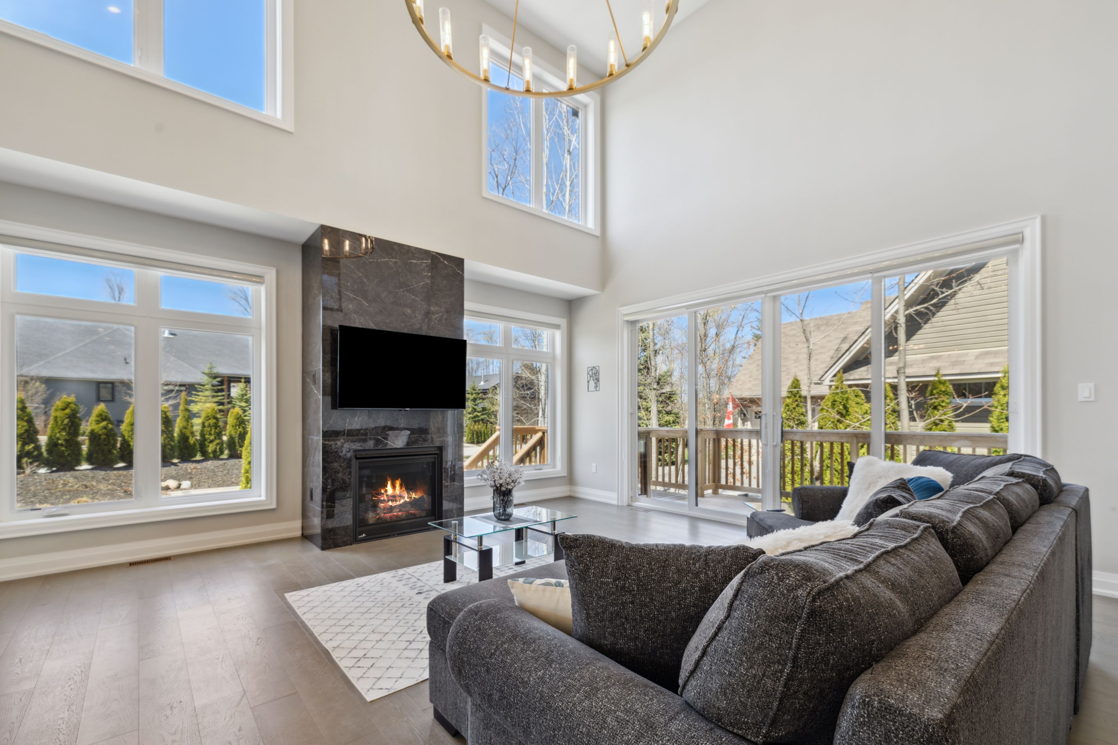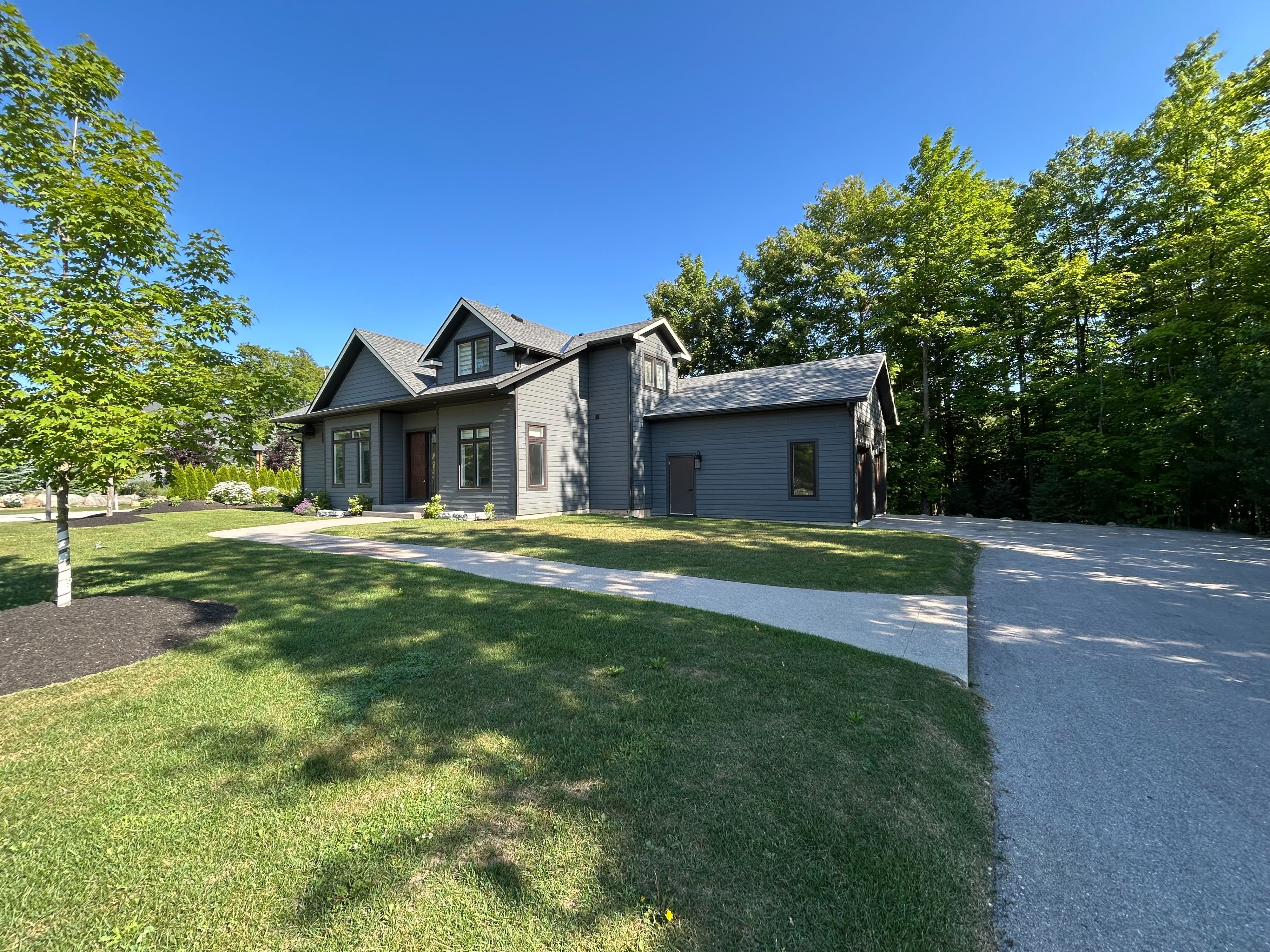 Welcome to your next chapter in the sought-after east ridge enclave of lora bay, where the beauty of georgian bay meets the ease of modern living. Set among walking trails, a championship golf course, and a vibrant year-round community, this detached home offers a rare opportunity to embrace the lora bay lifestyle in comfort and style. Step inside to an open and airy great room filled with natural light, where floor-to-ceiling windows frame peaceful views and a cozy fireplace sets the tone for relaxed living. The open-concept kitchen is a chef's delight, featuring sleek acrylic cabinetry, premium bosch appliances, and a spacious island perfect for gathering with family or friends. Enjoy morning coffee or sunset dinners on the private deck, surrounded by the quiet of nature and the warmth of community. The main floor primary suite provides a serene retreat with direct deck access, a walk-in closet, and a spa-inspired ensuite. Thoughtful details throughout-like a pet wash station in the mudroom-add practicality to everyday life. Upstairs, two generous bedrooms and a shared ensuite offer ideal accommodations for guests or family, while the finished lower level expands your living space with a welcoming entertainment area, gas fireplace, additional bedrooms, and a full bath. Set on a fully serviced lot within a friendly, active neighbourhood, this home offers an incredible opportunity to experience four-season living at its best-steps from the georgian trail, the clubhouse, and the bay itself. Whether you're relocating or searching for a weekend escape, this is your chance to own a beautifully appointed detached home in one of thornbury's most desirable lifestyle communities.