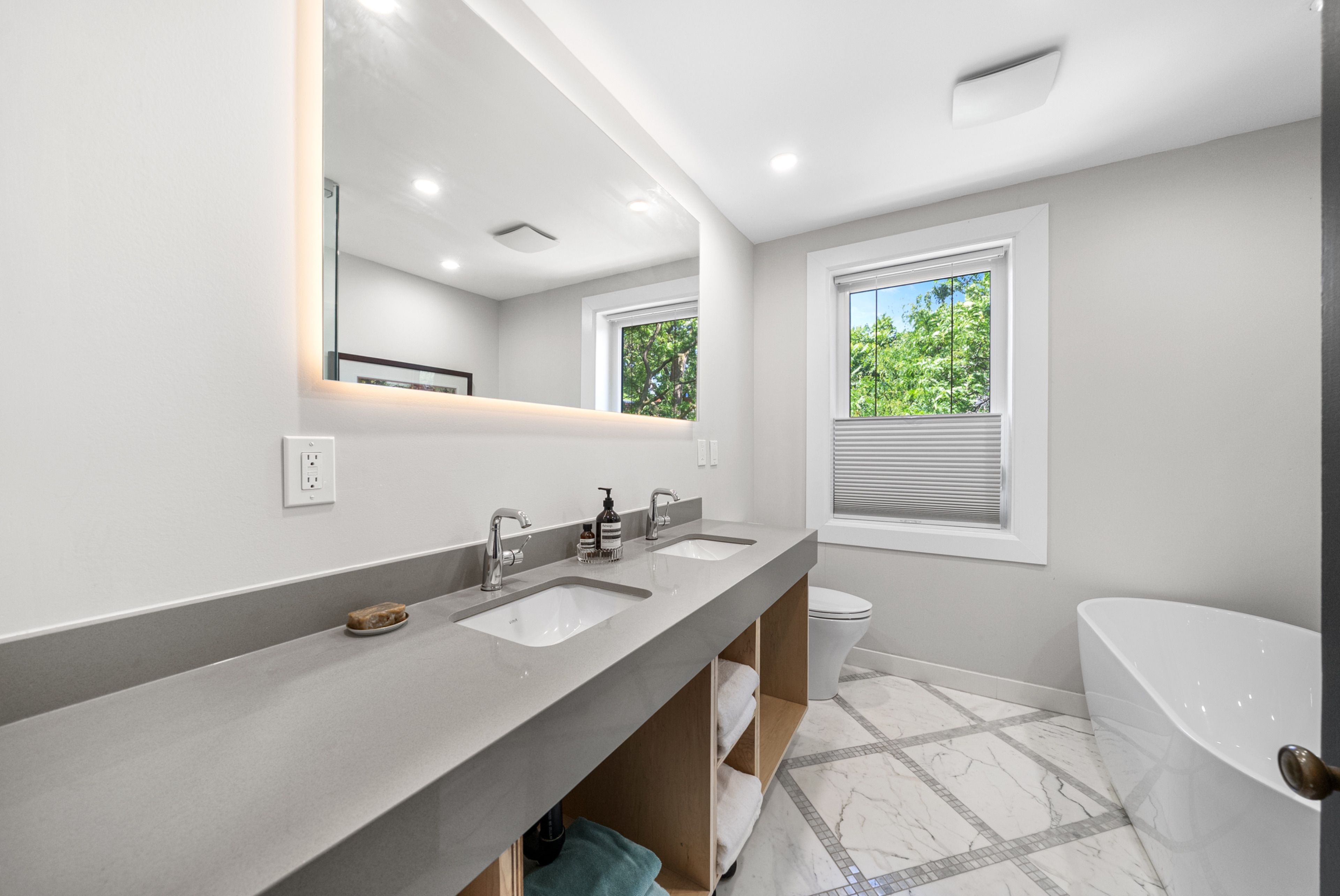 • Separate lower-level apartment ideal for guests, office, or extra income.