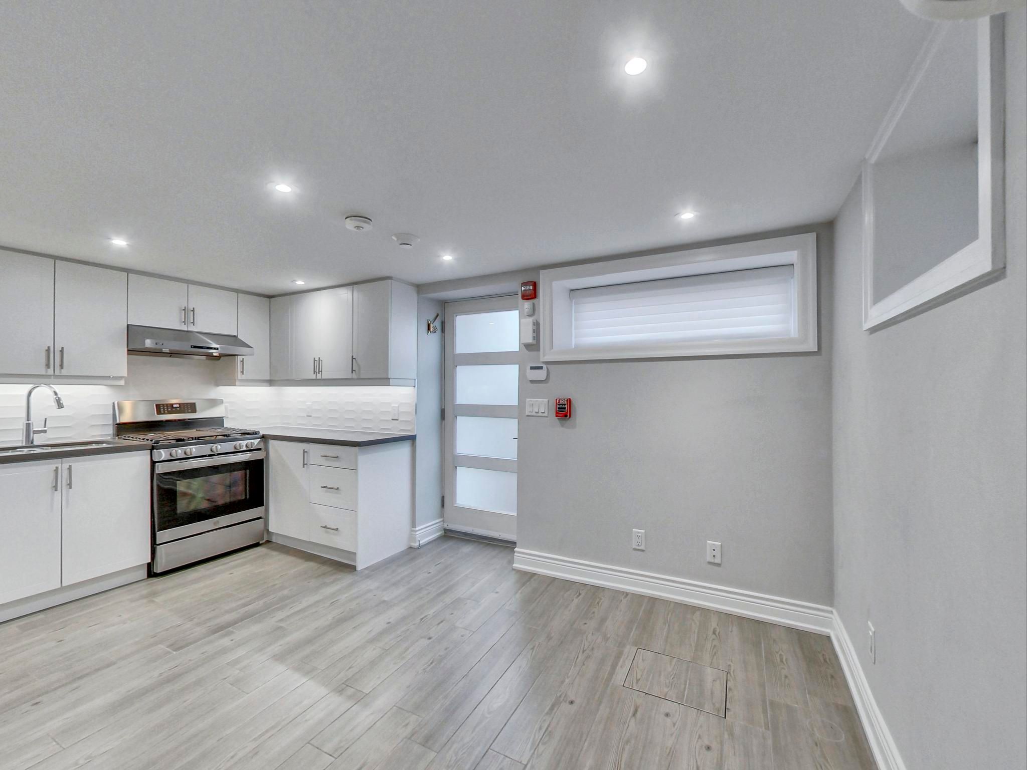 Luxuriously renovated basement 1 bedroom + 1 full bath on wallace ave in vibrant bloordale on the bloor subway line. Modern open concept living space - perfect for entertaining with tranquil views of rear garden, contemporary white kitchen w/quartz counters, stainless steel appliances, and heated designer porcelain plank flooring throughout - making it extremely comfortable, highly energy efficient powered by a gas boiler (not electric), ensuring economical and environmentally friendly operation. Bedroom with double closet, steps to: dufferin & lansdowne stations, gladstone library, wallace espresso, burdock brewery, sugo, dufferin mall, wallace emerson community centre, dufferin grove park - farmer's market, wadding pool & skating rink!