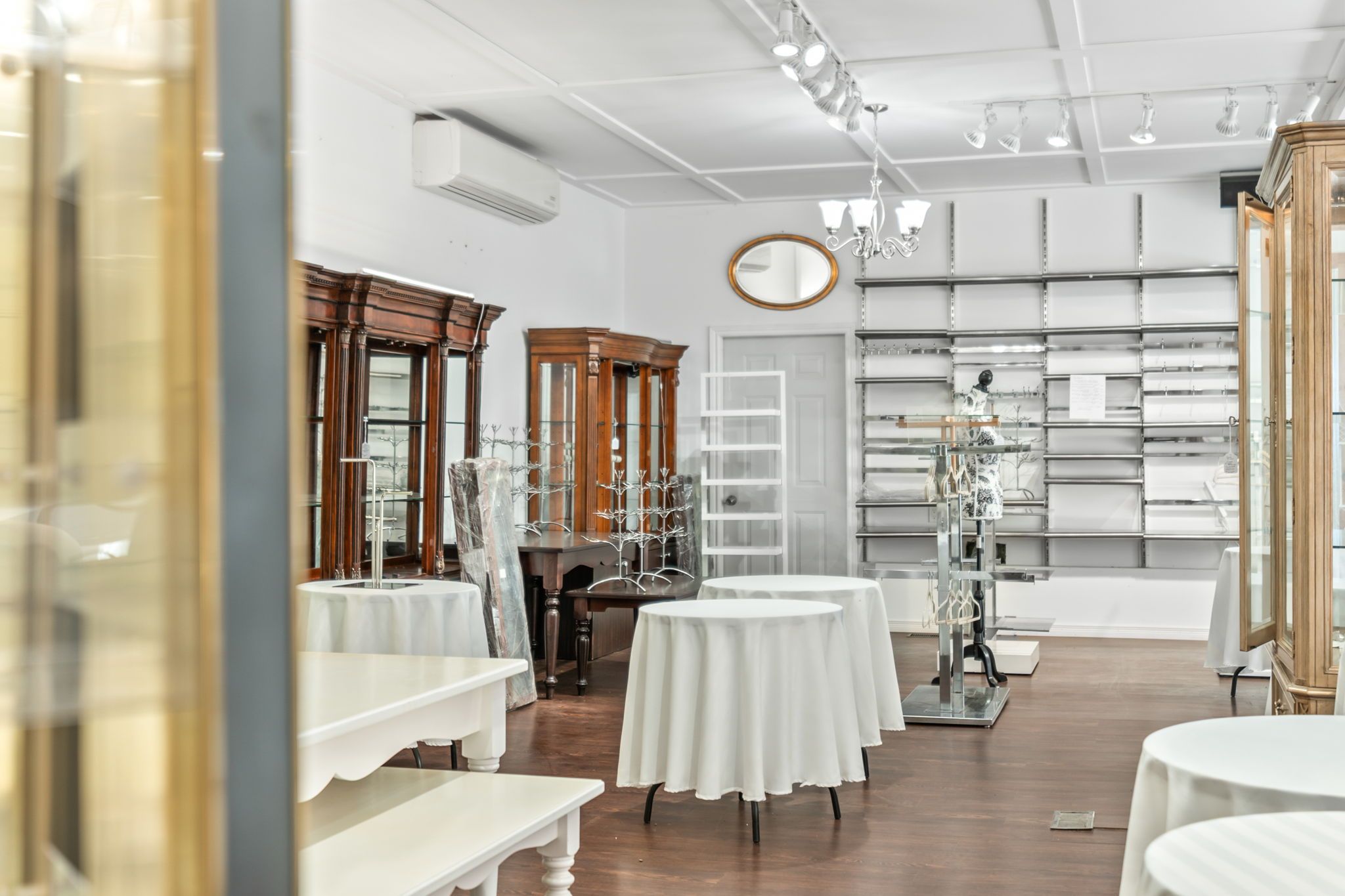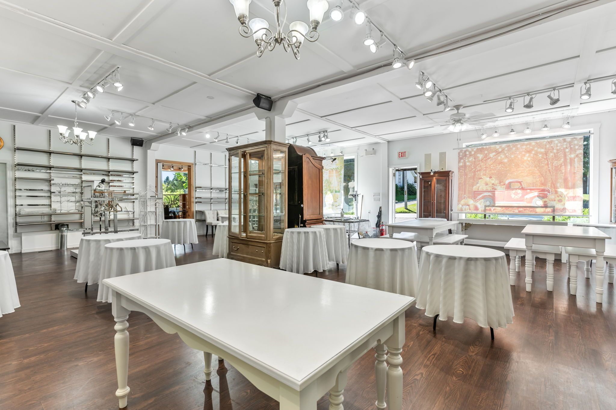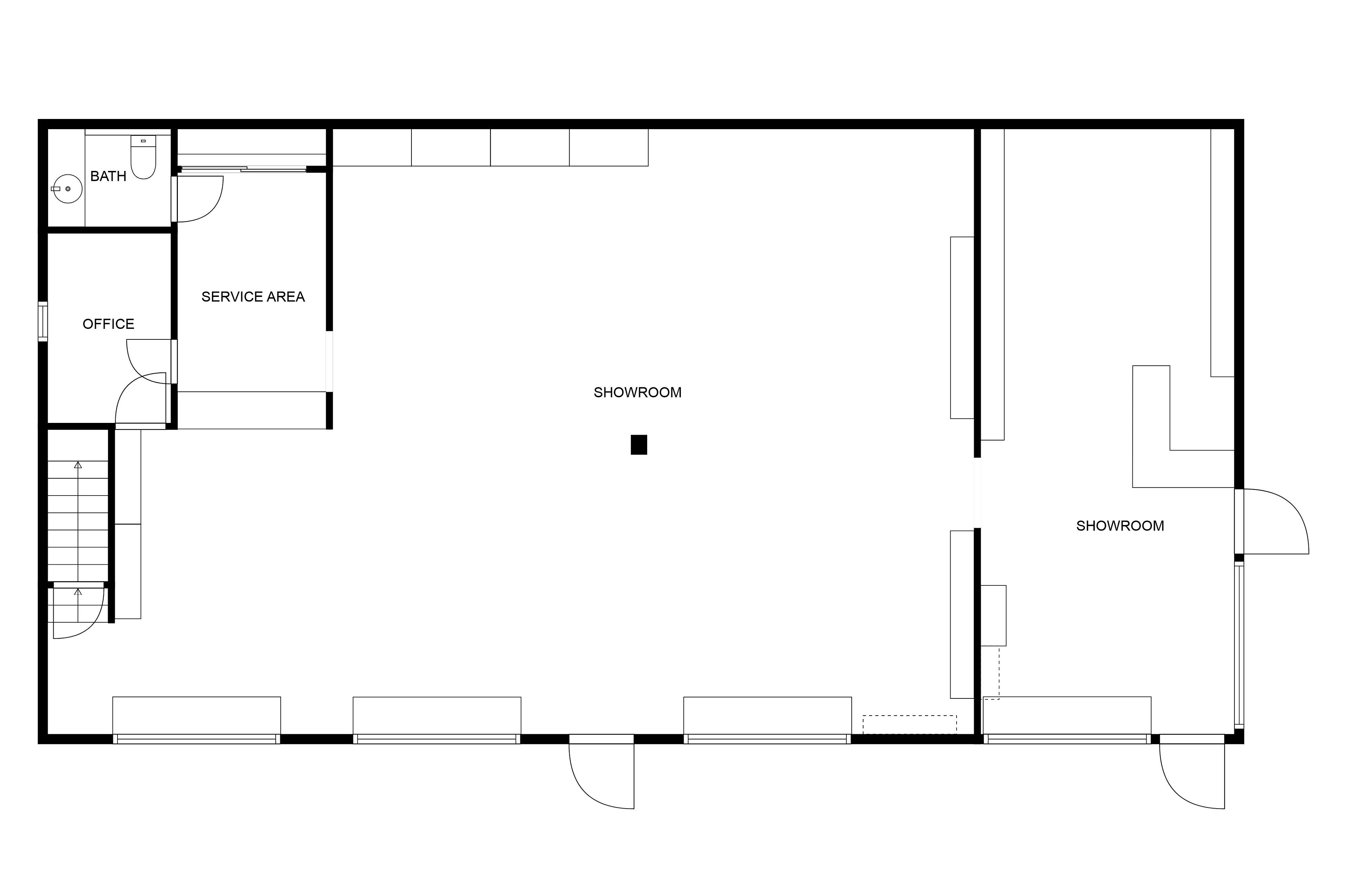 • High ceilings in the showroom, perfect for diverse setups and displays.