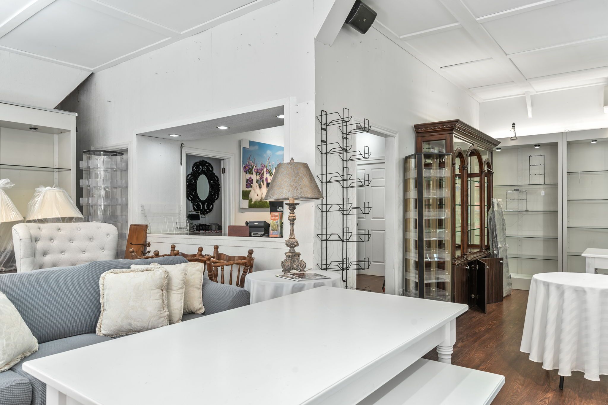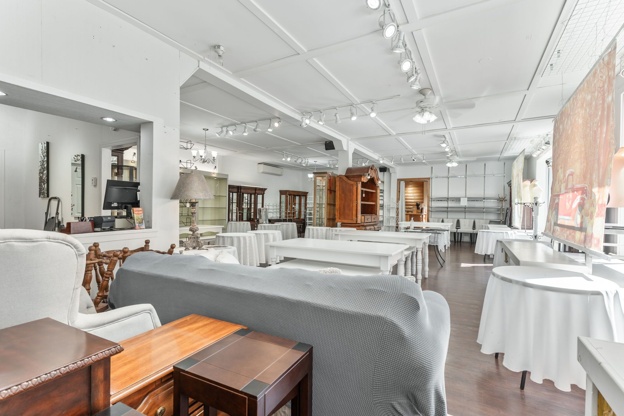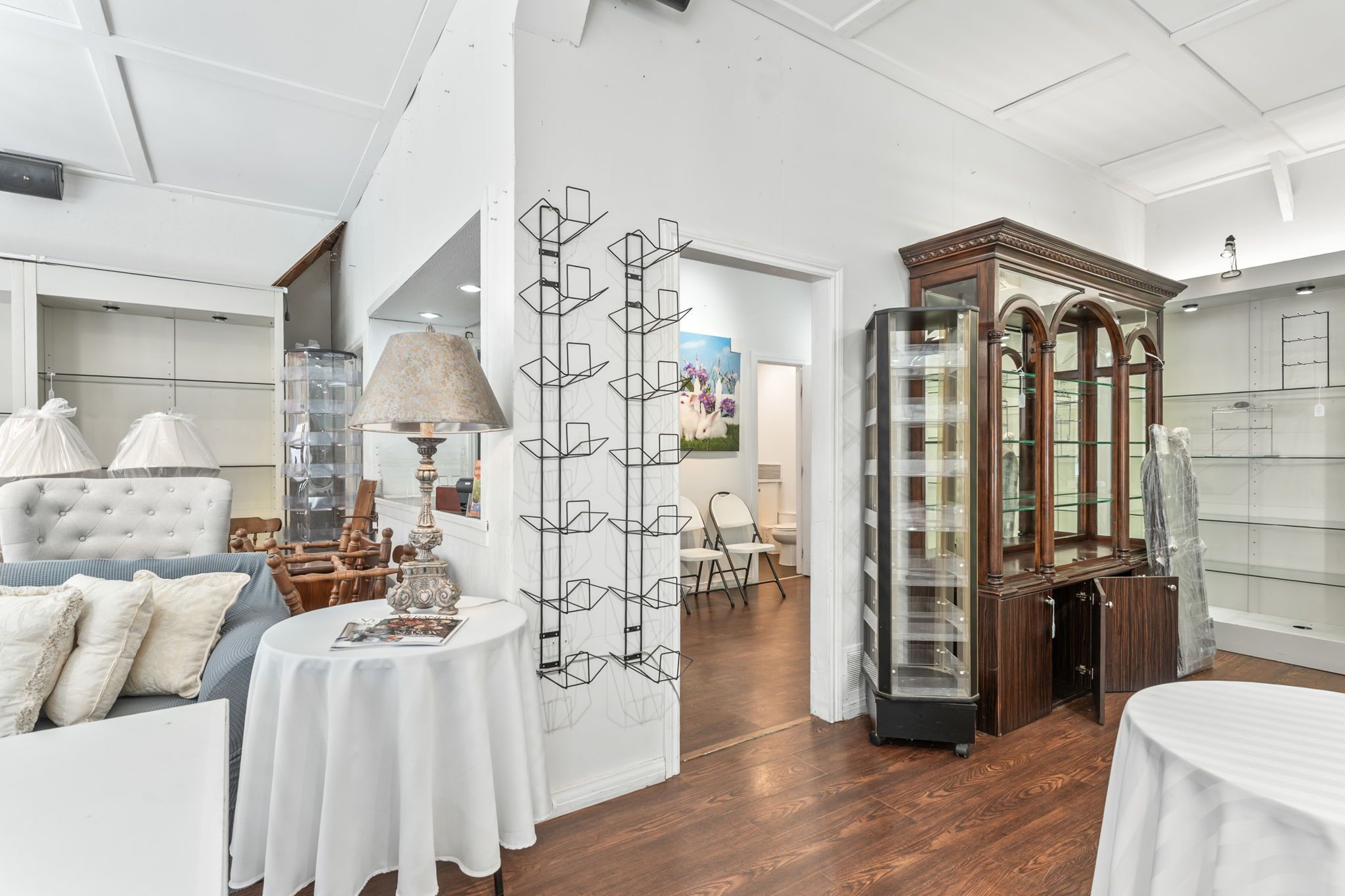 • High ceilings in the showroom, perfect for diverse setups and displays.