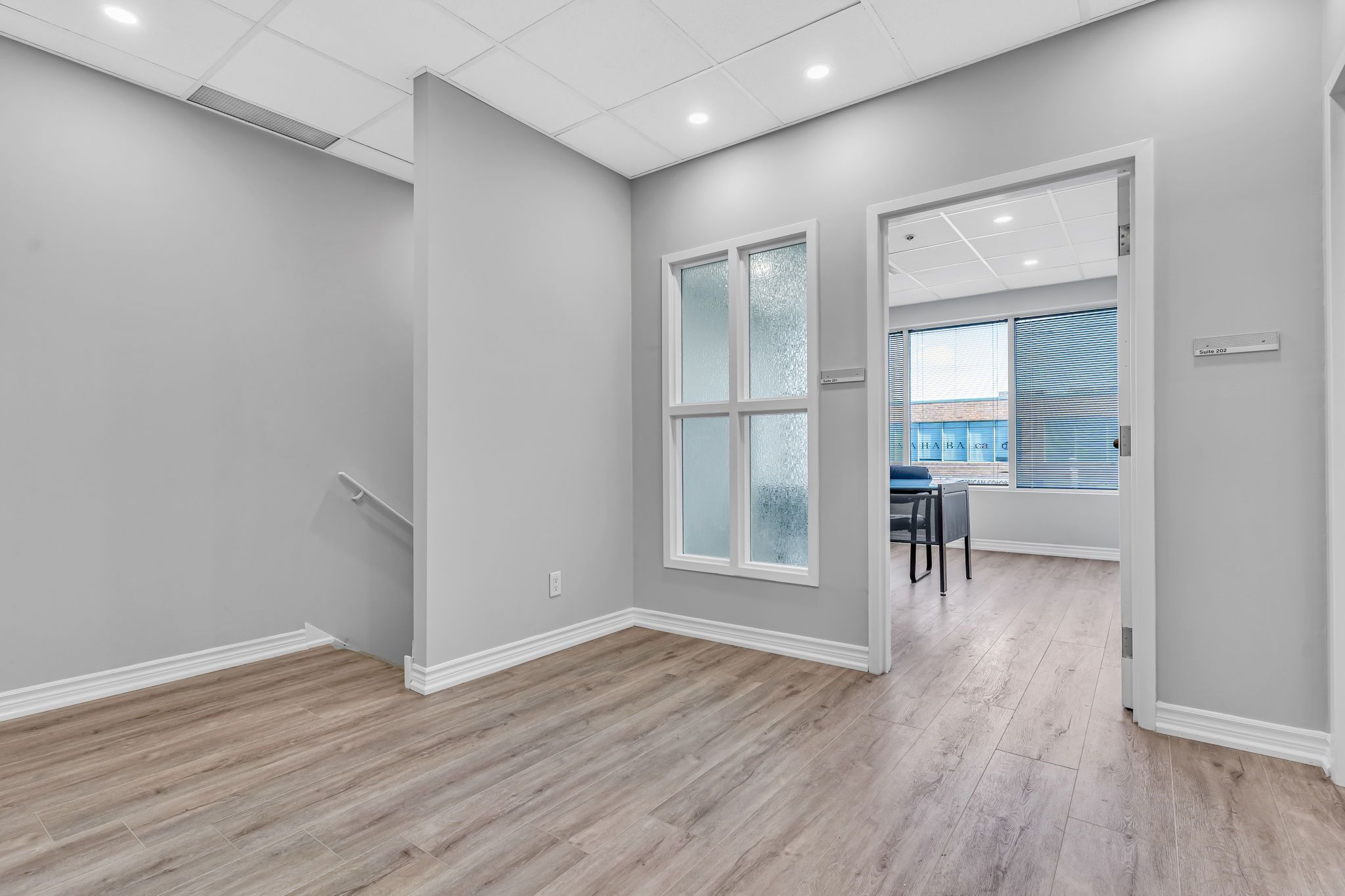 Bright and spacious 2nd floor office space, suite 205 with 124 square feet. All-inclusive + hst! Fully renovated and ideal for professionals, this bright and spacious office space offers exceptional value in a prime location. The all-inclusive rent covers heating, air conditioning, and high-speed internet, security (each office has an alarm keypad) & cameras & the main door has key and electronic fob access. Perfect and welcoming common area with a shared vestibule, bathroom and kitchen for added convenience. This is 1 space of 5 office, situalted on the upper level and can be leased furnished or unfurnished. Flexible lease length terms and willing to accomodate the tenants requests. Free ample parking is available, with convenient access to highways 427, 400, 407, and 401. Located within walking distance to numerous restaurants and coffee shops, this space is perfect for professionals seeking a modern, accessible, and well-equipped workspace. **extras** shared use of kitchen and bathroom. See floor plan attached for all office layouts and schedule c with other available unit for lease. The main floor tenancy is a quiet establishment.