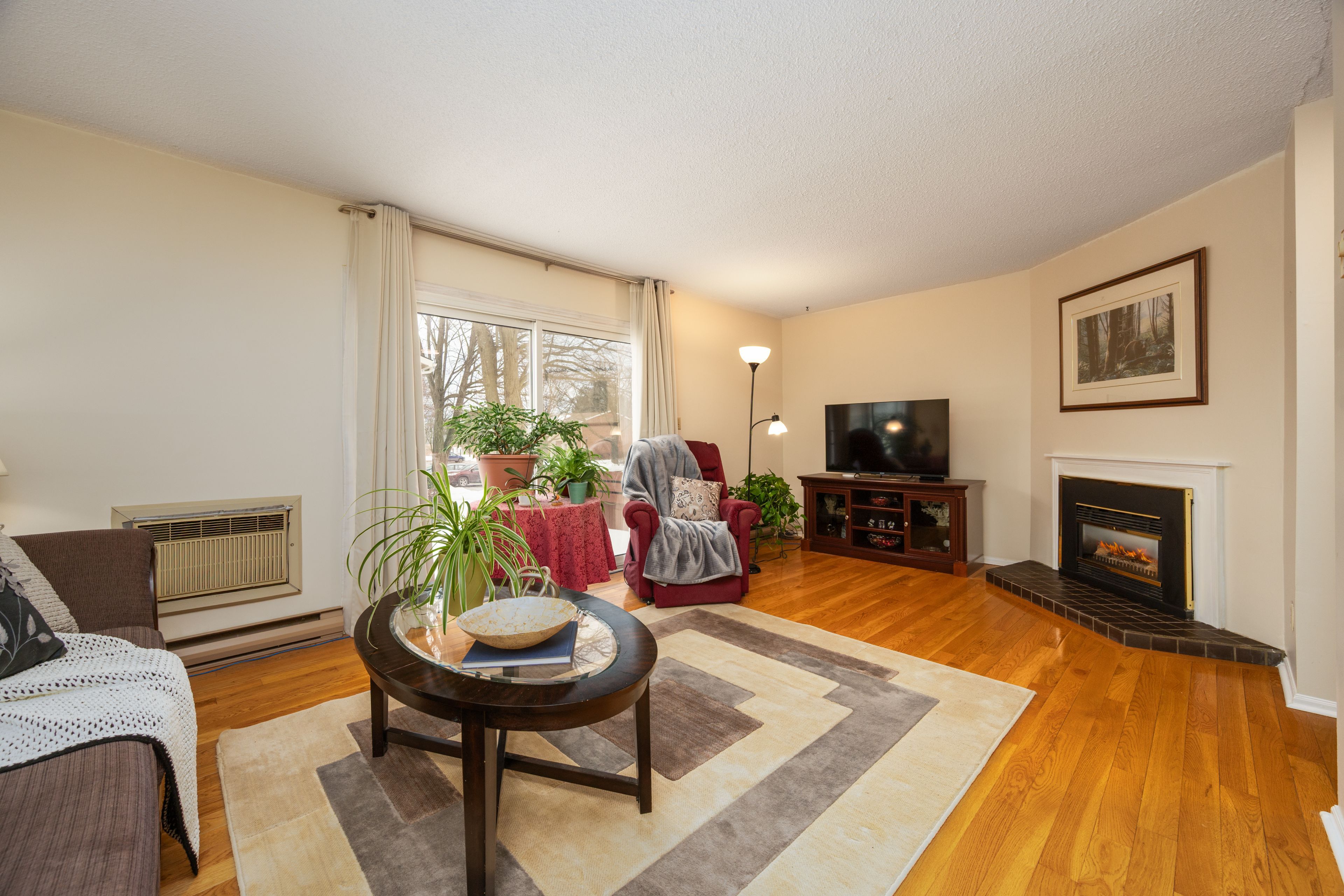 • Hardwood floors in dining and living areas with a cozy gas fireplace.