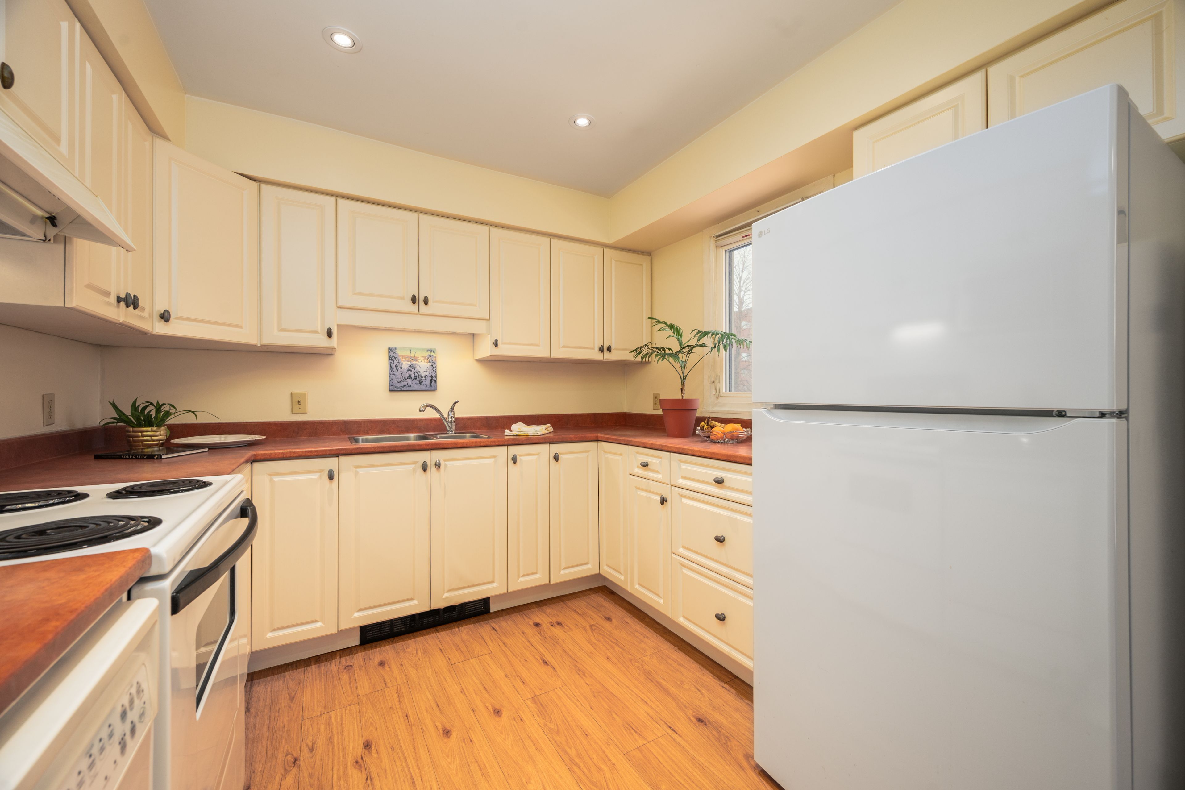 Welcome to this well-maintained townhouse condo offering a multi-level layout & thoughtful updates. Features include hardwood flooring in the formal dining area & living room, complemented by a cozy gas fireplace & upgraded lighting. The kitchen has been refreshed with recent paint & newer appliances, while the main floor powder room was updated in 2020 with a new toilet, sink & tap. Upstairs, you'll find hardwood flooring in the hallway & one bedroom, new carpet on the stairs & additional bedrooms, & a full bathroom renovated in 2025. The finished lower level provides versatile rec room space with fresh paint, laundry area & ample storage. Additional improvements are an updated chandelier, bedroom ceiling fan, smooth ceiling conversion (popcorn removed), caulking & baseboard refresh. Enjoy outdoor living with a backyard featuring cement steps & an interlocked patio (2025), along with a community in-ground pool maintained by the condo corp. An attached garage with programmable door opener & private driveway add everyday convenience. Condo fees provide a truly low-maintenance lifestyle, covering lawn care & professional landscaping, snow removal & major exterior components including roof shingles & windows allowing owners to enjoy worry-free living in a central location close to shopping, public transit, the ymca & recreation along with downtown kingston. A solid, move-in-ready opportunity with room to personalize.