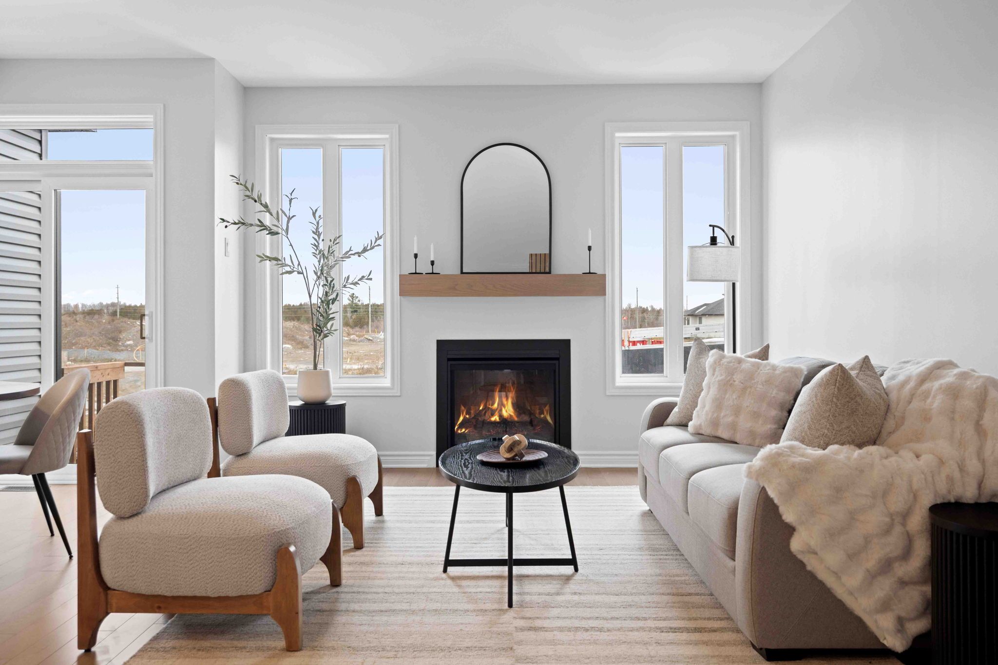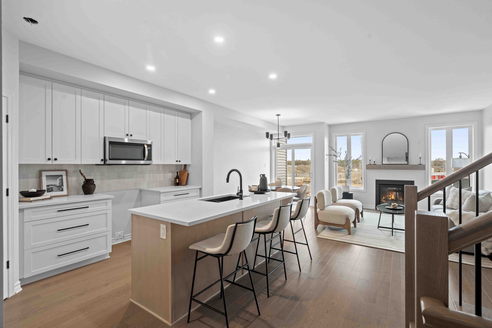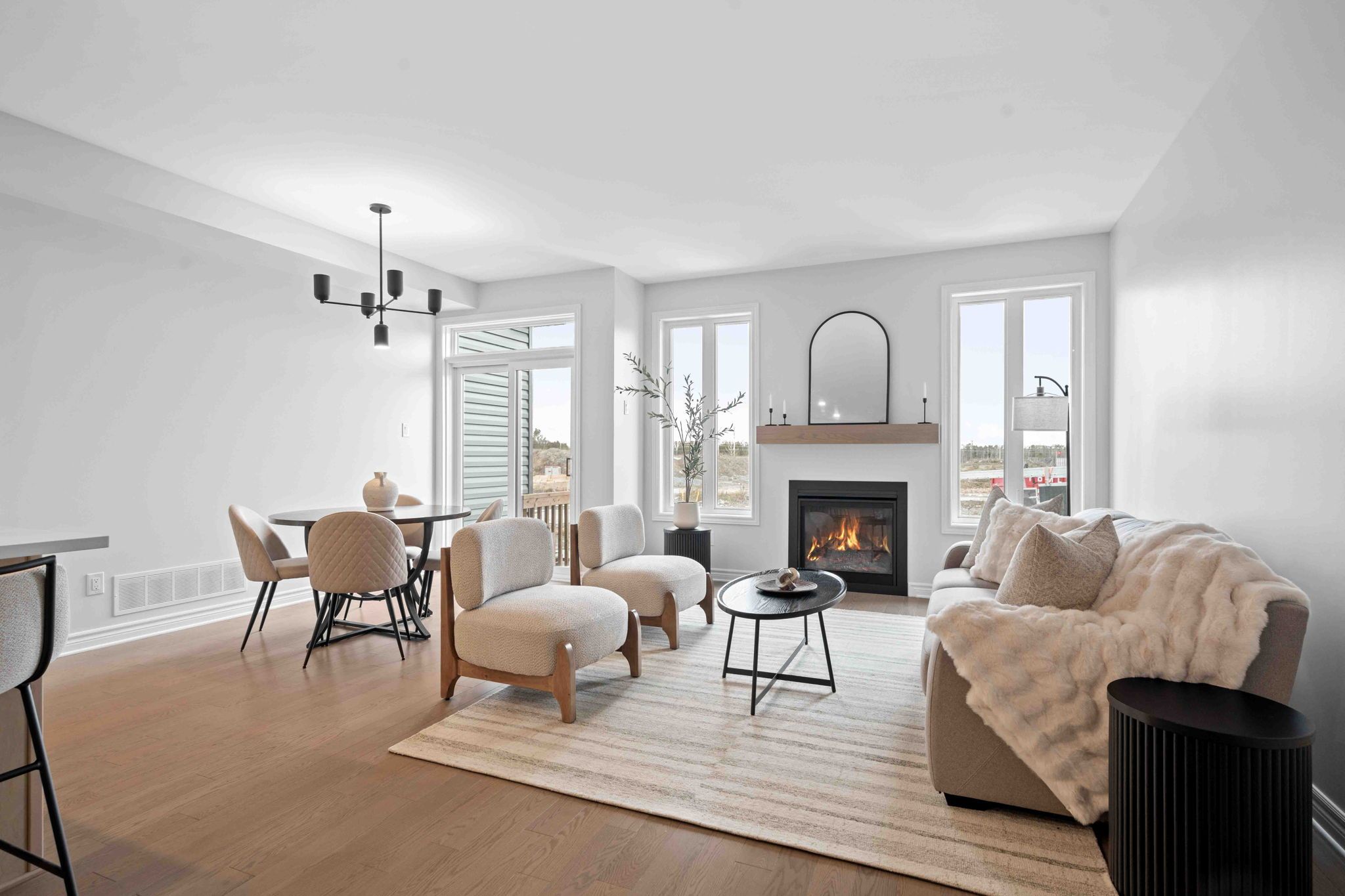 Welcome to 1150 cope drive - a stunning stanley 2 model by valecraft homes. This modern 3-bed, 2. 5-bath townhome is designed for today's lifestyle. The sun-filled main level boasts an open-concept layout with a stylish kitchen featuring generous cabinetry, a dining area with access to the backyard and a living room with a cozy fireplace to add warmth and charm, creating a perfect atmosphere for gatherings or quiet evenings at home. A powder room adds convenience on this level. Upstairs, the primary suite serves as a private retreat with a walk-in closet and beautifully appointed ensuite. Two additional bedrooms and a full bath ensure plenty of space for family or guests. The finished lower level offers a spacious rec room ideal for movie nights, a home gym, or children's play area - adding valuable living space to the home. Set in a family-friendly community near schools and parks, this home offers quality craftsmanship, contemporary design, and everyday convenience.