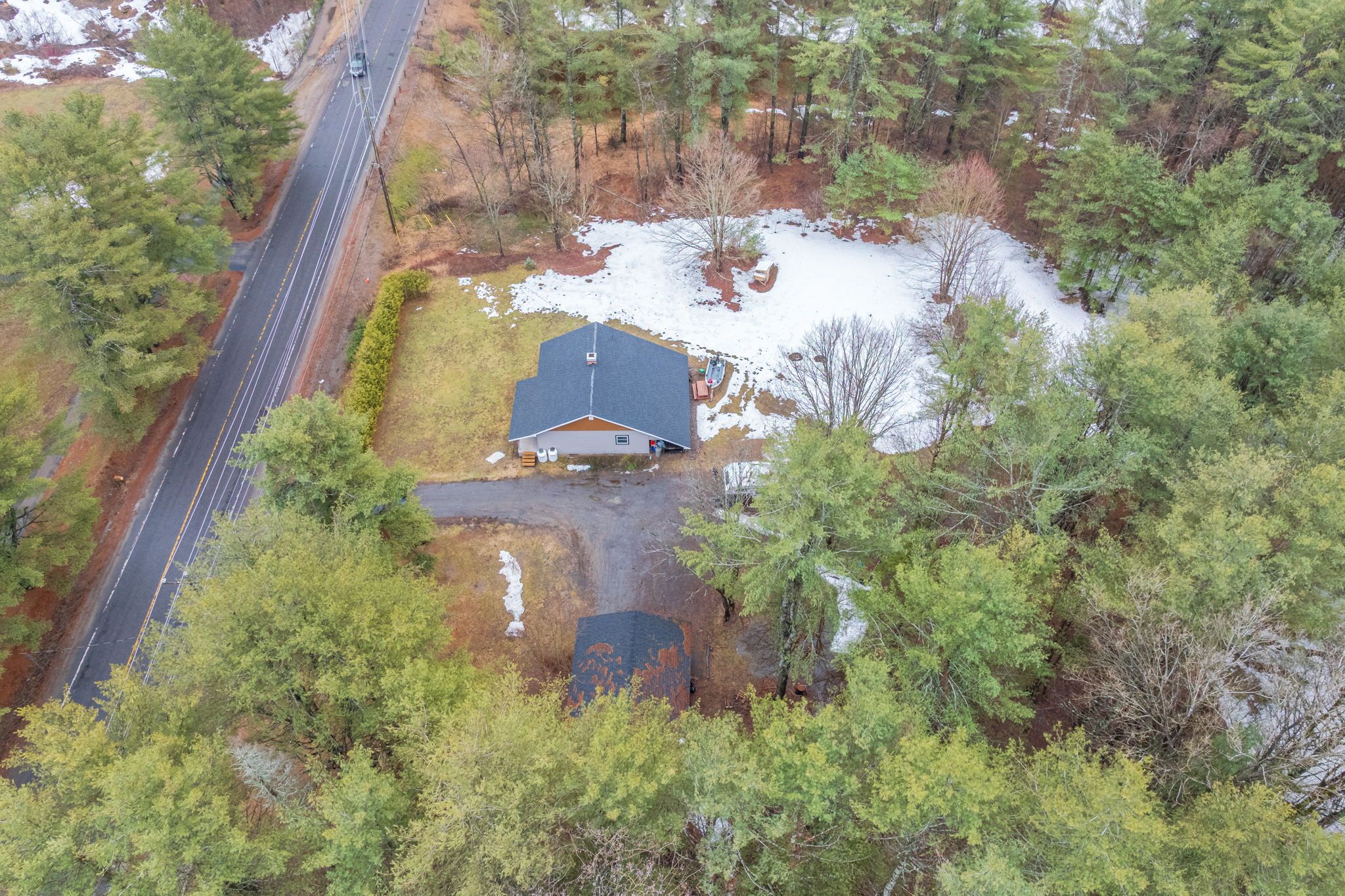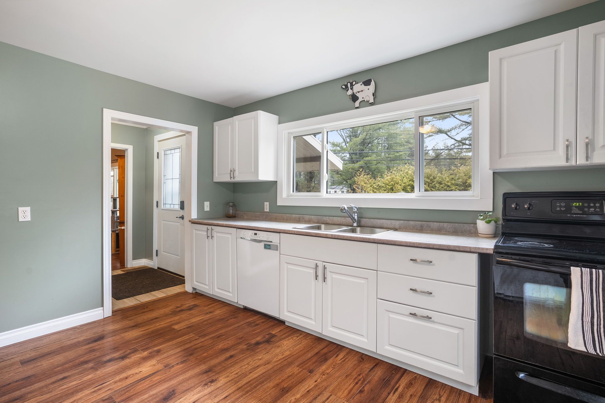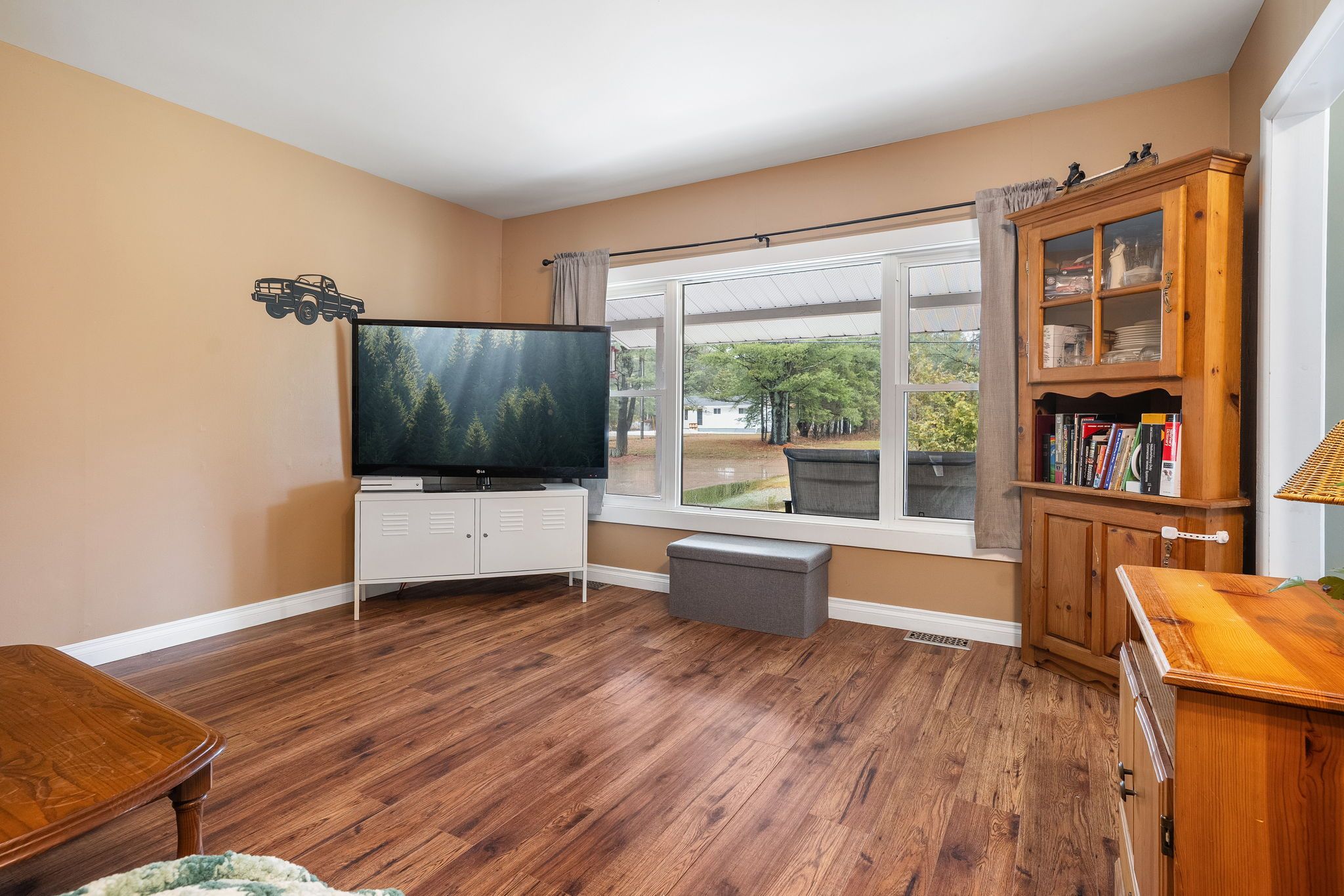 Escape the feeling of a crowded neighborhood with this charming three-bedroom bungalow, perfectly situated on nearly two acres of level, private land that balances a peaceful rural atmosphere with exceptional convenience. Located on a well-maintained road just five minutes from downtown shopping, dining, the local hospital, and highway access, this home has been thoughtfully maintained with a polished interior featuring updated flooring, lighting, and a bright, contemporary kitchen and bathroom. Outside, the massive double garage offers a professional-grade workshop space or ample vehicle storage, while a dedicated generator hookup provides peace of mind and reliability during inclement weather. With a full basement ready for your finishing touches and a scenic walking trail right across the street, this property offers the space and freedom of country living without sacrificing the amenities of town.