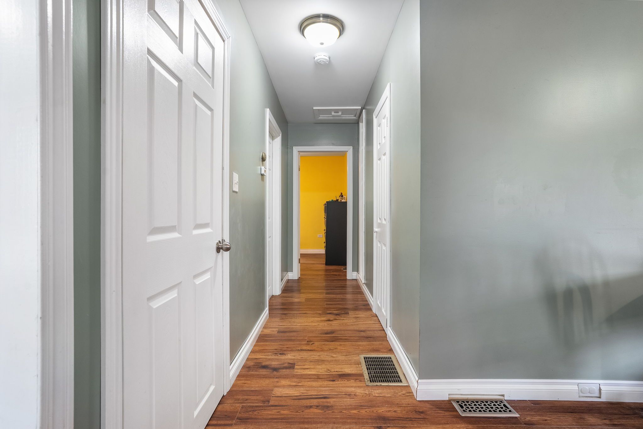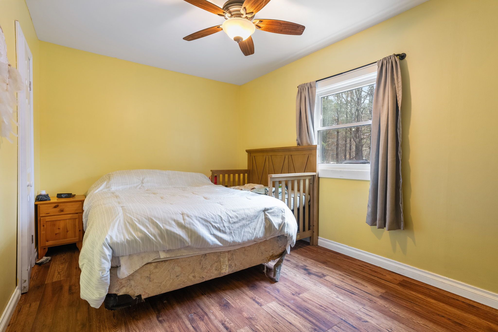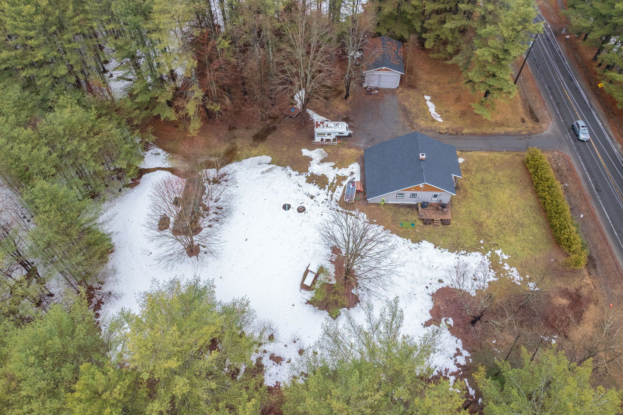 Escape the feeling of a crowded neighborhood with this charming three-bedroom bungalow, perfectly situated on nearly two acres of level, private land that balances a peaceful rural atmosphere with exceptional convenience. Located on a well-maintained road just five minutes from downtown shopping, dining, the local hospital, and highway access, this home has been thoughtfully maintained with a polished interior featuring updated flooring, lighting, and a bright, contemporary kitchen and bathroom. Outside, the massive double garage offers a professional-grade workshop space or ample vehicle storage, while a dedicated generator hookup provides peace of mind and reliability during inclement weather. With a full basement ready for your finishing touches and a scenic walking trail right across the street, this property offers the space and freedom of country living without sacrificing the amenities of town.