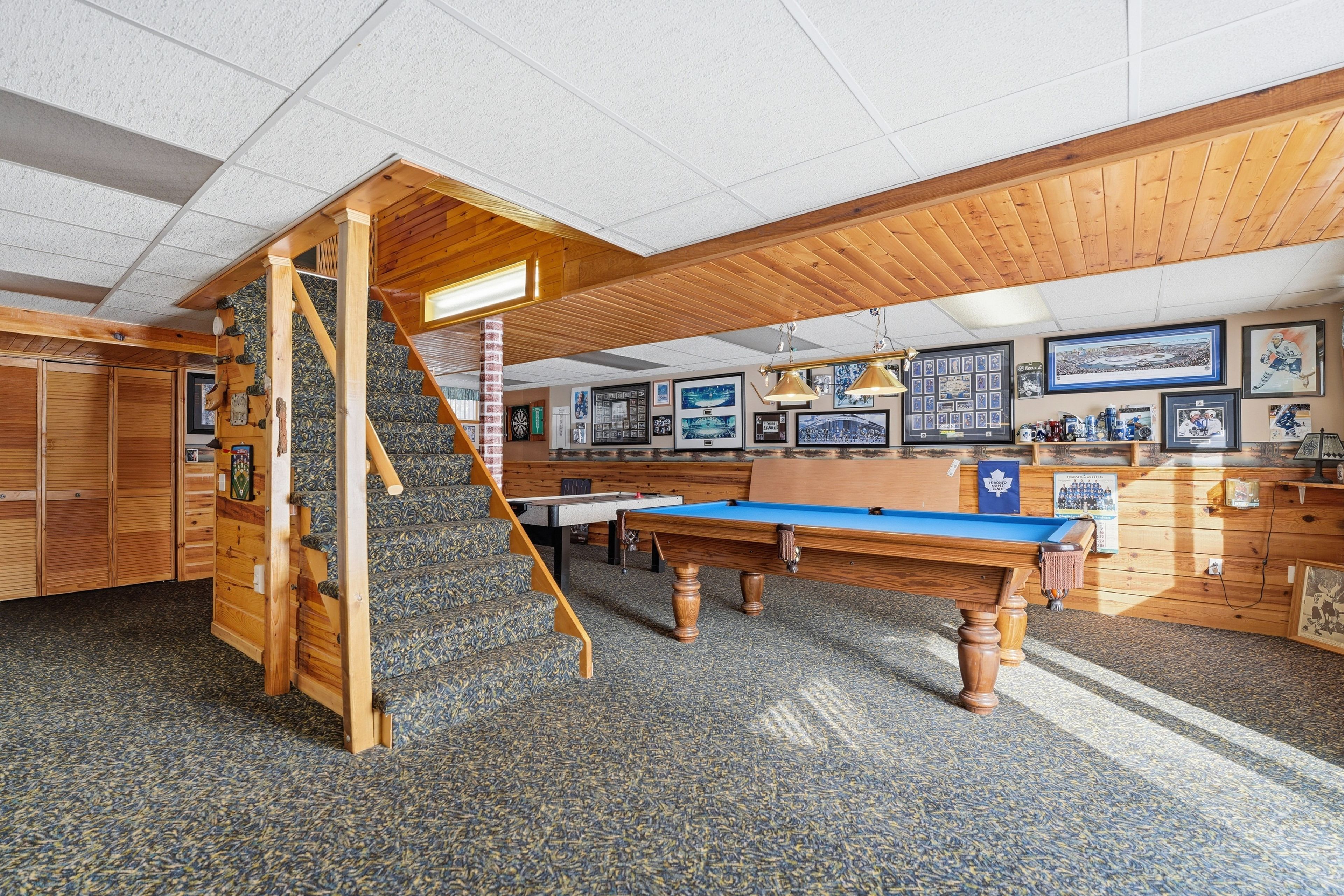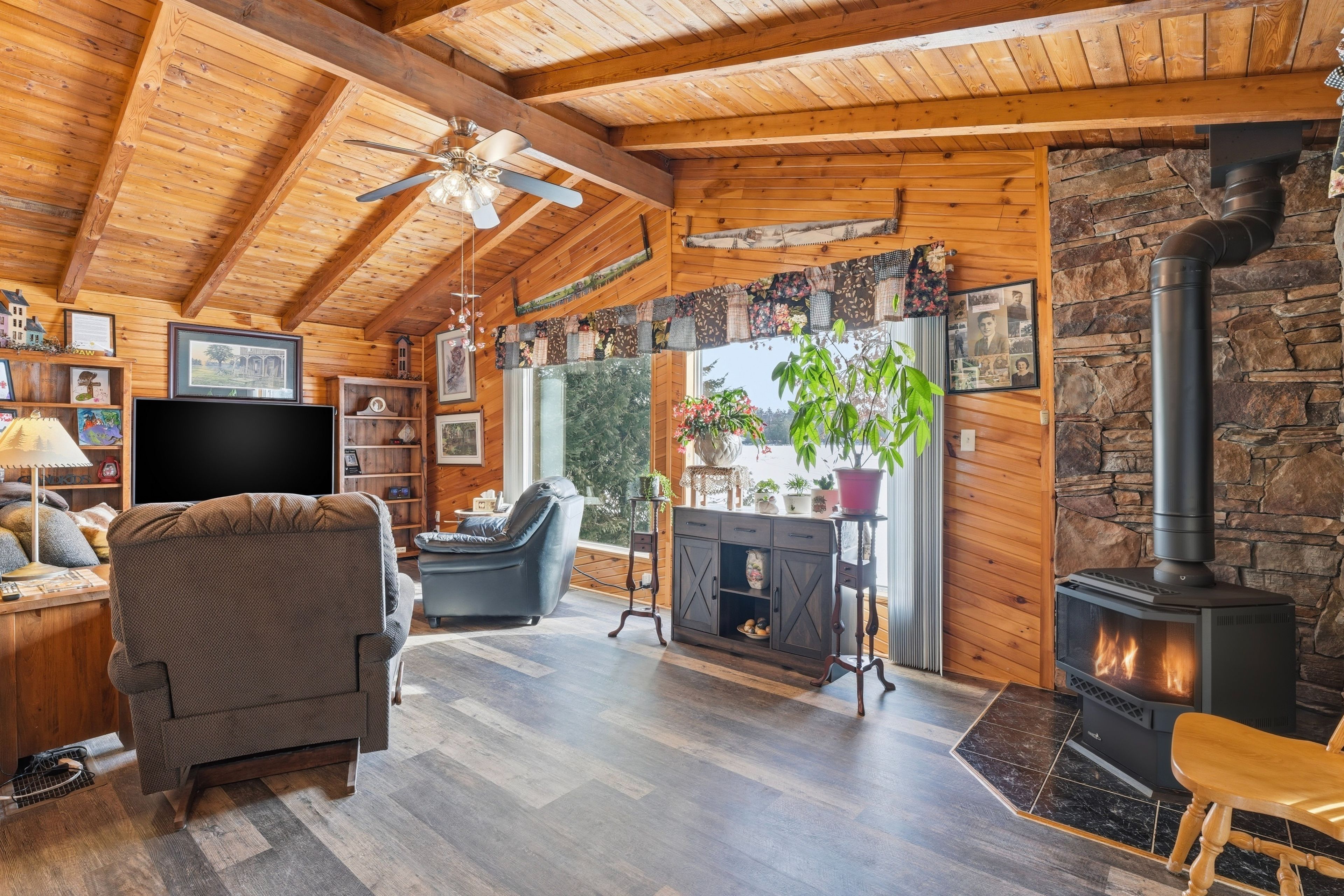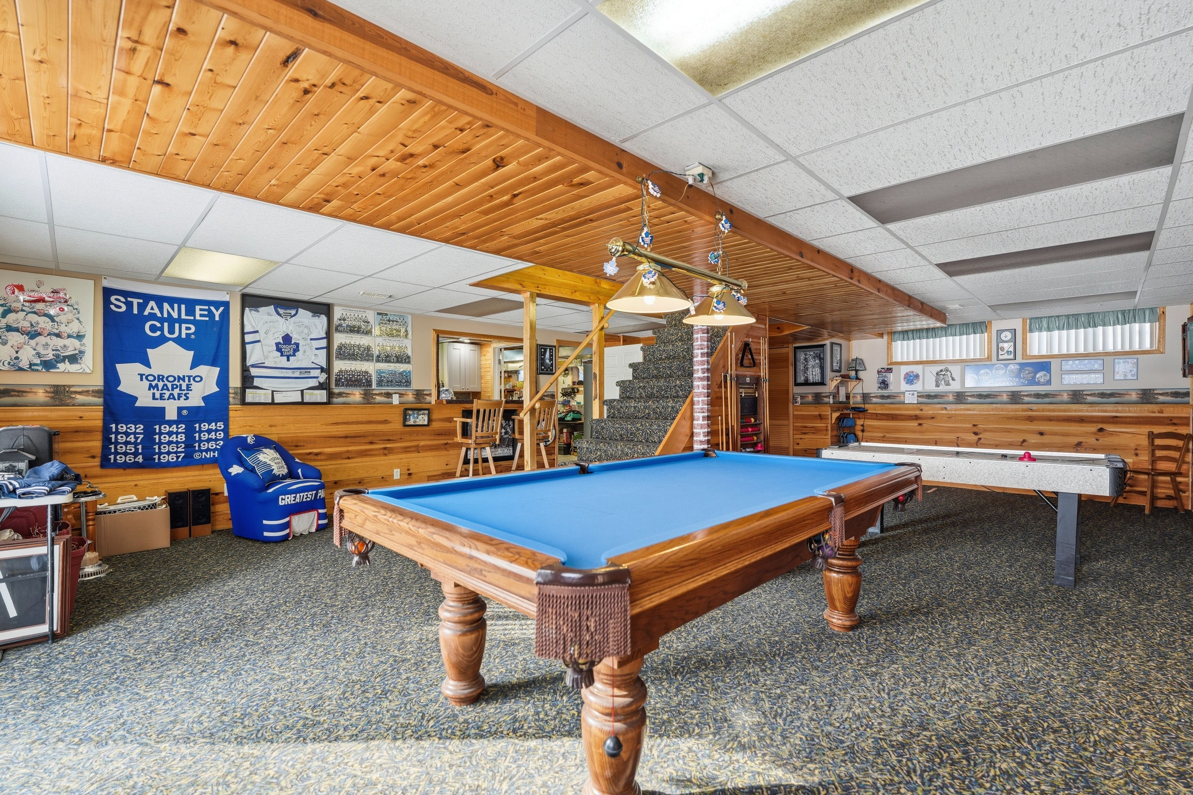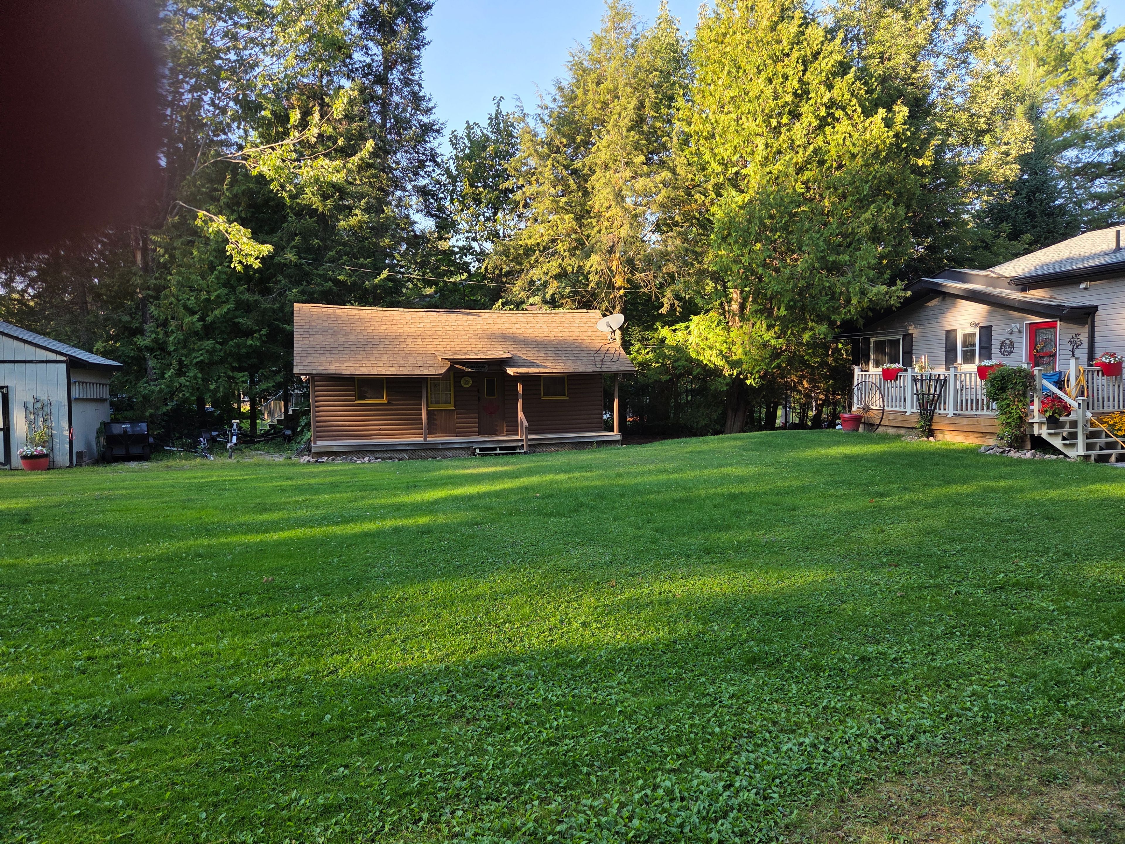 Welcome to waterfront living with quintessential cottage vibes on beautiful moore lake! Set on over half an acre lot with 100ft of sandy frontage, this inviting waterfront property offers the perfect blend of cottage charm and year-round functionality with plenty of space for family and guests. The main level features a bright open-concept kitchen and dining area that flows into the living room, where a cozy propane fireplace anchors the room and large windows showcase beautiful views of the lake. Just off the kitchen, the three-season sunroom provides the perfect place to relax and unwind while taking in the peaceful waterfront setting. This level also offers three bedrooms and a full bathroom. Off the kitchen, a heated breezeway connects the home to the oversized, insulated and heated double-car garage, offering exceptional space for vehicles, recreational toys, and storage. Above the garage, the spacious loft is ideal for hosting family and friends, complete with two additional bedrooms and a large living area. Step outside to the large deck with sleek glass railings, perfectly positioned to capture unobstructed lake views. The partially finished walkout basement creates a fantastic entertaining space with a wet bar, generous recreation area, and a massive workshop/utility room. Outside, the property continues to impress with ample parking, a large bunkie (sleeps up to 10), multiple sheds, concrete patio, large deck, 2 docks and plenty of yard space to enjoy the outdoors. Whether you're looking for a year-round home or the ultimate cottage retreat, this moore lake property offers space, comfort, and classic waterfront charm