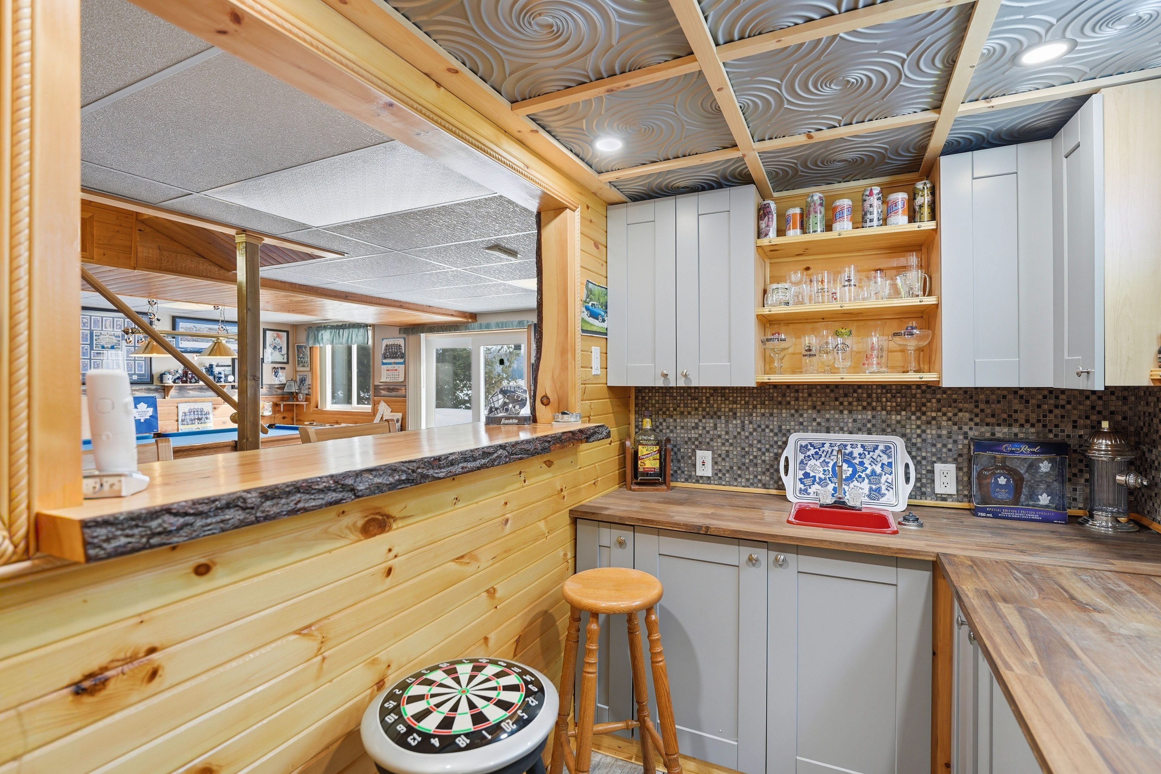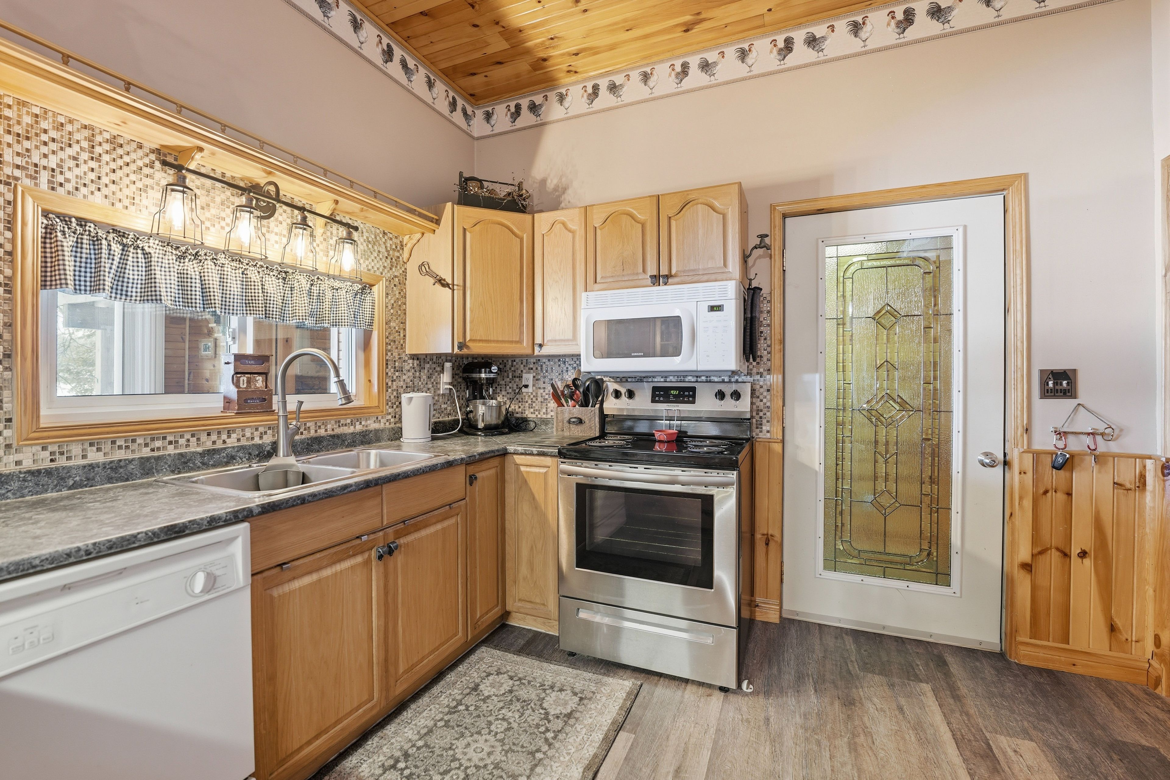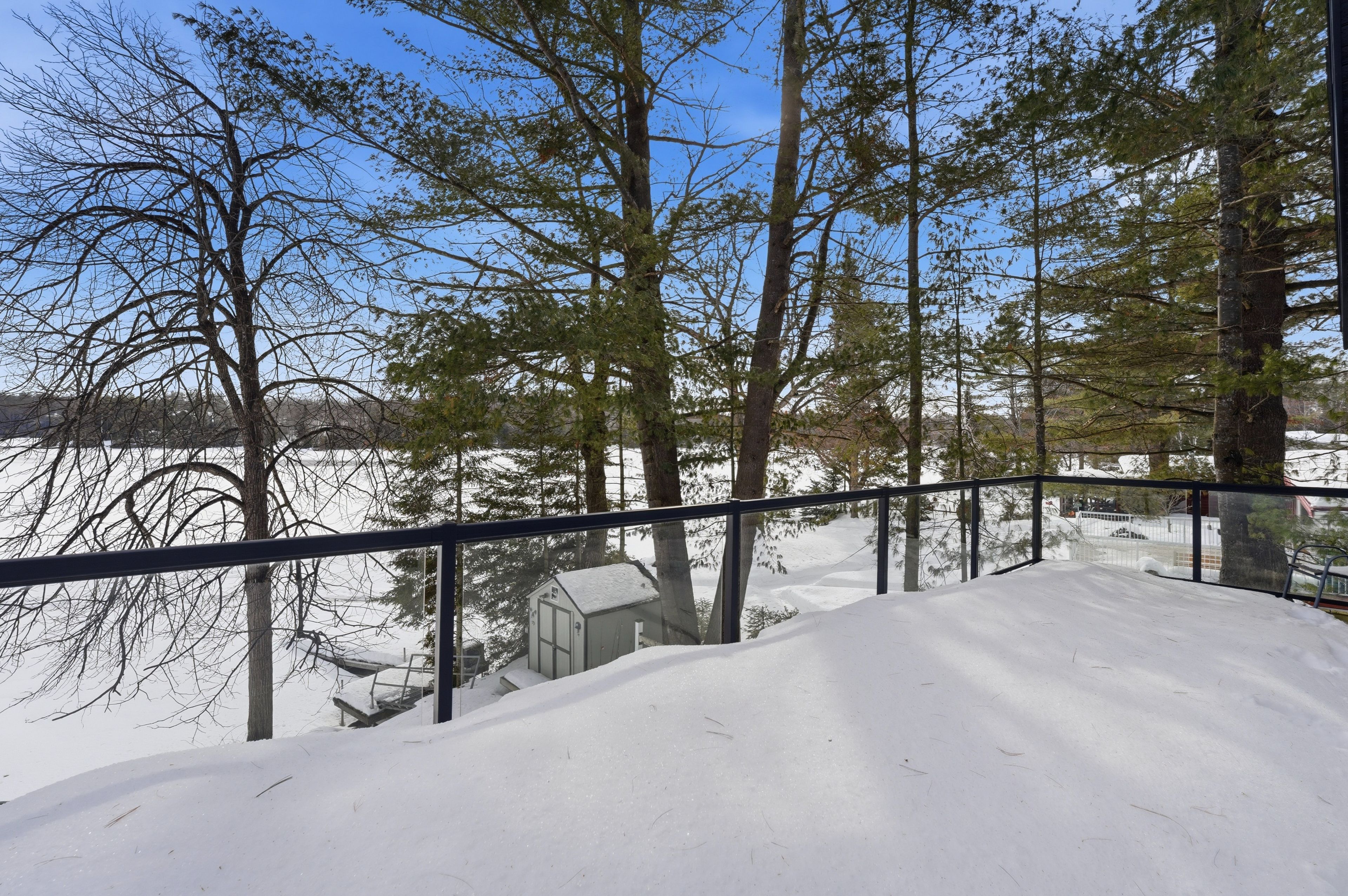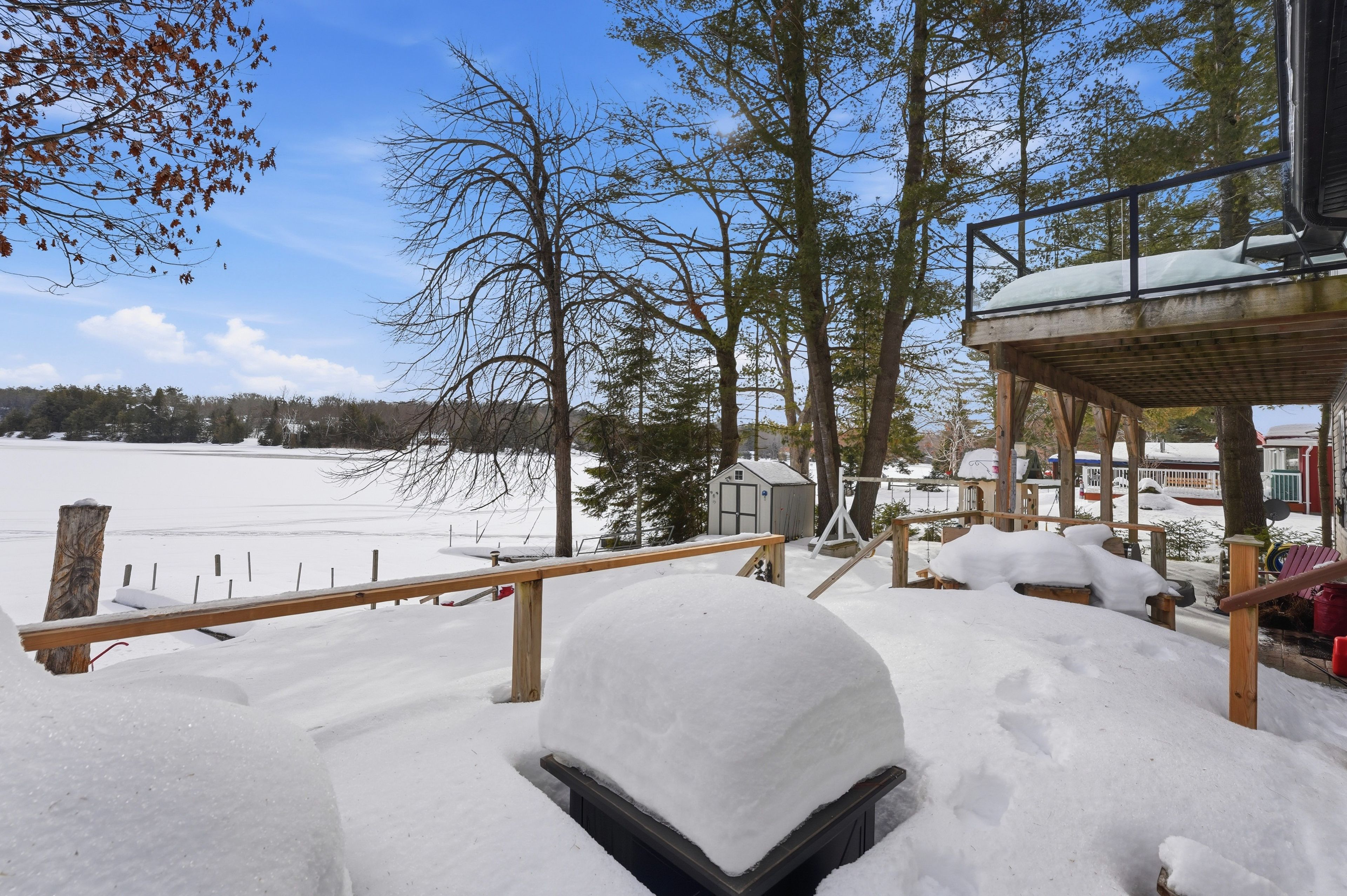 Welcome to waterfront living with quintessential cottage vibes on beautiful moore lake! Set on over half an acre lot with 100ft of sandy frontage, this inviting waterfront property offers the perfect blend of cottage charm and year-round functionality with plenty of space for family and guests. The main level features a bright open-concept kitchen and dining area that flows into the living room, where a cozy propane fireplace anchors the room and large windows showcase beautiful views of the lake. Just off the kitchen, the three-season sunroom provides the perfect place to relax and unwind while taking in the peaceful waterfront setting. This level also offers three bedrooms and a full bathroom. Off the kitchen, a heated breezeway connects the home to the oversized, insulated and heated double-car garage, offering exceptional space for vehicles, recreational toys, and storage. Above the garage, the spacious loft is ideal for hosting family and friends, complete with two additional bedrooms and a large living area. Step outside to the large deck with sleek glass railings, perfectly positioned to capture unobstructed lake views. The partially finished walkout basement creates a fantastic entertaining space with a wet bar, generous recreation area, and a massive workshop/utility room. Outside, the property continues to impress with ample parking, a large bunkie (sleeps up to 10), multiple sheds, concrete patio, large deck, 2 docks and plenty of yard space to enjoy the outdoors. Whether you're looking for a year-round home or the ultimate cottage retreat, this moore lake property offers space, comfort, and classic waterfront charm