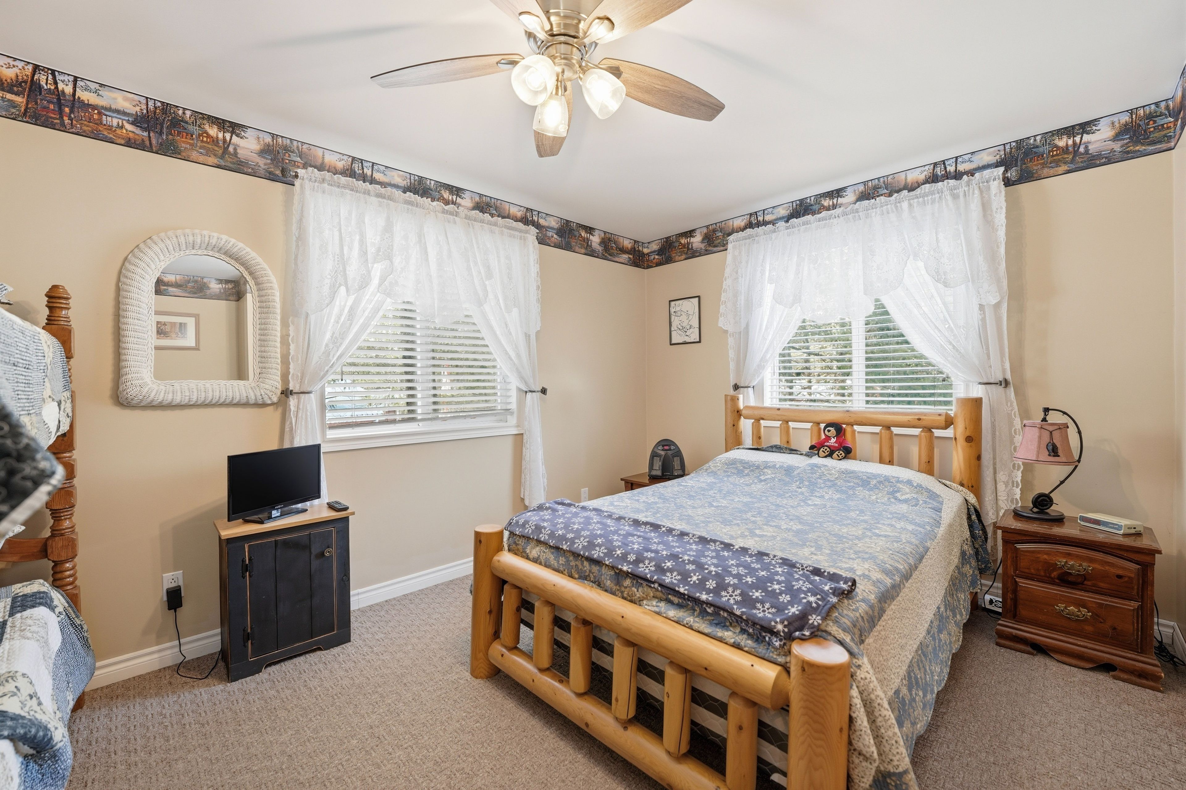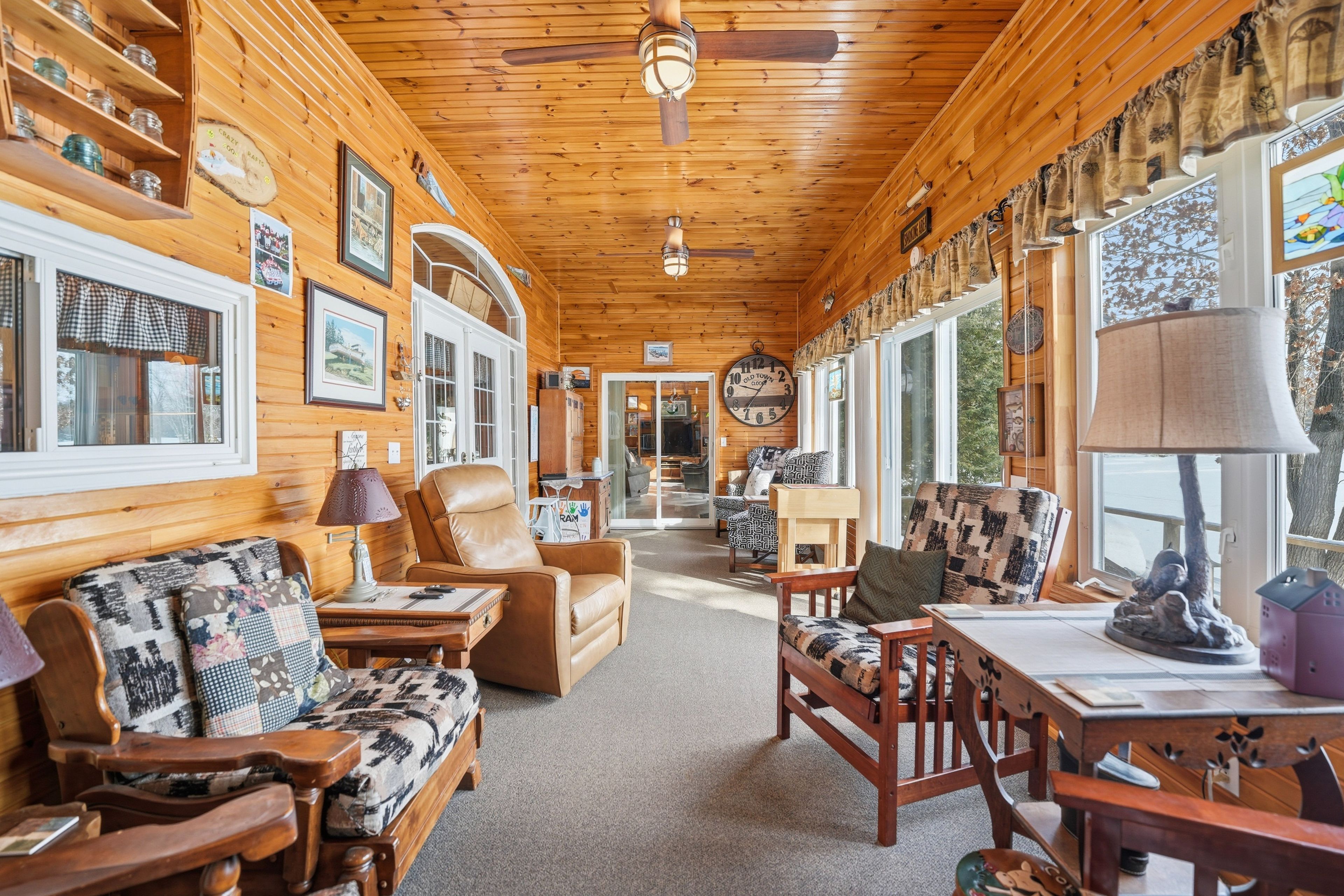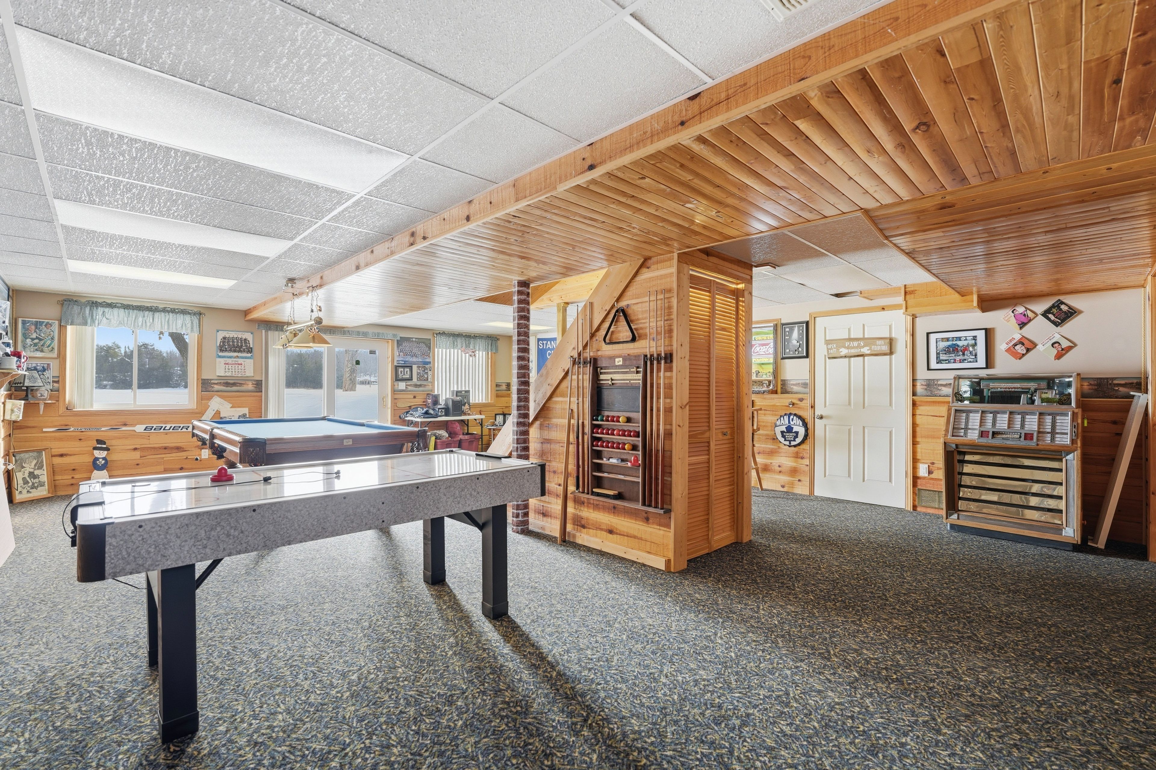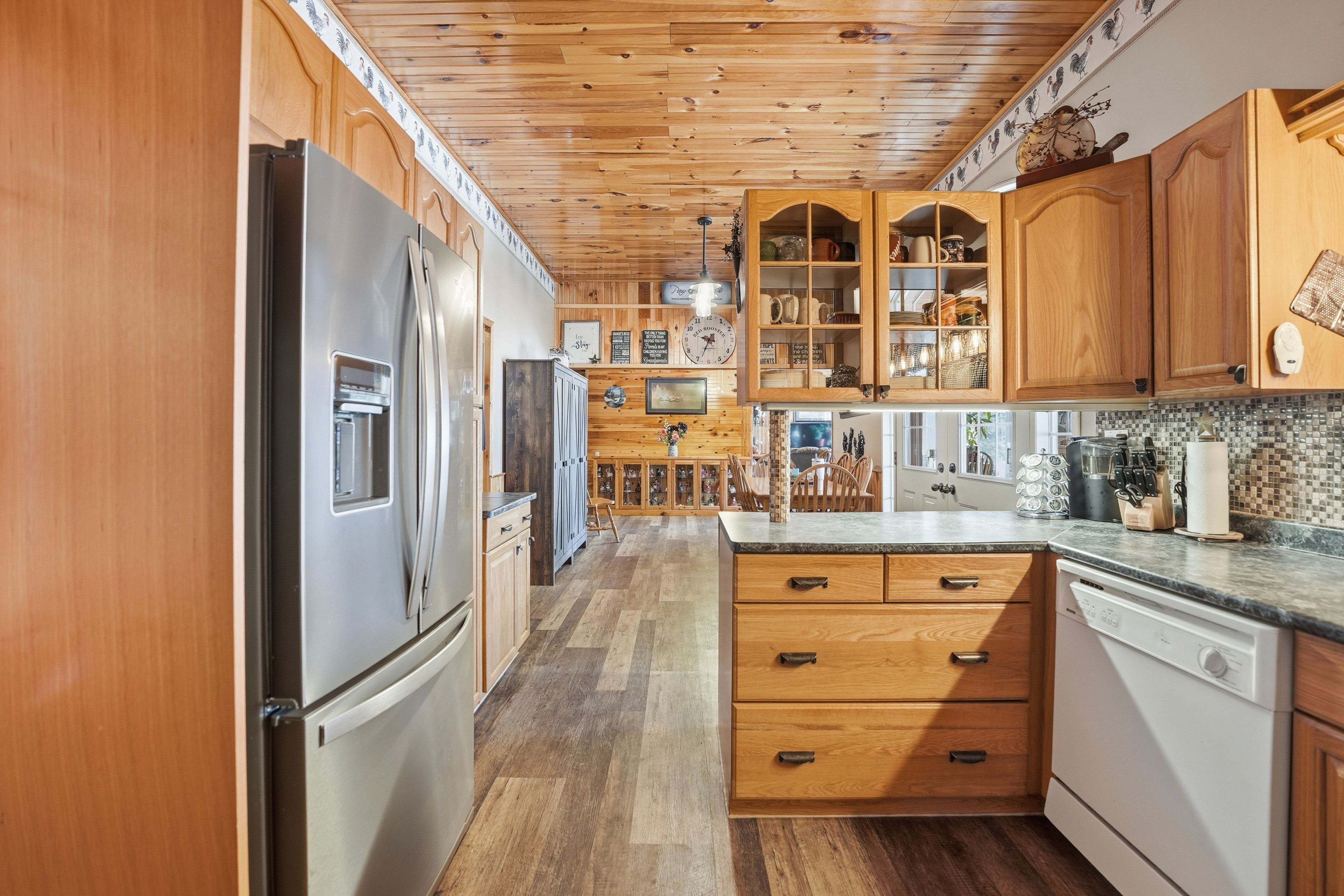 Welcome to waterfront living with quintessential cottage vibes on beautiful moore lake! Set on over half an acre lot with 100ft of sandy frontage, this inviting waterfront property offers the perfect blend of cottage charm and year-round functionality with plenty of space for family and guests. The main level features a bright open-concept kitchen and dining area that flows into the living room, where a cozy propane fireplace anchors the room and large windows showcase beautiful views of the lake. Just off the kitchen, the three-season sunroom provides the perfect place to relax and unwind while taking in the peaceful waterfront setting. This level also offers three bedrooms and a full bathroom. Off the kitchen, a heated breezeway connects the home to the oversized, insulated and heated double-car garage, offering exceptional space for vehicles, recreational toys, and storage. Above the garage, the spacious loft is ideal for hosting family and friends, complete with two additional bedrooms and a large living area. Step outside to the large deck with sleek glass railings, perfectly positioned to capture unobstructed lake views. The partially finished walkout basement creates a fantastic entertaining space with a wet bar, generous recreation area, and a massive workshop/utility room. Outside, the property continues to impress with ample parking, a large bunkie (sleeps up to 10), multiple sheds, concrete patio, large deck, 2 docks and plenty of yard space to enjoy the outdoors. Whether you're looking for a year-round home or the ultimate cottage retreat, this moore lake property offers space, comfort, and classic waterfront charm