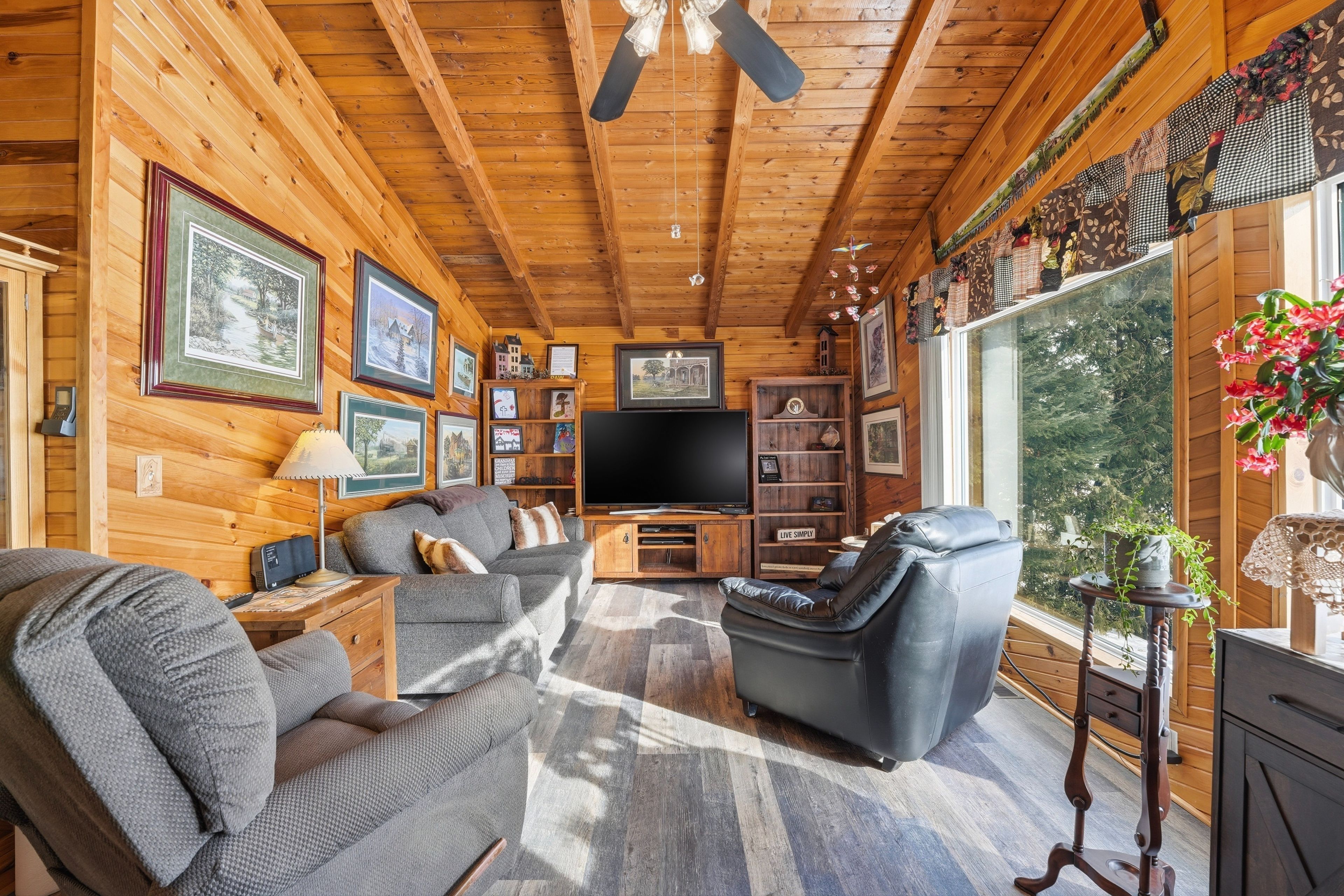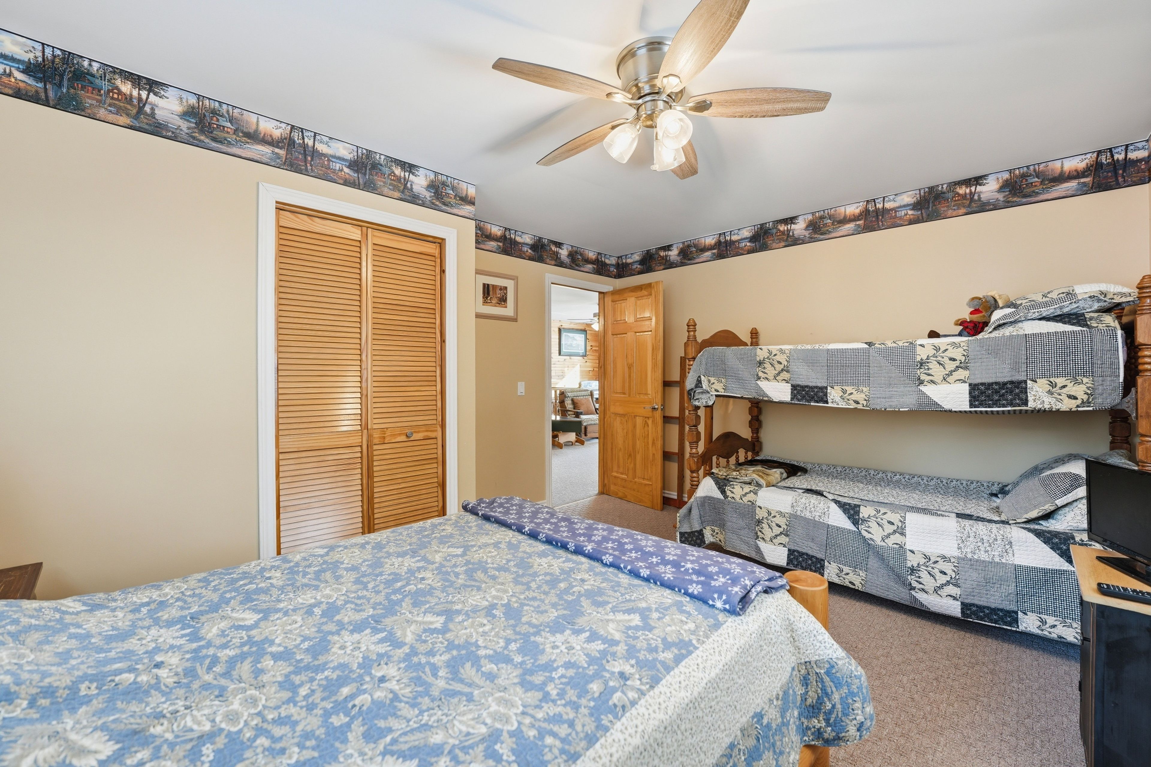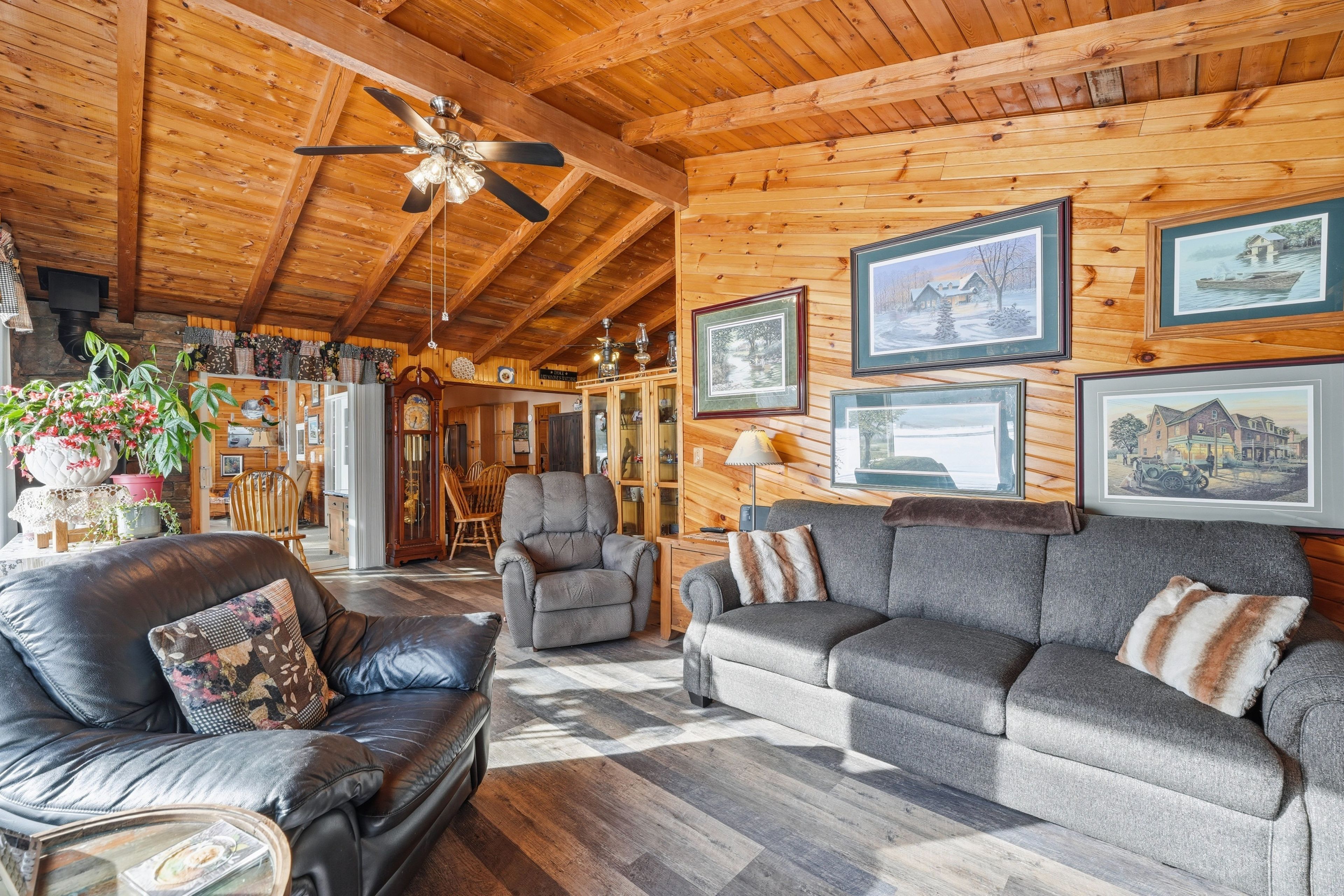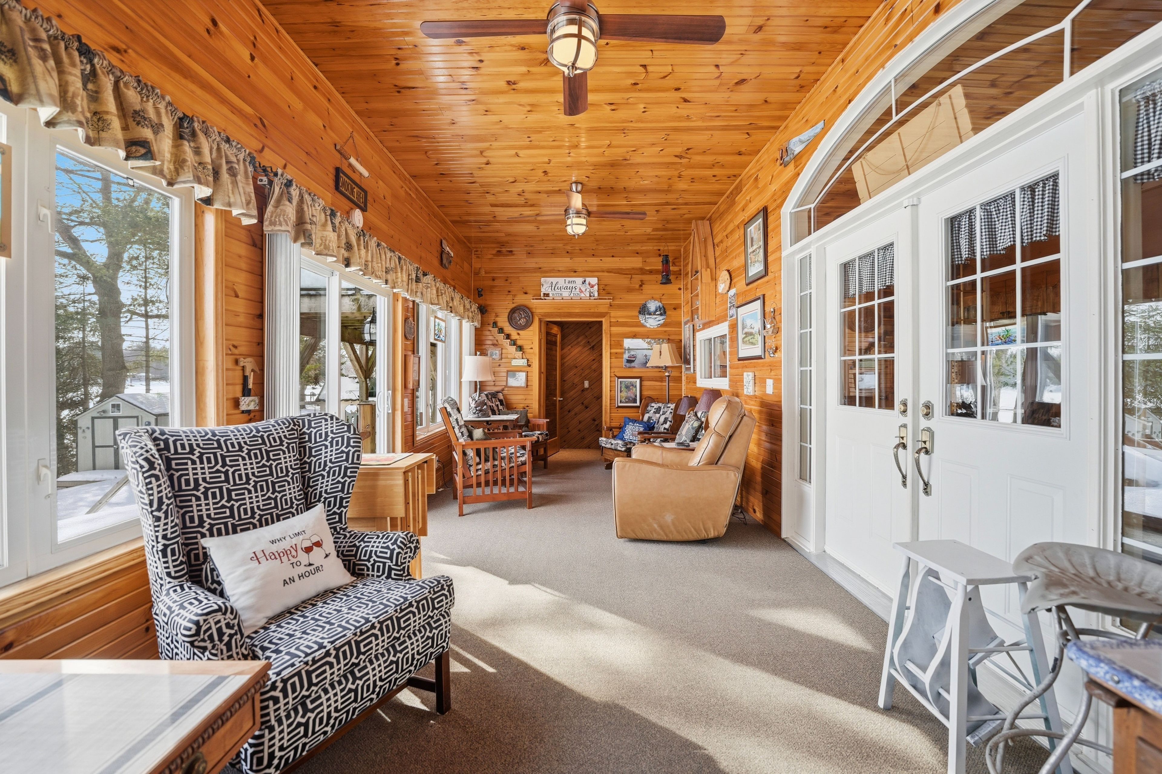 Welcome to waterfront living with quintessential cottage vibes on beautiful moore lake! Set on over half an acre lot with 100ft of sandy frontage, this inviting waterfront property offers the perfect blend of cottage charm and year-round functionality with plenty of space for family and guests. The main level features a bright open-concept kitchen and dining area that flows into the living room, where a cozy propane fireplace anchors the room and large windows showcase beautiful views of the lake. Just off the kitchen, the three-season sunroom provides the perfect place to relax and unwind while taking in the peaceful waterfront setting. This level also offers three bedrooms and a full bathroom. Off the kitchen, a heated breezeway connects the home to the oversized, insulated and heated double-car garage, offering exceptional space for vehicles, recreational toys, and storage. Above the garage, the spacious loft is ideal for hosting family and friends, complete with two additional bedrooms and a large living area. Step outside to the large deck with sleek glass railings, perfectly positioned to capture unobstructed lake views. The partially finished walkout basement creates a fantastic entertaining space with a wet bar, generous recreation area, and a massive workshop/utility room. Outside, the property continues to impress with ample parking, a large bunkie (sleeps up to 10), multiple sheds, concrete patio, large deck, 2 docks and plenty of yard space to enjoy the outdoors. Whether you're looking for a year-round home or the ultimate cottage retreat, this moore lake property offers space, comfort, and classic waterfront charm