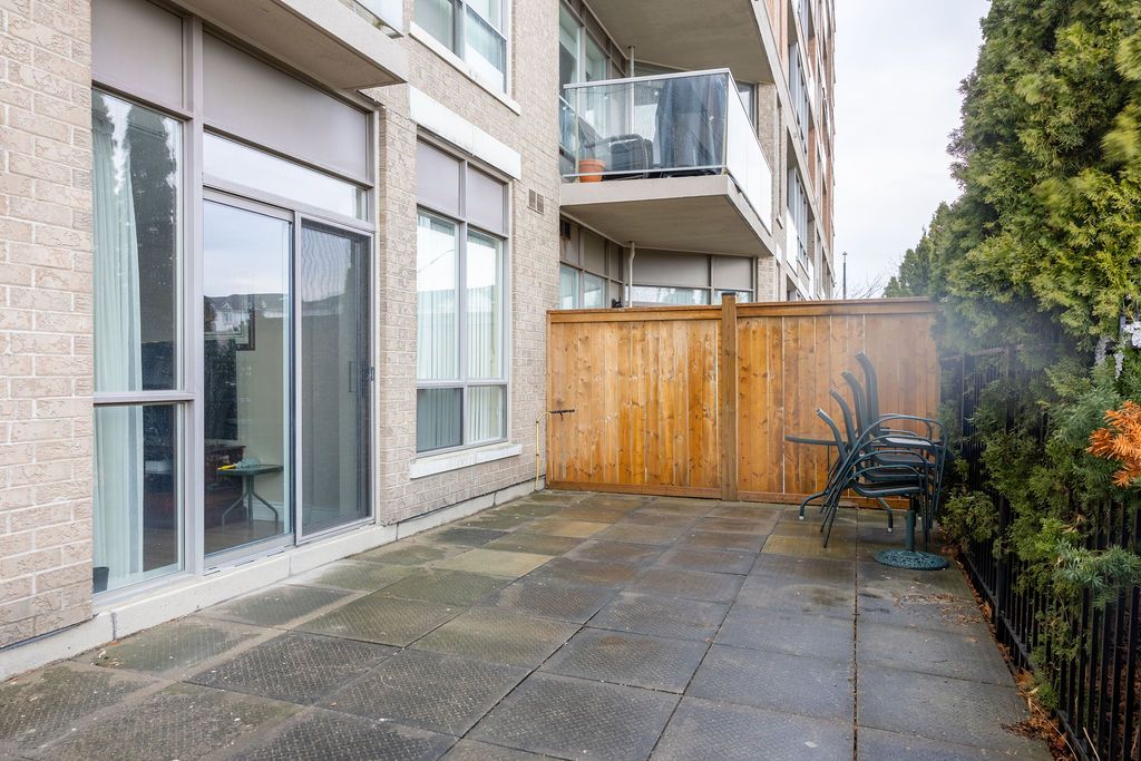 Welcome to 104-1150 parkwest place in mississauga, where style, comfort, and convenience come together in this beautifully appointed 1+1 bedroom, 2 bathroom condo available for lease. Engineered hardwood floors flow seamlessly throughout, complemented by ceramic tile in the kitchen and bathrooms. The bright and functional kitchen offers ample cupboard space, while the open-concept living and dining area leads to an oversized ground-floor terrace facing the park, complete with a gas line for bbqs-perfect for morning coffee or summer entertaining. The sun-filled primary bedroom features a generous walk-in closet and a large window that fills the space with natural light. The versatile den is ideal for a home office, guest space, or additional living area. Enjoy the added convenience of one underground parking space. Residents have access to an impressive range of building amenities, including a fully equipped gym, sauna, party room, library, meeting rooms, and 24-hour concierge and security. Ideally located just minutes from the qew and go train for easy commuting, and within walking distance to parks, top-rated schools, and the waterfront. A fantastic opportunity to lease a well-appointed condo in a prime location-don't miss your chance to call it home.