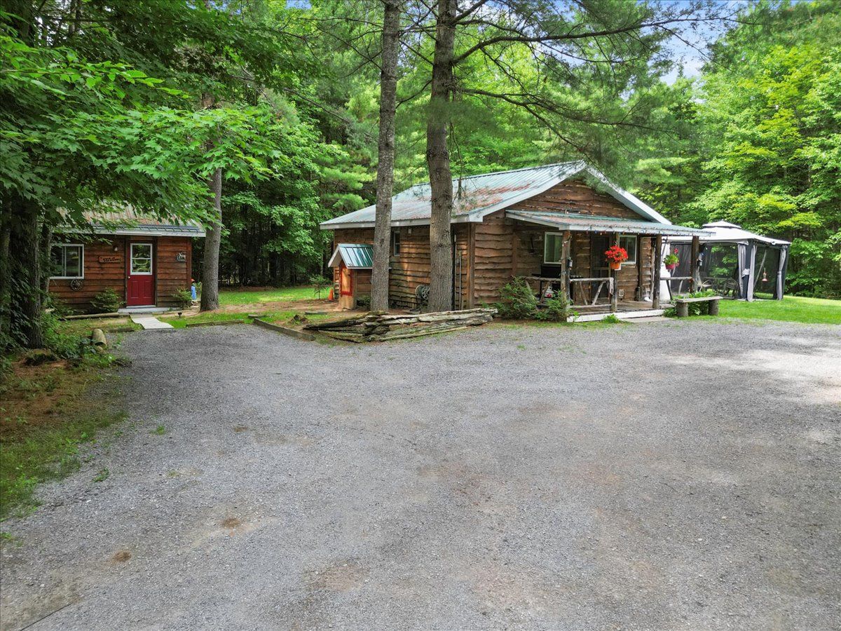 ***motivated sellers*** have you ever gone camping in a provincial park and thought - oh my goodness - i could live here??? That is what living at this property would feel like every day, with a few differences:1. Ultimate privacy. 2. No need to tent it when you have 2 cozy cabin like homes + a bunkie on the property! And you will love the miles of manicured walking trails with beautiful rest stops and vistas to enjoy on your hike or while cross-country skiing! Tucked away in a serene woodland setting, this 26-acre property offers a peaceful escape surrounded by nature. Wander along winding trails beneath mature trees, take in quiet pond views, and enjoy the sense of seclusion that only a forested retreat can provide. Whether you're seeking a place to unwind, explore, or create a multi-purpose homestead, this property delivers space, flexibility, and privacy in equal measure. The main residence is warm and inviting, with a functional layout that includes a generous mudroom, main floor laundry, and access to a large back deck, ideal for outdoor dining or quiet evenings under the stars. A second, self-contained dwelling on-site has its own hydro service, water source, and septic system. Set up as a one-bedroom unit, it could easily be adapted to include a second bedroom, currently rented as a long-term rental for $1,800 per month plus hydro. Also on the property is a detached outbuilding with heat, hydro, and a 2-piece bathroom. It is currently used as a hair salon and workshop, perfect for creative projects or a home-based business, but it could also make a great bunkie for guests. With two wells, two septic systems, and frontage on a year-round road, the property is both practical and full of potential. There's even the possibility for future severance of the land. Located in the heart of the land o' lakes region, this is a rare opportunity to enjoy quiet country living with space to grow and explore.