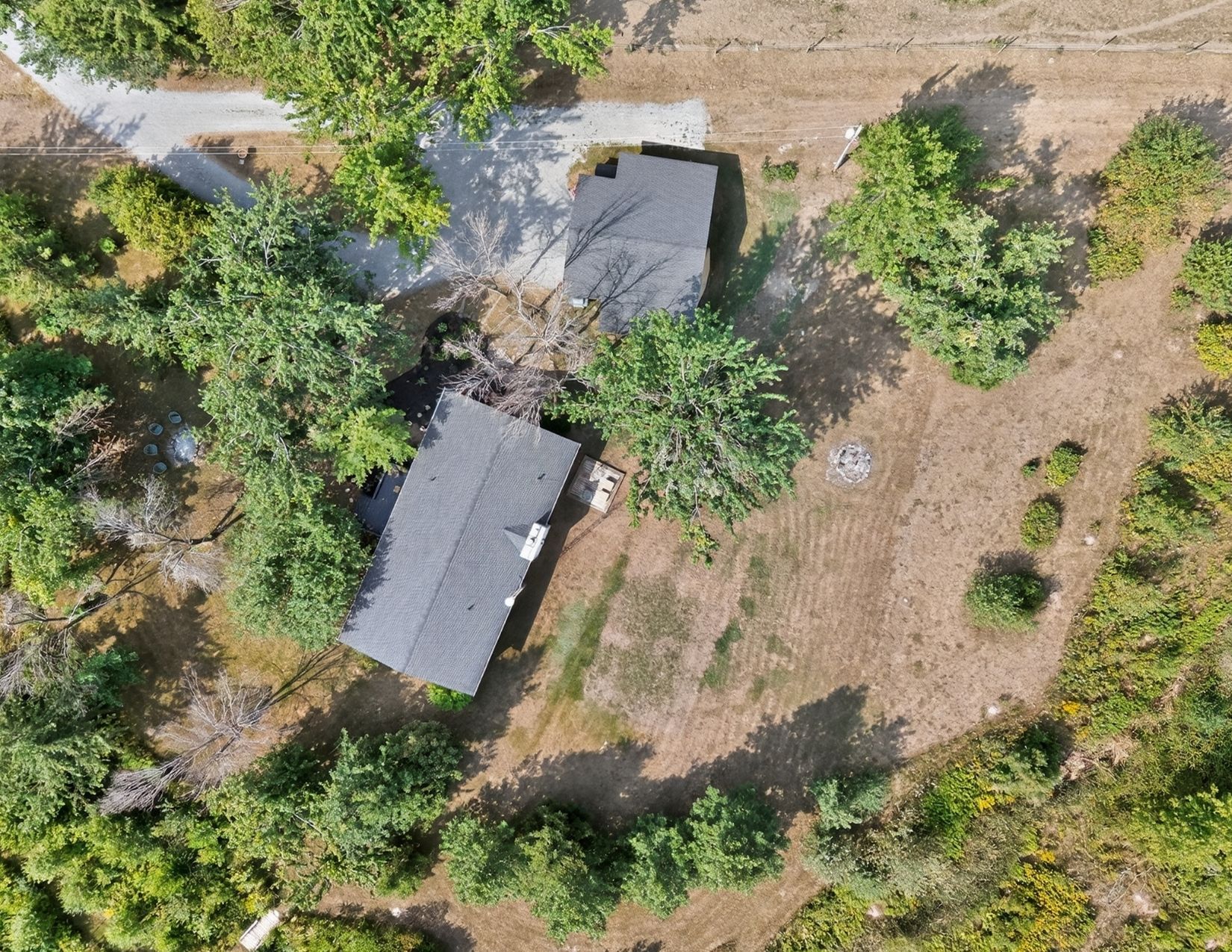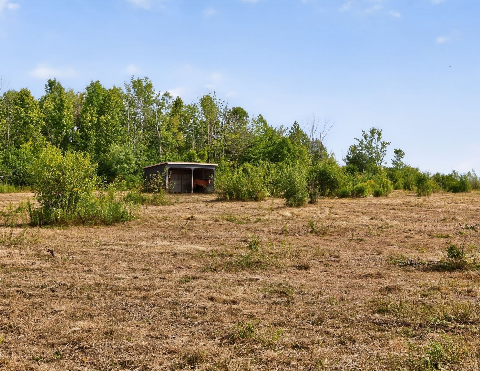 • Equestrian amenities include paddocks, a run-in shed, and trails.