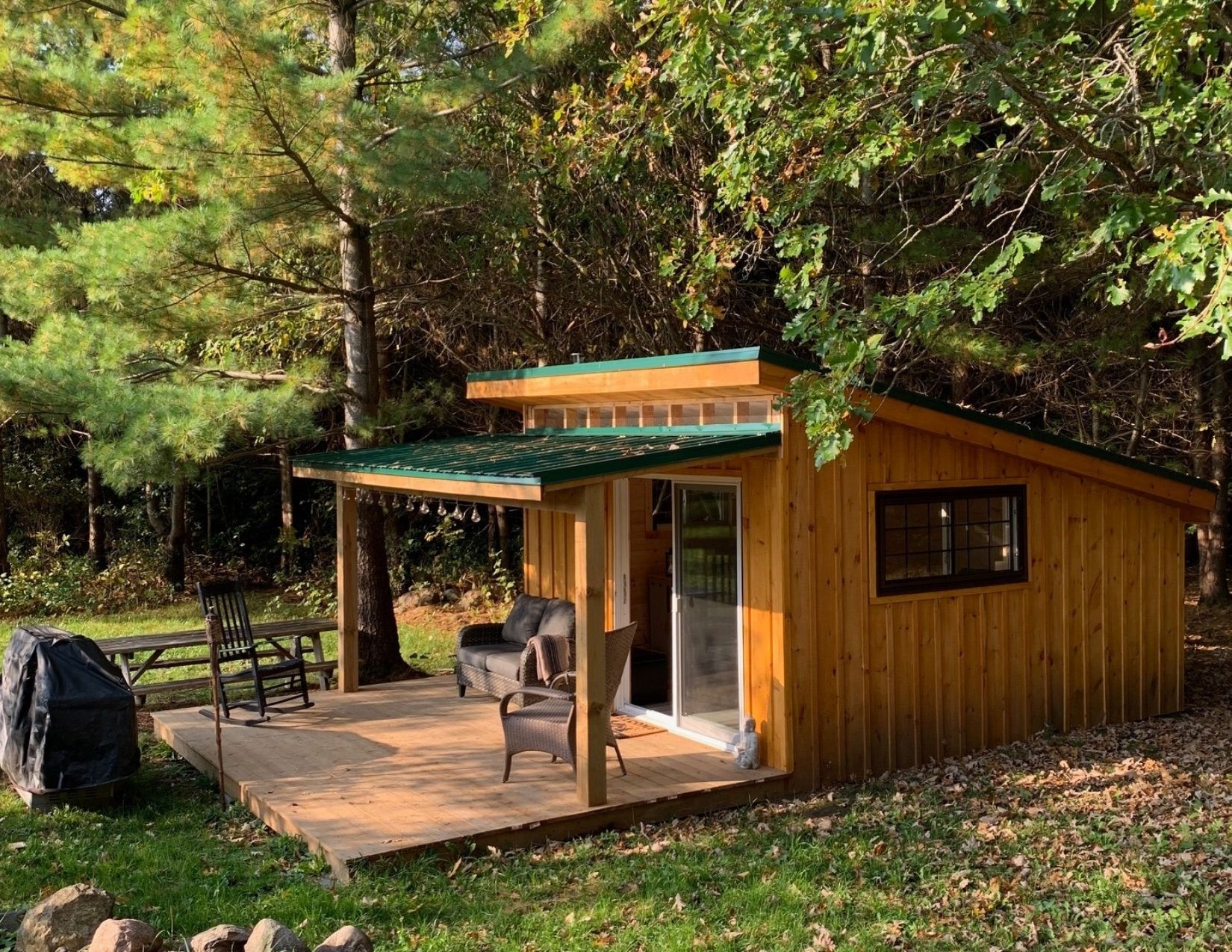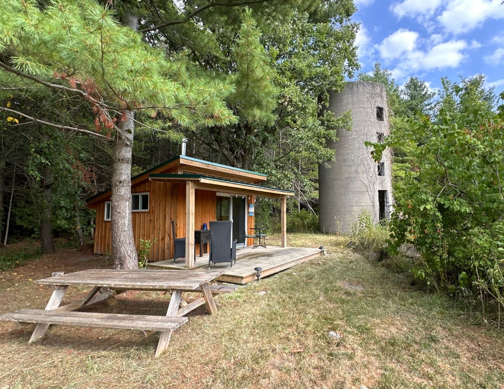• Self-contained cabin offers expansion possibilities and a rustic retreat.