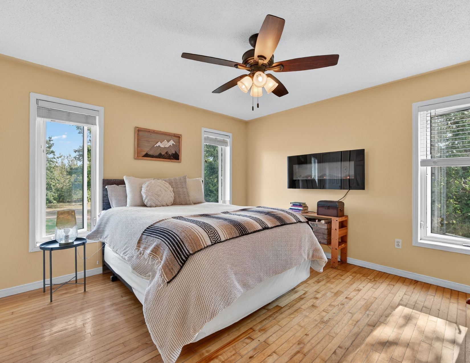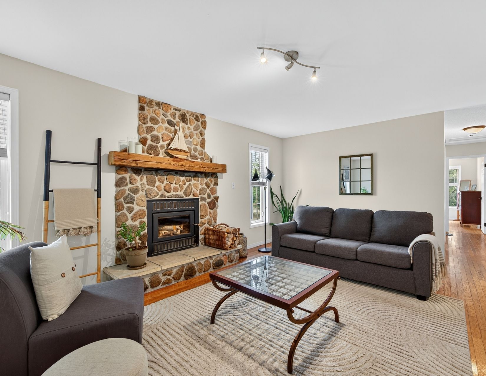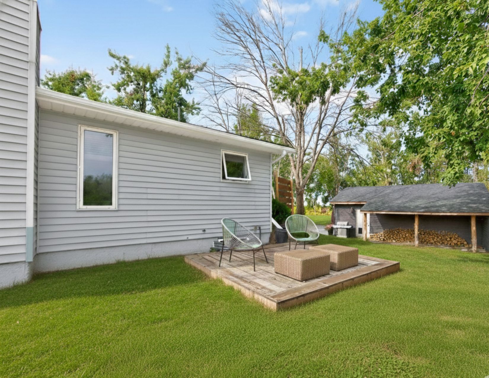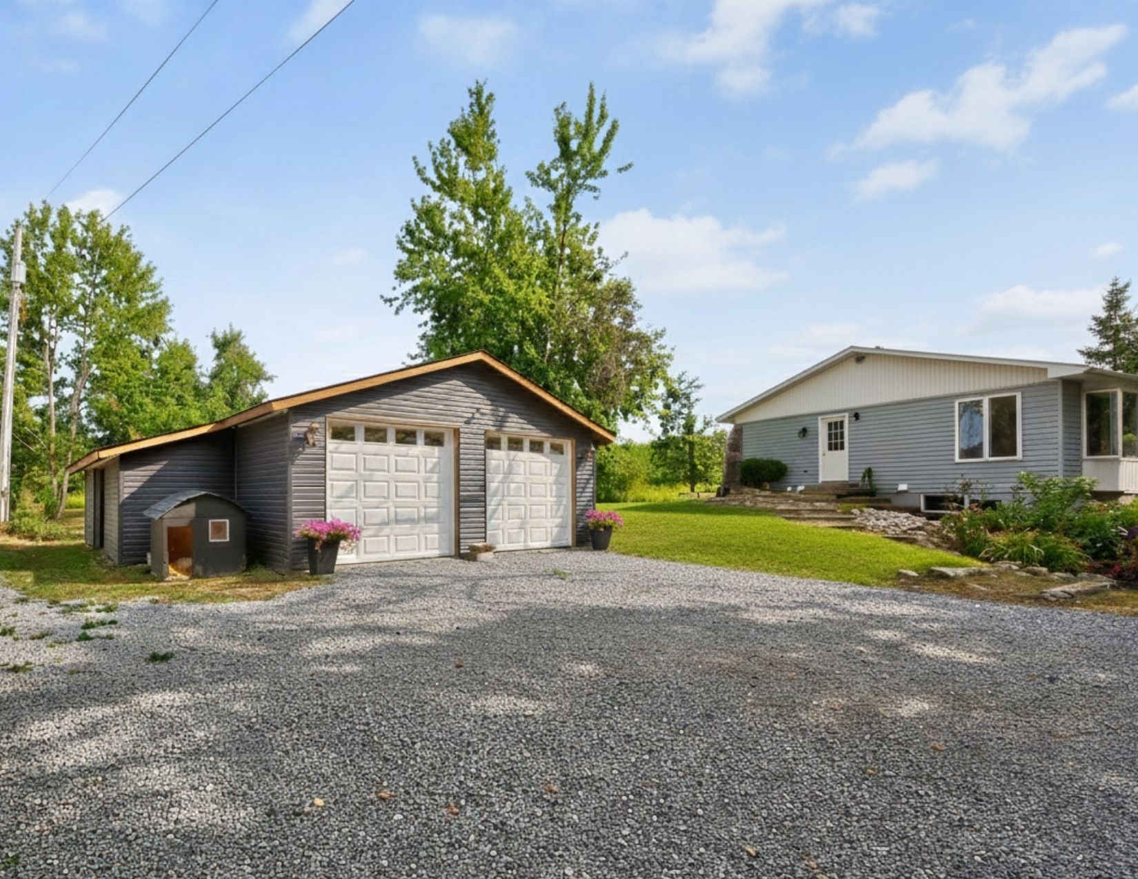 **escape to your private country retreat! Embrace unlimited potential on 100 sq acres in brechin, ideal for equestrian, tree, cattle, crop, hobby farming, eco-tourism + more. This charming 1,524 sf royal home bungalow, built in 1991, features a spacious open-concept gourmet kitchen with new appliances and a generous dining area overlooking beautifully landscaped gardens perfect for entertaining. The front foyer with a double closet and a convenient 2-piece powder room, ideal for farm life. Unwind in the living room by the stunning stone wood-burning fireplace, creating a cozy atmosphere. The main floor also includes three spacious bedrooms, each with closets and hardwood flooring. The private primary bedroom features a modern electric fireplace and 3 large windows showcasing the breathtaking farmland. The expansive 4-piece bathroom boasts a luxurious step-in shower, a custom stone vessel sink on a butcher block countertop, and a classic clawfoot tub. The basement, filled with natural light from above-grade windows, offers vast potential for work and recreation, including a finished office/bedroom with an electric fireplace. Step outside to enjoy the great outdoors! The oversized, insulated, heated two-car garage with 100 amp 4 breaker pony panel, perfect for all your tools and equipment. Equestrian enthusiasts will love the two paddocks, run in shed and round pen, while trails weave through the property for sustainable farming, trail rides, and hiking. A self-contained insulated cabin with a covered porch features a newly installed with high-efficiency wood stove, nestled beside the original farm silo and an operational hand pump well. This cabin allows for future expansion plans, as it can serve as a second dwelling. Benefit from the mftip (managed forest tax incentive program) for property tax savings. This property is a dream for those seeking a rural oasis close to lake simcoe and the trent severn without sacrificing city proximity to the gta.
