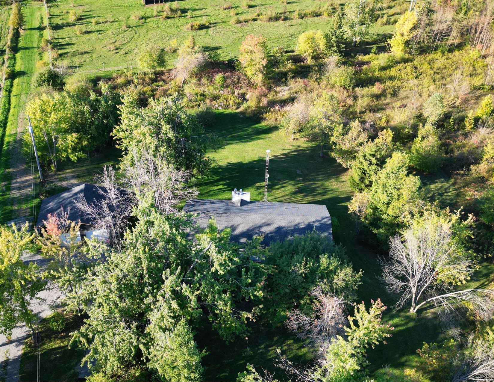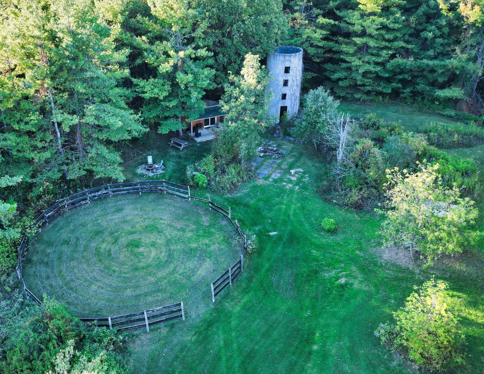 **escape to your private country retreat! Embrace unlimited potential on 100 sq acres in brechin, ideal for equestrian, tree, cattle, crop, hobby farming, eco-tourism + more. This charming 1,524 sf royal home bungalow, built in 1991, features a spacious open-concept gourmet kitchen with new appliances and a generous dining area overlooking beautifully landscaped gardens perfect for entertaining. The front foyer with a double closet and a convenient 2-piece powder room, ideal for farm life. Unwind in the living room by the stunning stone wood-burning fireplace, creating a cozy atmosphere. The main floor also includes three spacious bedrooms, each with closets and hardwood flooring. The private primary bedroom features a modern electric fireplace and 3 large windows showcasing the breathtaking farmland. The expansive 4-piece bathroom boasts a luxurious step-in shower, a custom stone vessel sink on a butcher block countertop, and a classic clawfoot tub. The basement, filled with natural light from above-grade windows, offers vast potential for work and recreation, including a finished office/bedroom with an electric fireplace. Step outside to enjoy the great outdoors! The oversized, insulated, heated two-car garage with 100 amp 4 breaker pony panel, perfect for all your tools and equipment. Equestrian enthusiasts will love the two paddocks, run in shed and round pen, while trails weave through the property for sustainable farming, trail rides, and hiking. A self-contained insulated cabin with a covered porch features a newly installed with high-efficiency wood stove, nestled beside the original farm silo and an operational hand pump well. This cabin allows for future expansion plans, as it can serve as a second dwelling. Benefit from the mftip (managed forest tax incentive program) for property tax savings. This property is a dream for those seeking a rural oasis close to lake simcoe and the trent severn without sacrificing city proximity to the gta.