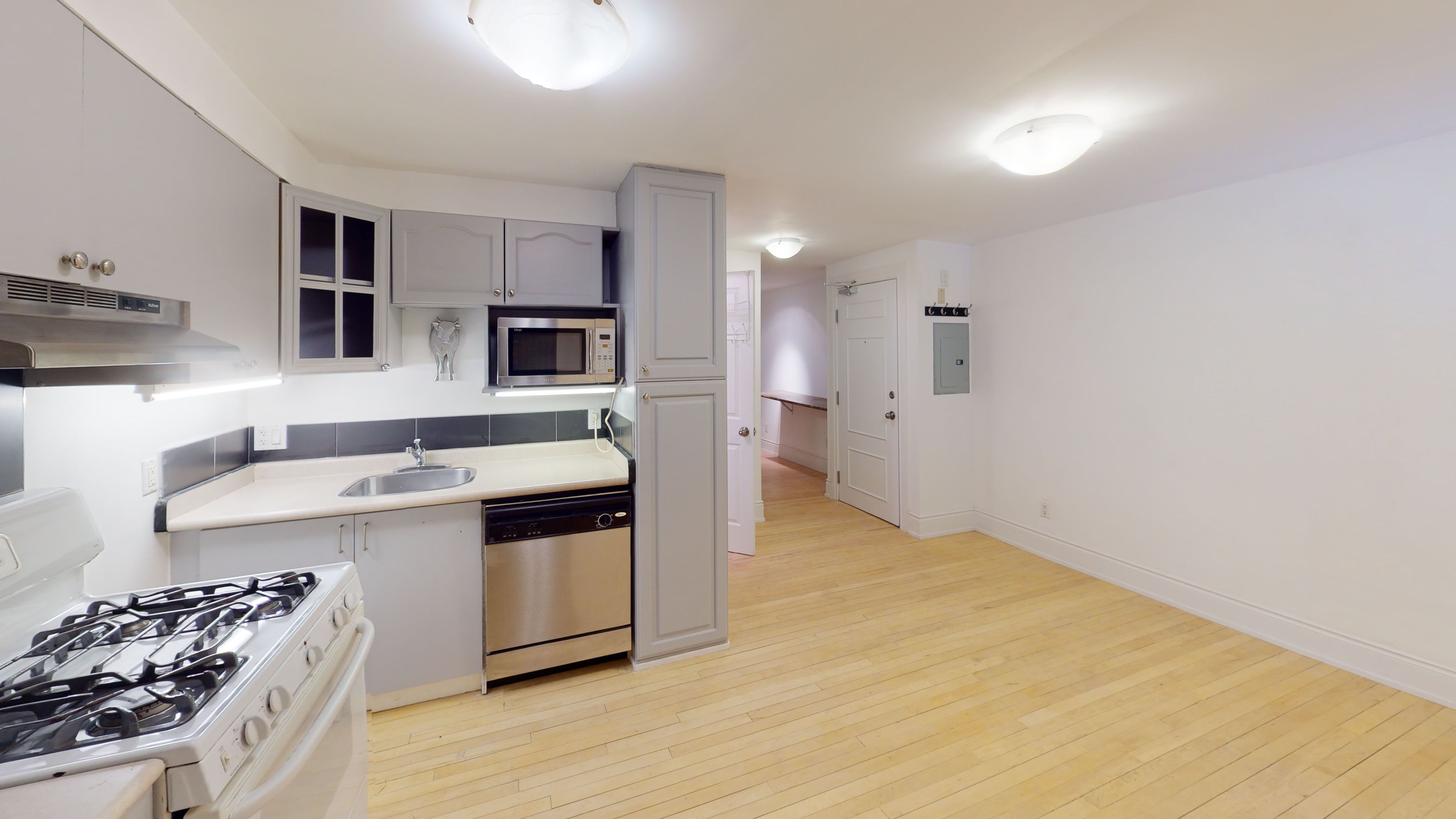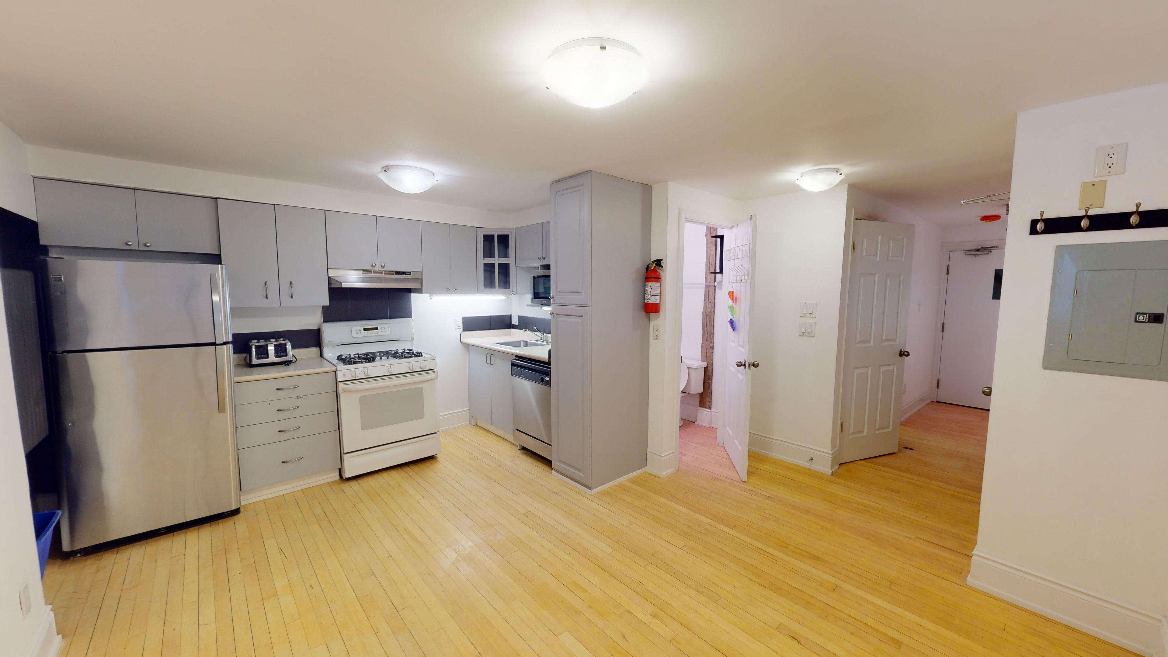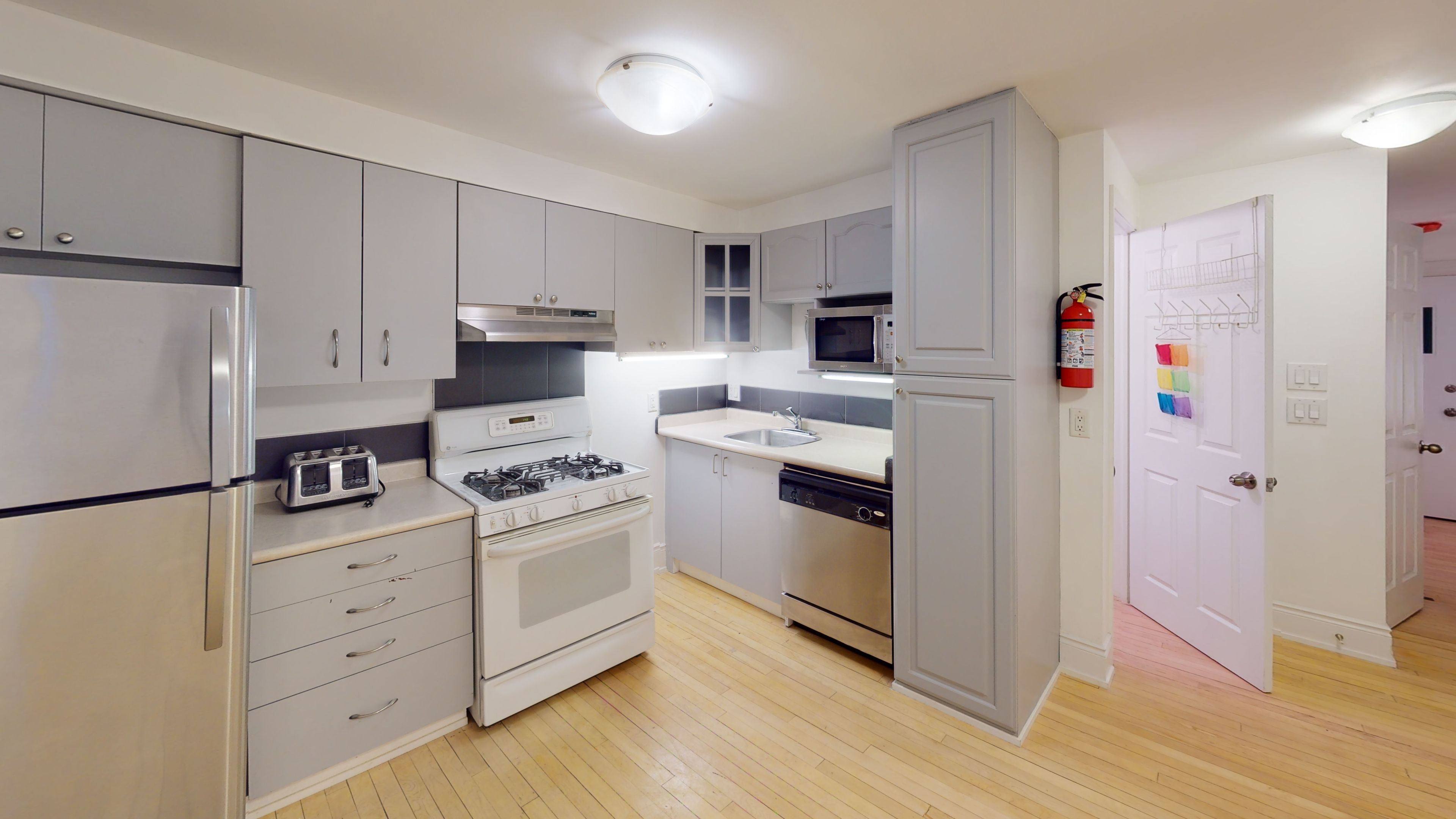 Welcome to the gerrard flats! This beautiful one-bedroom located on the main floor of a boutique building. Features an open-concept kitchen and living area with full-sized appliances, including a gas stove, dishwasher, and built-in microwave. Situated in a vibrant, walkable neighborhood, steps to grocery stores, cafés, restaurants, and local shops along gerrard street east. Close to greenwood and monarch parks, with the beaches just a short distance away for waterfront trails and lakefront enjoyment. Coin-operated laundry on-site and shared backyard available.