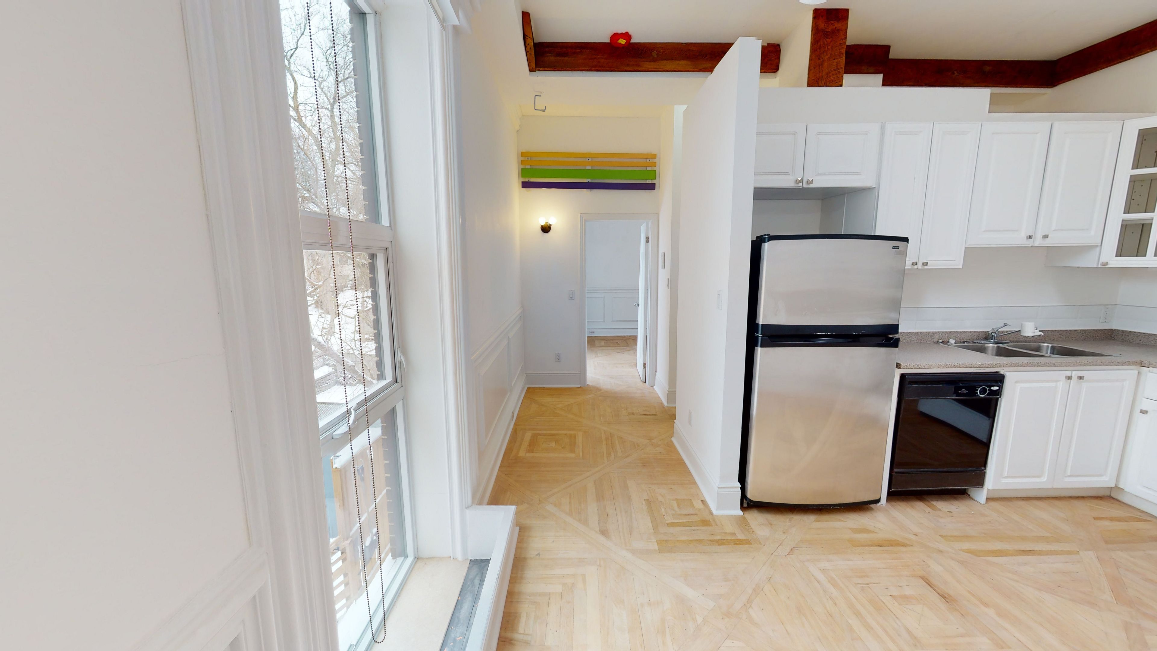 Step inside the gerrard flats! Bright and modern one-bedroom + media suite located on the top floor of a boutique building in toronto's vibrant east end, just moments from the beaches. This spacious and thoughtfully designed unit features soaring ceilings, warm wood floors, and oversized windows that flood the home with natural light. The open-concept living and kitchen area is perfect for both everyday living and entertaining, complete with a gas stove, fridge, dishwasher, and microwave. A versatile media space offers an ideal work-from-home setup, reading nook, or additional storage area. Tenants enjoy the convenience of on-site coin-operated laundry and access to a shared backyard. Located steps from local shops, cafés, transit, and everyday essentials, this home offers the perfect blend of urban convenience and neighbourhood charm.