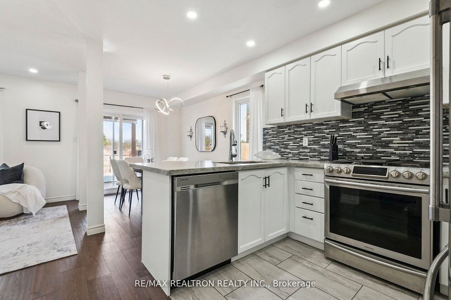 Experience refined living in this elegant detached residence tucked away on a serene dead end street in pickering's prestigious liverpool community. Thoughtfully designed and beautifully appointed, this home offers a perfect blend of sophistication and comfort. The main floor boasts a formal living room and a spacious open concept family room, ideal for both everyday living stylish entertaining. The kitchen is a chef's delight, featuring quartz countertops, upgraded stainless steel appliances, a breakfast bar, and walk out access to a generous deck overlooking open green space ideal for privacy and a convenient powder room. Hardwood flooring and designer light fixtures add upscale charm throughout. Upstairs, the luxurious primary suite offers two closets including a large walk in and a spa like 4 piece ensuite with a jetted tub and a separate glass shower. Two additional bedrooms are bright and well sized, sharing a sleep 4 piece bathroom. A dedicated office/den provides a quiet space for work or study. The finished basement, with its own separate entrance, is complete with a full kitchen, a 3 piece bathroom and a spacious rec area perfect for extended family or in law potential. With a large driveway, premium finishes, and an unbeatable location near top rated schools, parks, and amenities, this exceptional home is the one you've been waiting for.