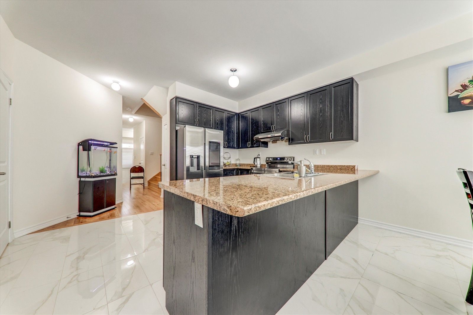 • Modern open-concept design with upgraded kitchen and stainless-steel appliances.