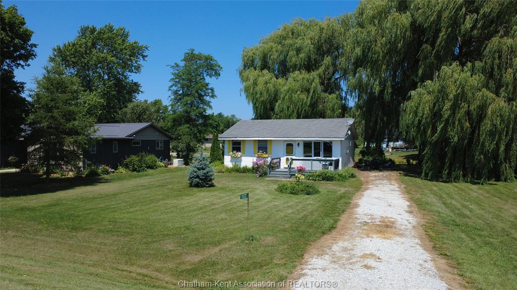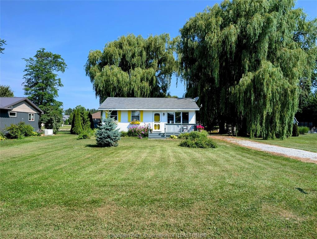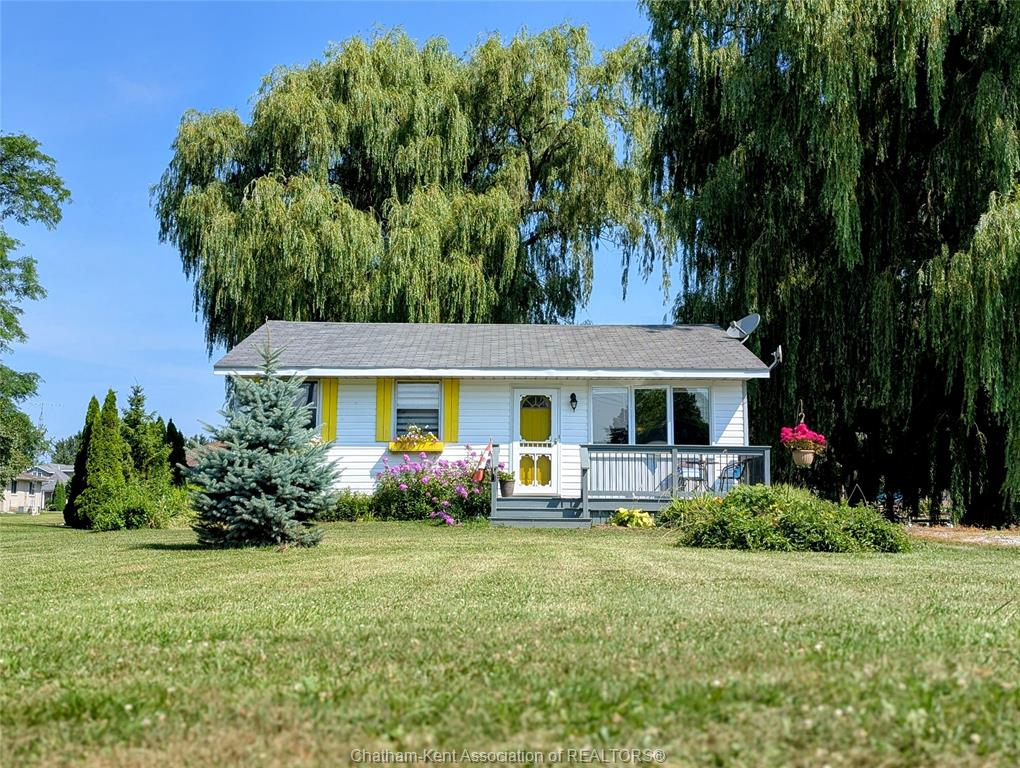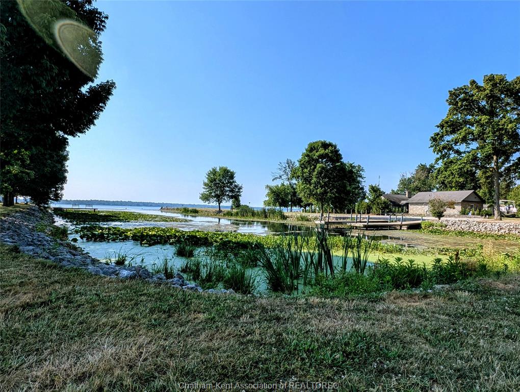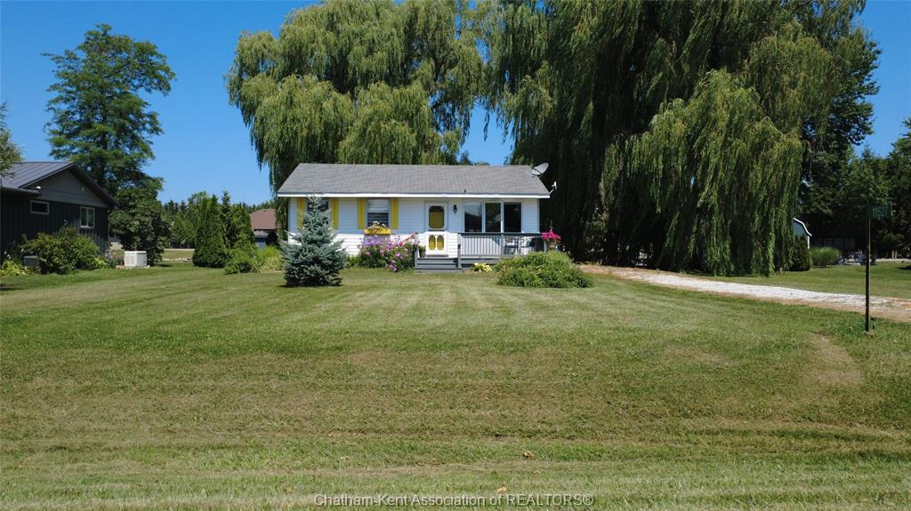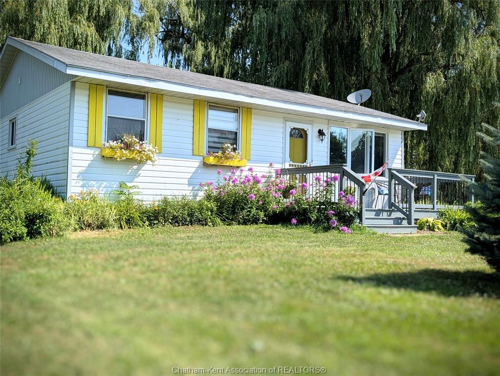 Welcome to this charming waterfront property in the highly sought-after rondeau bay estates—a serene retreat offering privacy, comfort, and direct canal access to stunning rondeau bay and beyond. This 3-bedroom, 1-bathroom home is perfectly suited for year-round living or a seasonal escape, surrounded by nature on a peaceful, tree-lined 100'x150' lot - conveniently located minutes from blenheim and ridgetown. The interior features a cozy open-concept design, highlighted by a gas fireplace that adds warmth and character anchoring the main living area. The kitchen and dining spaces flow seamlessly for easy entertaining, while a spacious 3-season sunroom provides the perfect place to relax and enjoy the changing views throughout spring, summer, and fall. Primary bedroom has access through patio doors to the deck with views of the canal and backyard. Updates to the home include newer windows, dog inground fence system and a modern updated bathroom. Step outside to your private backyard oasis, where majestic willows offer shade and privacy, and a tranquil pond enhances the natural beauty of the setting. Whether enjoying quiet mornings with coffee or evenings by the firepit roasting s’mores, this outdoor space is ideal for peaceful living and making memories. A private dock offers direct access to the canal—perfect for boating, fishing, or exploring rondeau bay by kayak. Just a quick 10-minute boat ride takes you to the open waters of lake erie, home to some of the region’s best walleye fishing—or seagull island home to a secluded beach. This unique property offers a rare opportunity to live surrounded by nature, with easy access to water adventures and community amenities. Whether you're seeking a lifestyle of leisure, recreation, or relaxation, this property offers it all in one of the region’s most desirable waterfront communities. Annual association fee of $400, which covers canal dredging and maintenance of the private community marina, park and golf course.