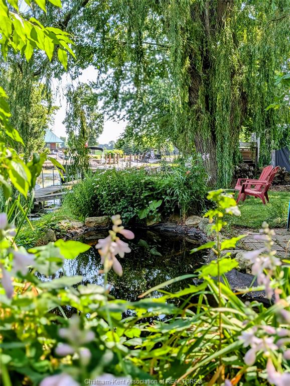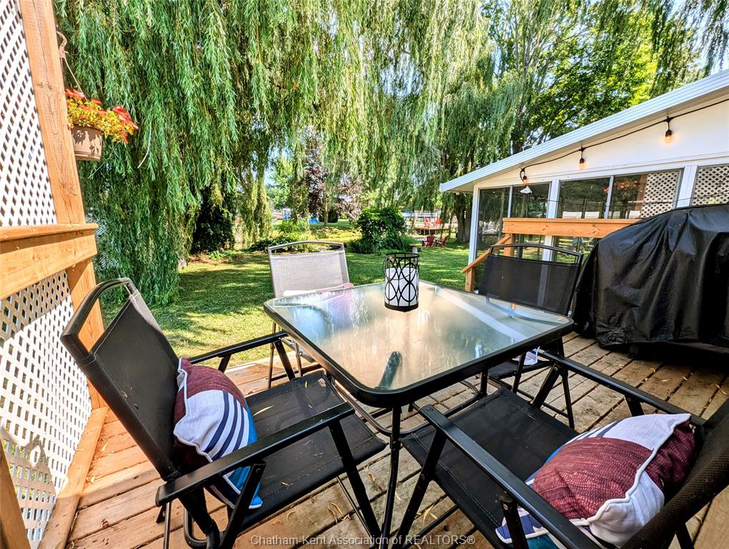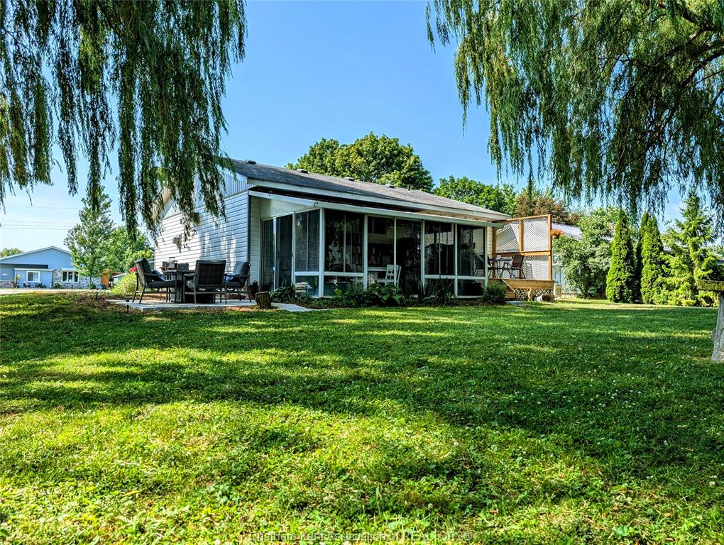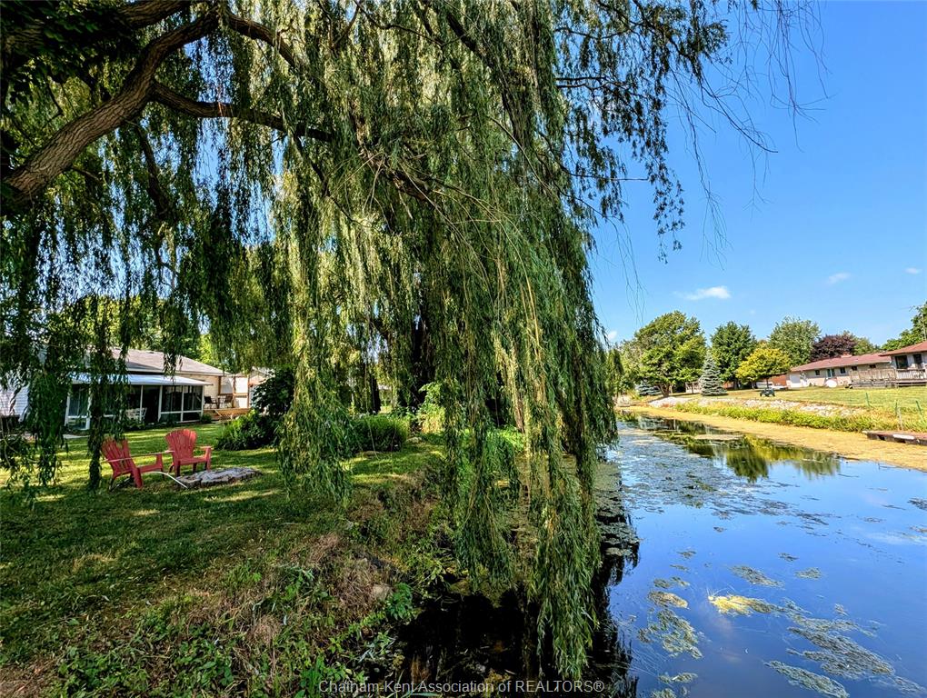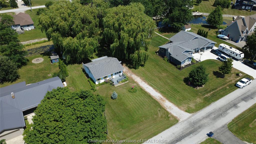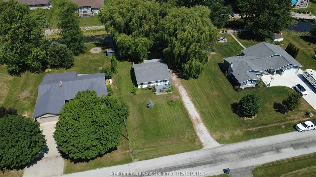 Welcome to this charming waterfront property in the highly sought-after rondeau bay estates—a serene retreat offering privacy, comfort, and direct canal access to stunning rondeau bay and beyond. This 3-bedroom, 1-bathroom home is perfectly suited for year-round living or a seasonal escape, surrounded by nature on a peaceful, tree-lined 100'x150' lot - conveniently located minutes from blenheim and ridgetown. The interior features a cozy open-concept design, highlighted by a gas fireplace that adds warmth and character anchoring the main living area. The kitchen and dining spaces flow seamlessly for easy entertaining, while a spacious 3-season sunroom provides the perfect place to relax and enjoy the changing views throughout spring, summer, and fall. Primary bedroom has access through patio doors to the deck with views of the canal and backyard. Updates to the home include newer windows, dog inground fence system and a modern updated bathroom. Step outside to your private backyard oasis, where majestic willows offer shade and privacy, and a tranquil pond enhances the natural beauty of the setting. Whether enjoying quiet mornings with coffee or evenings by the firepit roasting s’mores, this outdoor space is ideal for peaceful living and making memories. A private dock offers direct access to the canal—perfect for boating, fishing, or exploring rondeau bay by kayak. Just a quick 10-minute boat ride takes you to the open waters of lake erie, home to some of the region’s best walleye fishing—or seagull island home to a secluded beach. This unique property offers a rare opportunity to live surrounded by nature, with easy access to water adventures and community amenities. Whether you're seeking a lifestyle of leisure, recreation, or relaxation, this property offers it all in one of the region’s most desirable waterfront communities. Annual association fee of $400, which covers canal dredging and maintenance of the private community marina, park and golf course.