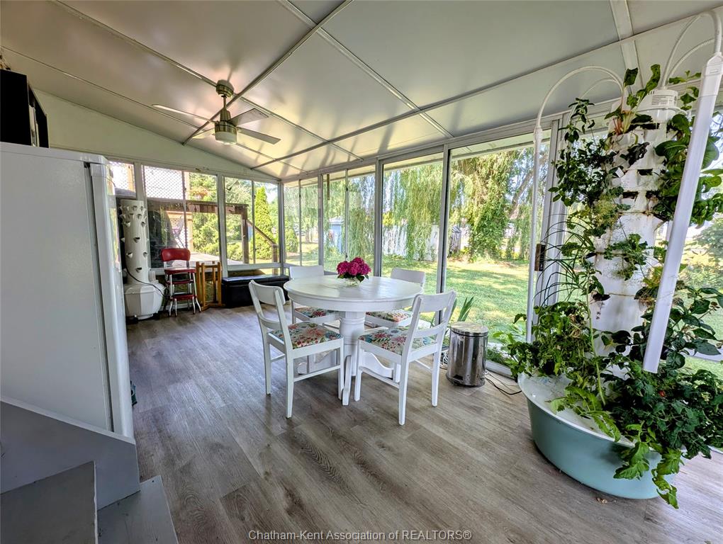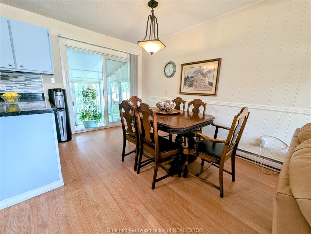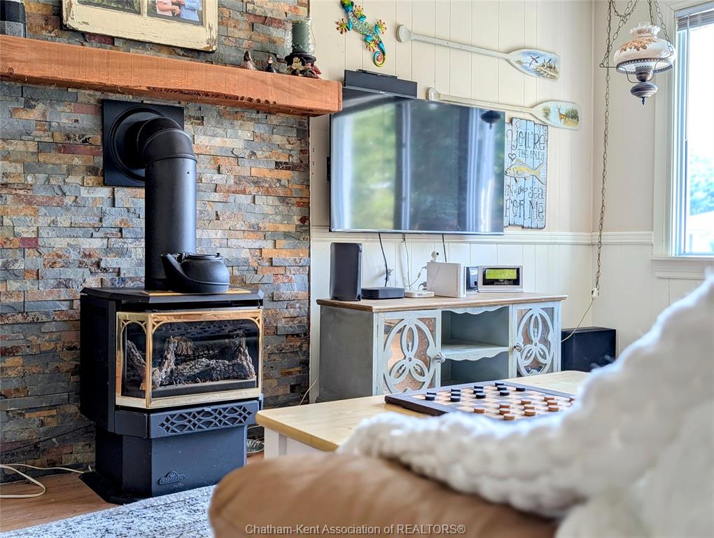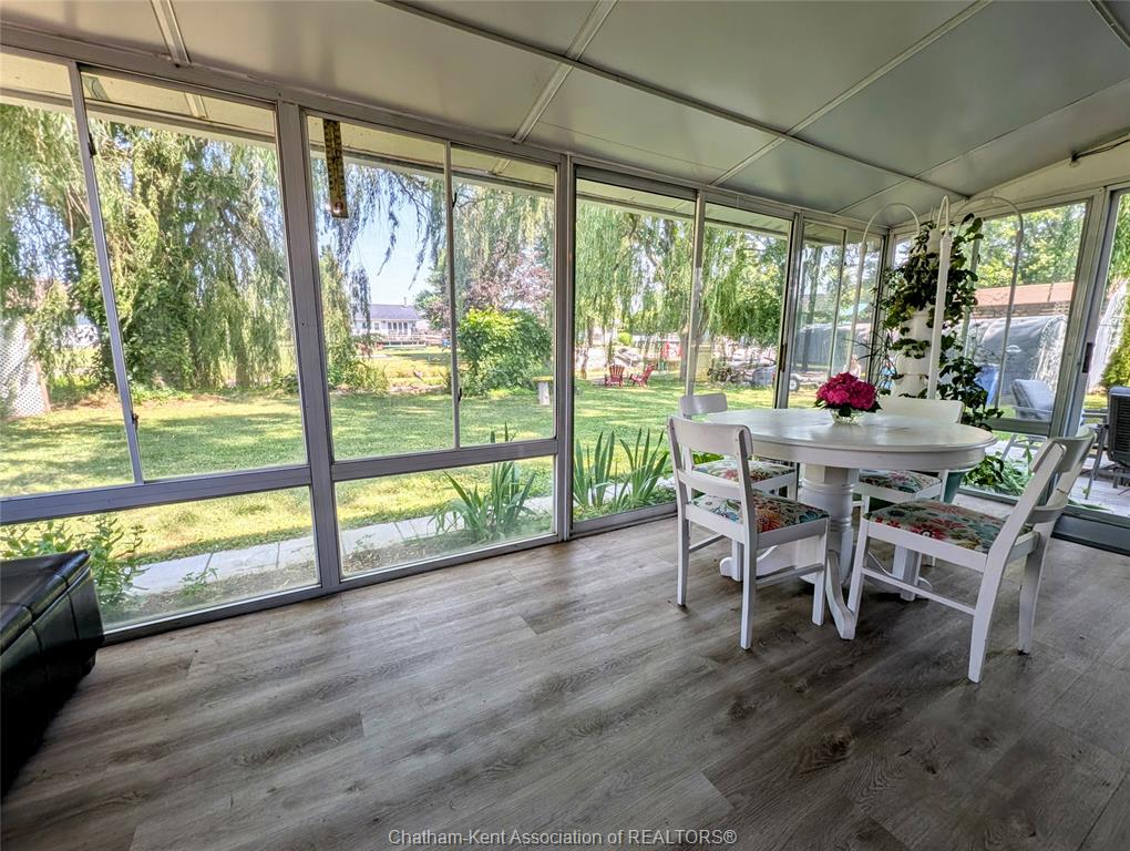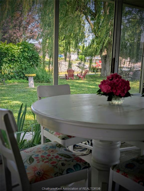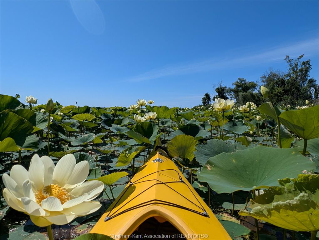 Welcome to this charming waterfront property in the highly sought-after rondeau bay estates—a serene retreat offering privacy, comfort, and direct canal access to stunning rondeau bay and beyond. This 3-bedroom, 1-bathroom home is perfectly suited for year-round living or a seasonal escape, surrounded by nature on a peaceful, tree-lined 100'x150' lot - conveniently located minutes from blenheim and ridgetown. The interior features a cozy open-concept design, highlighted by a gas fireplace that adds warmth and character anchoring the main living area. The kitchen and dining spaces flow seamlessly for easy entertaining, while a spacious 3-season sunroom provides the perfect place to relax and enjoy the changing views throughout spring, summer, and fall. Primary bedroom has access through patio doors to the deck with views of the canal and backyard. Updates to the home include newer windows, dog inground fence system and a modern updated bathroom. Step outside to your private backyard oasis, where majestic willows offer shade and privacy, and a tranquil pond enhances the natural beauty of the setting. Whether enjoying quiet mornings with coffee or evenings by the firepit roasting s’mores, this outdoor space is ideal for peaceful living and making memories. A private dock offers direct access to the canal—perfect for boating, fishing, or exploring rondeau bay by kayak. Just a quick 10-minute boat ride takes you to the open waters of lake erie, home to some of the region’s best walleye fishing—or seagull island home to a secluded beach. This unique property offers a rare opportunity to live surrounded by nature, with easy access to water adventures and community amenities. Whether you're seeking a lifestyle of leisure, recreation, or relaxation, this property offers it all in one of the region’s most desirable waterfront communities. Annual association fee of $400, which covers canal dredging and maintenance of the private community marina, park and golf course.