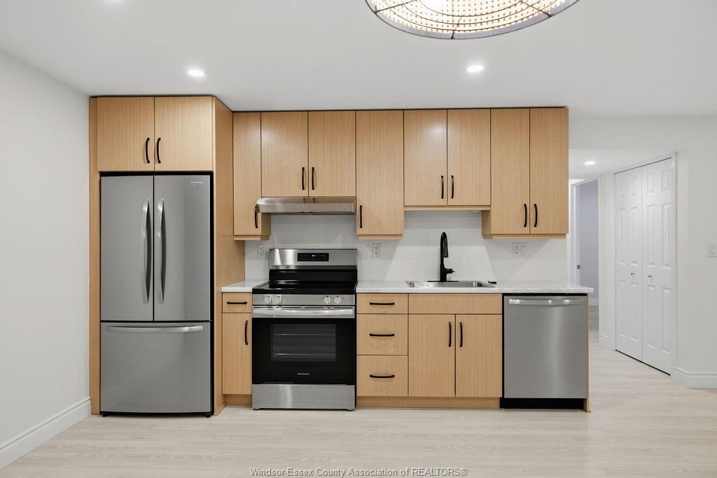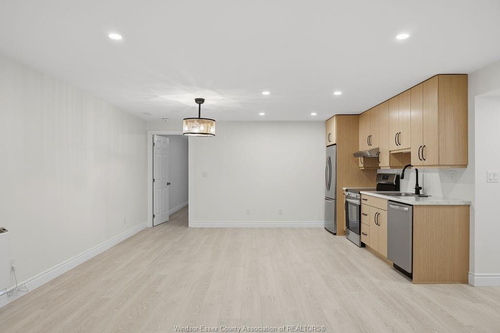 • Fully finished basement with two bedrooms, kitchen, and bathroom.