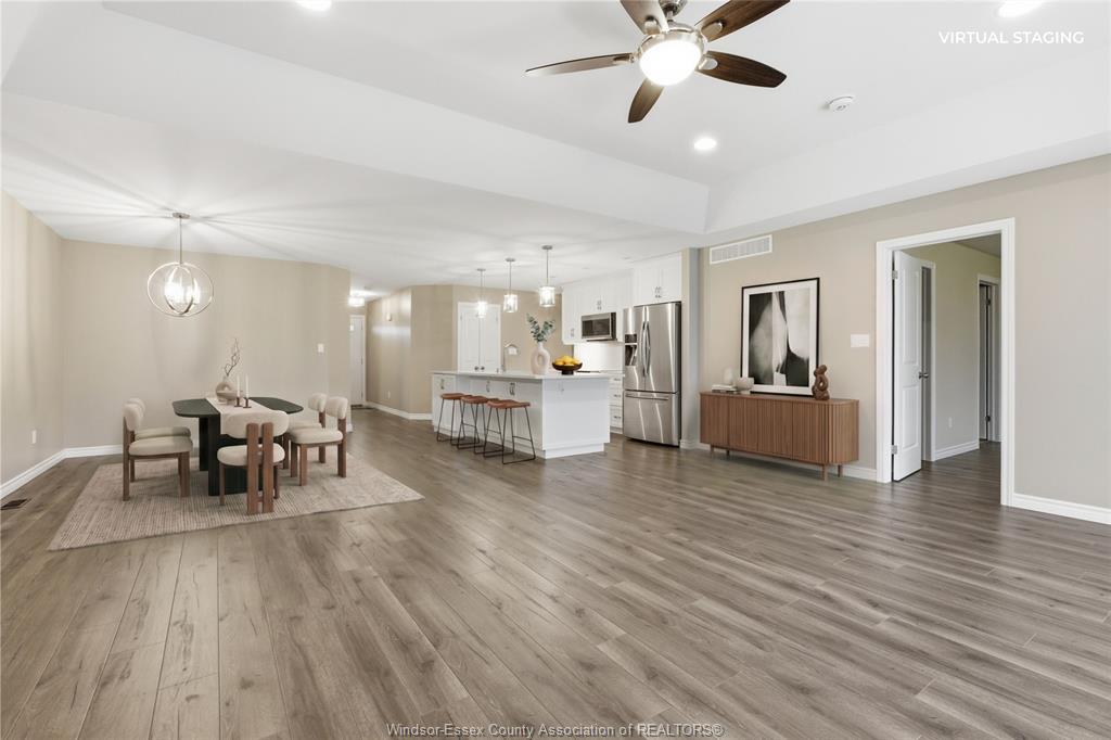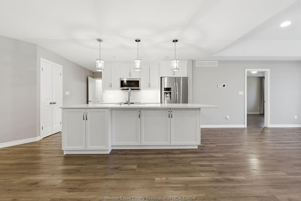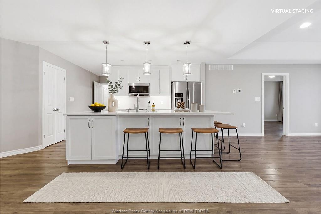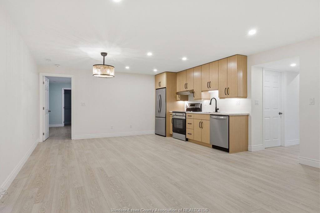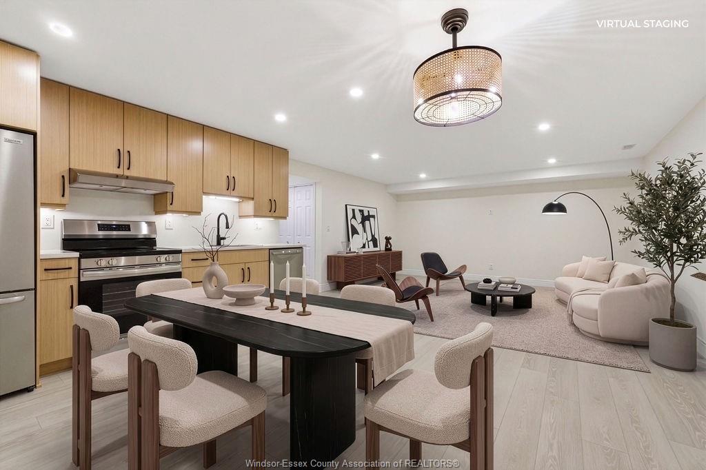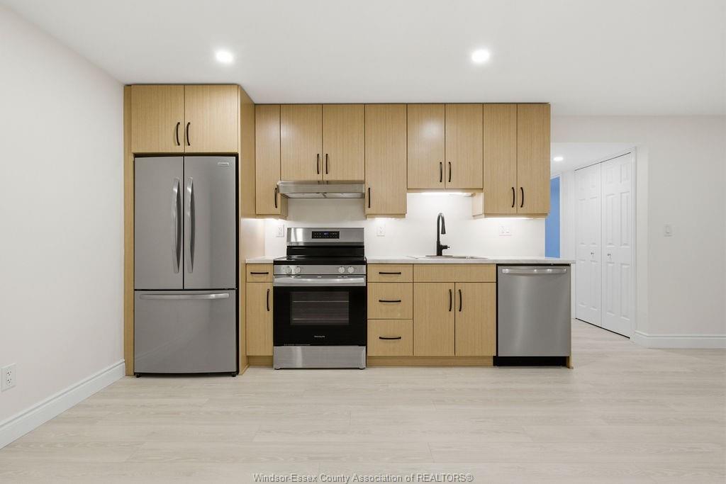 Move-in ready townhome with fully finished basement in east riverside, windsor, ontario. Turnkey townhome near little river corridor with 2nd kitchen, ev charging, bbq gas line and a condo-style maintenance included. This fully upgraded townhouse features, a modern kitchen with extended quartz island, stainless steel appliances, main floor laundry, and enhanced lighting. The 240v outlet in the garage is ready for electric vehicle charging. A natural gas hookup on the patio is installed for outdoor bbq cooking. The professionally finished basement, completed in 2024, includes two bedrooms, a full bathroom, and a second full kitchen with fridge, stove, and dishwasher. Ideal as a mortgage helper suite, rental income property, or multi-generational living space for extended family. Located steps from the little river corridor trail system with easy access to restaurants, shopping, parks, and walking paths. Monthly fee of $135 covers lawn care, snow removal, and roof maintenance for true low-maintenance homeownership.