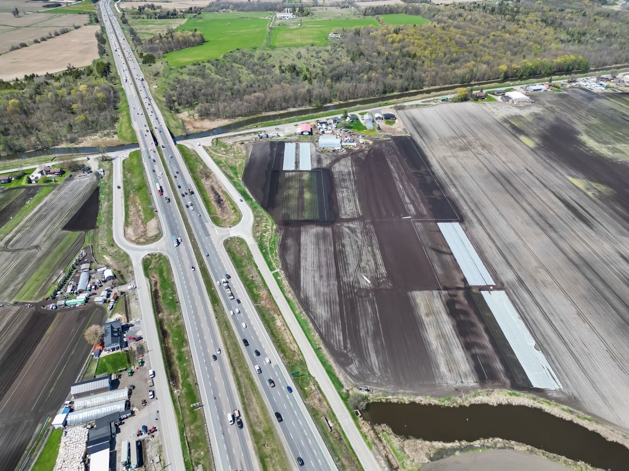 Rare opportunity to purchase approximately 4,500 sq ft of versatile barn space situated on 8. 44 acres withprime exposure at the intersection of highway 400 and canal road. This high-traffic location is just a shortdrive from both toronto and barrie, offering exceptional accessibility and visibility. The barn features highceilings, electricity, water, two furnaces, a wood stove, and a washroom, ideal for a wide range of usesincluding a market, showroom, or storage facility. A covered porch wraps around the building, addingcharm and functionality. The fertile land has supported a variety of crops, including lettuce, beets, carrots,and onions, making it well-suited for continued agricultural use. The property is also zoned for a single-family residential home, offering the potential to build or sever and build, presenting an excellentopportunity for both commercial and residential development.