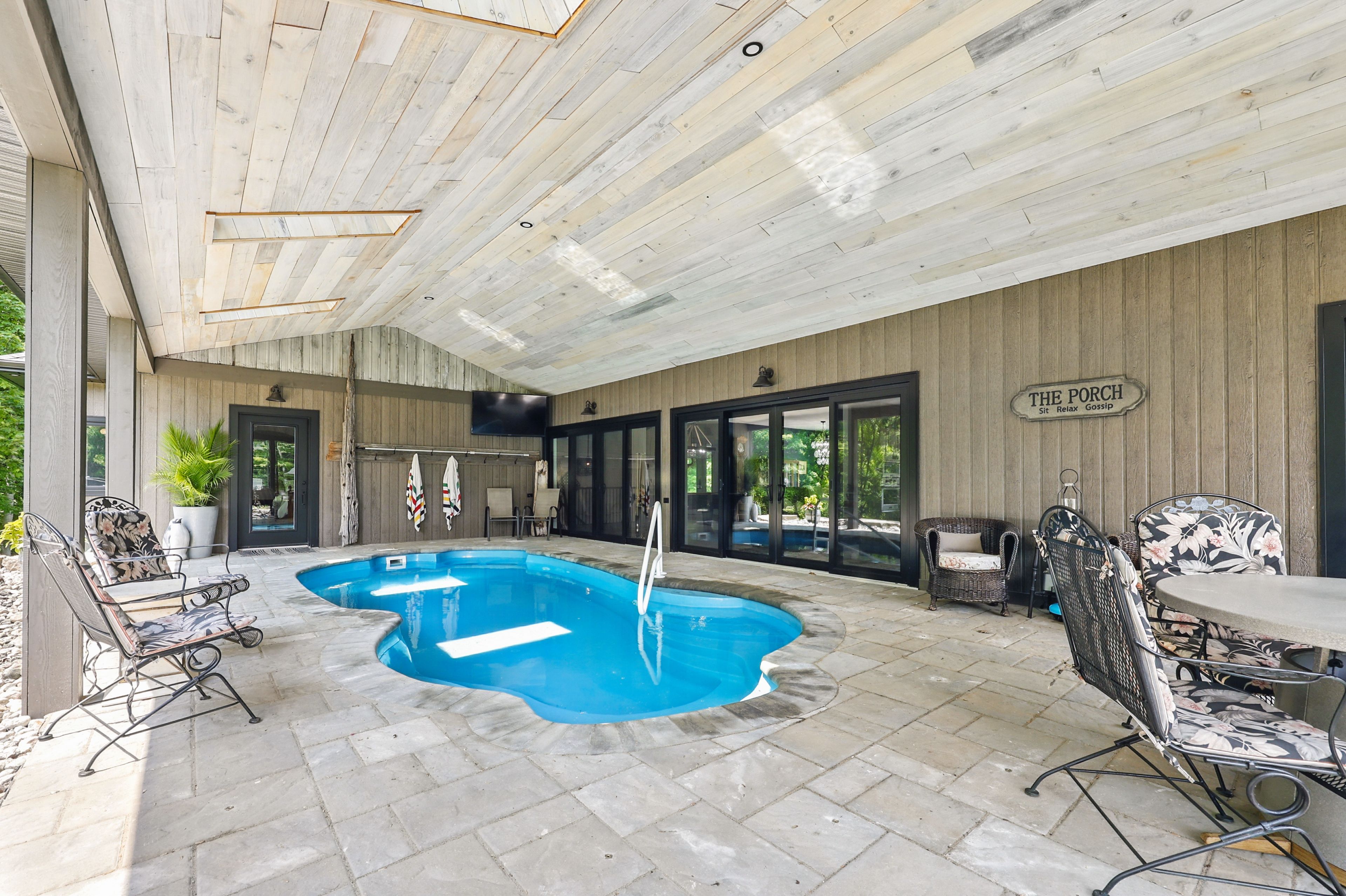 Experience your own oasis on over 40 acres of land. Welcome to this fully custom-built estate home, an extraordinary retreat designed to impress at every turn. As you approach via the private laneway, your greeted by striking armor stone landscaping and a beautifully designed interlock entrance, setting the tone for the elegance and charm that awaits. The exterior offers everything you need for work, play, and leisure. A heated 5-car garage with drive-through access, warm/cold water supply, ev charging and direct entry to both the home and basement makes everyday living incredibly functional. A separate 2400sq/ft fully heated detached shop equipped with 200 amp service , water, bathroom, kitchen and a hoist is perfect for all your toys, tools, and ambitious projects. Enjoy a covered, vaulted outdoor dining/lounging area overlooking a saltwater pool accessible from every room in the home creating seamless indoor-outdoor living. Inside, the home exudes sophistication and craftsmanship. Expansive living spaces offer stunning views of the backyard and pool. The custom kitchen is a true showpiece, featuring high-end millwork, indoor bbq, 2 induction stoves, a large walk-in pantry with a built-in bar and second fridge, full door fridge and freeze- a true master piece. With 4 bedrooms and beautifully appointed custom bathrooms, every inch of this home has been thoughtfully designed for comfort and style. This is not just a home its a lifestyle. Truly custom. Truly unforgettable. See attachments for a full list of features, they will blow your mind.