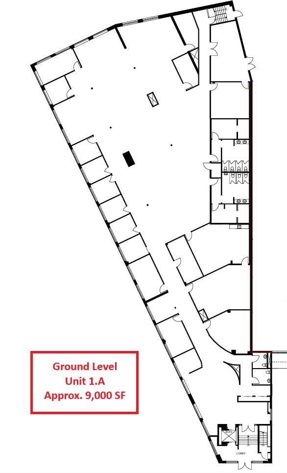 • Ground level unit features ten offices, executive suites, and boardrooms.